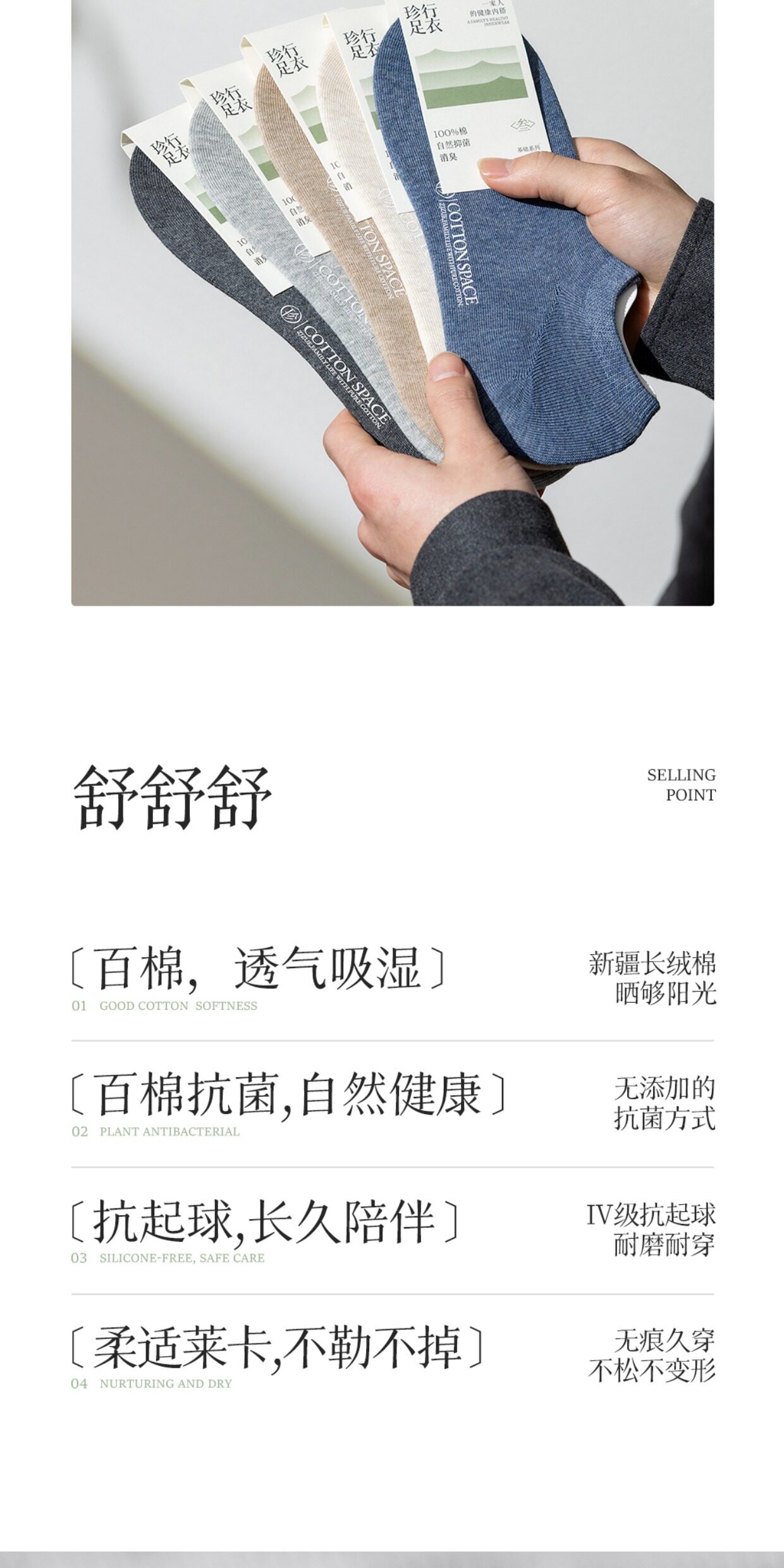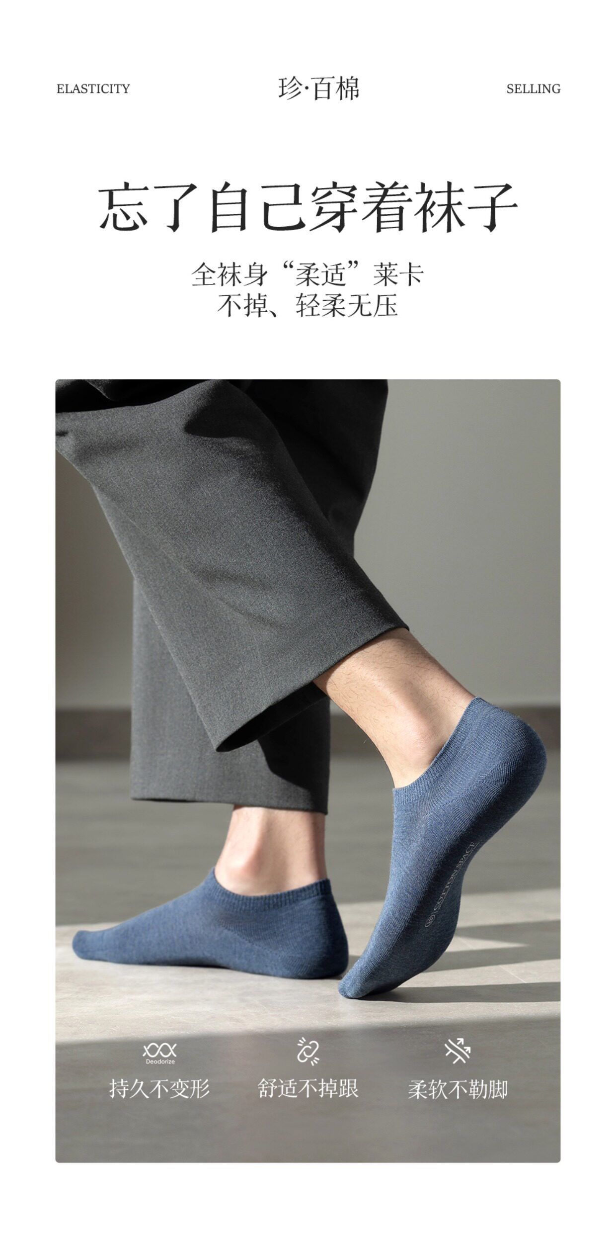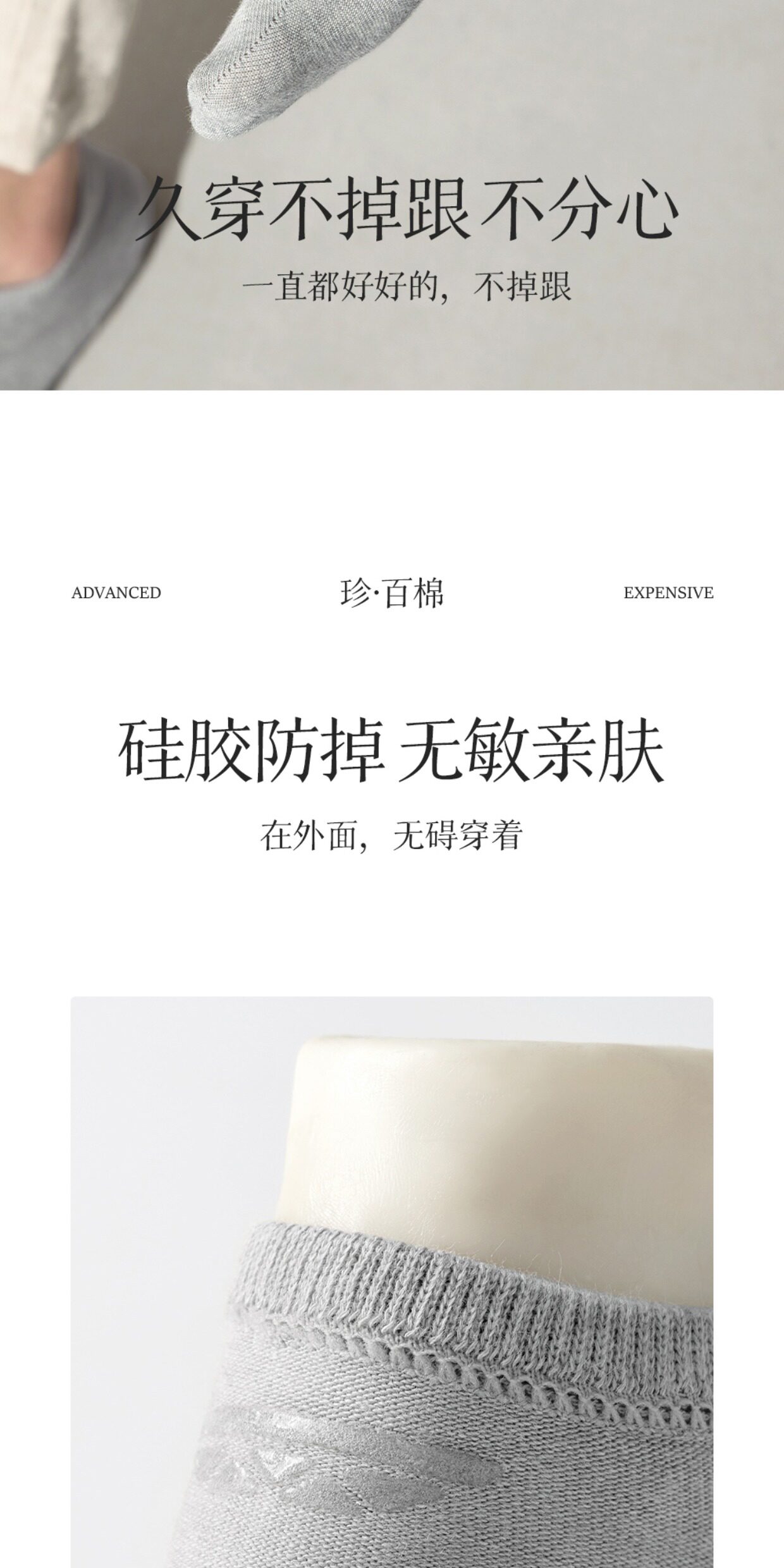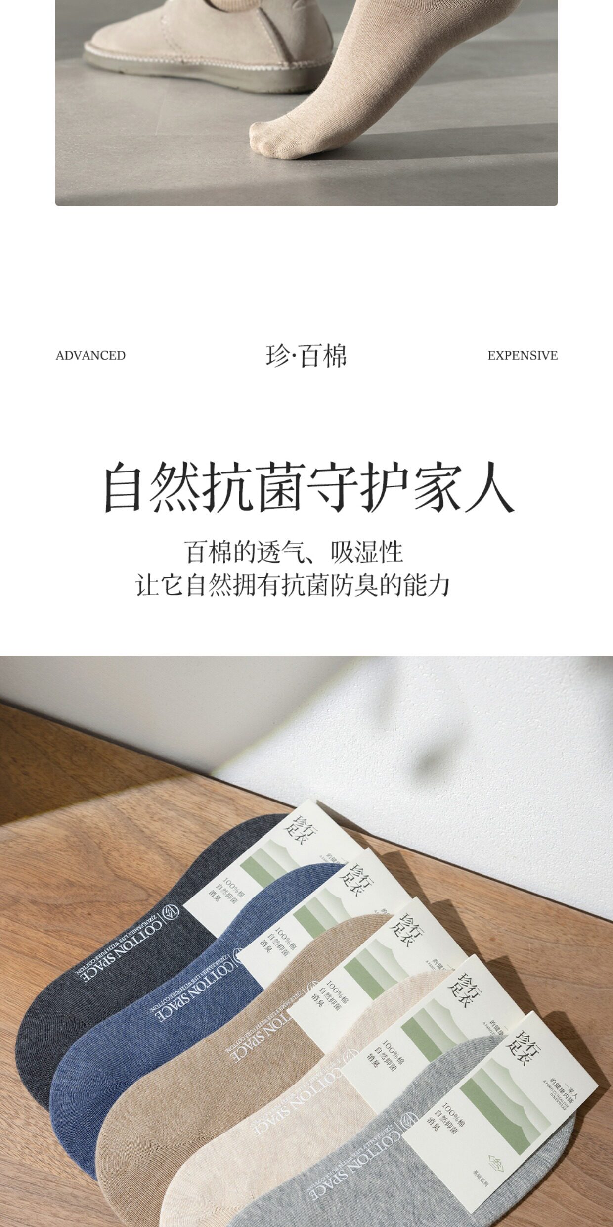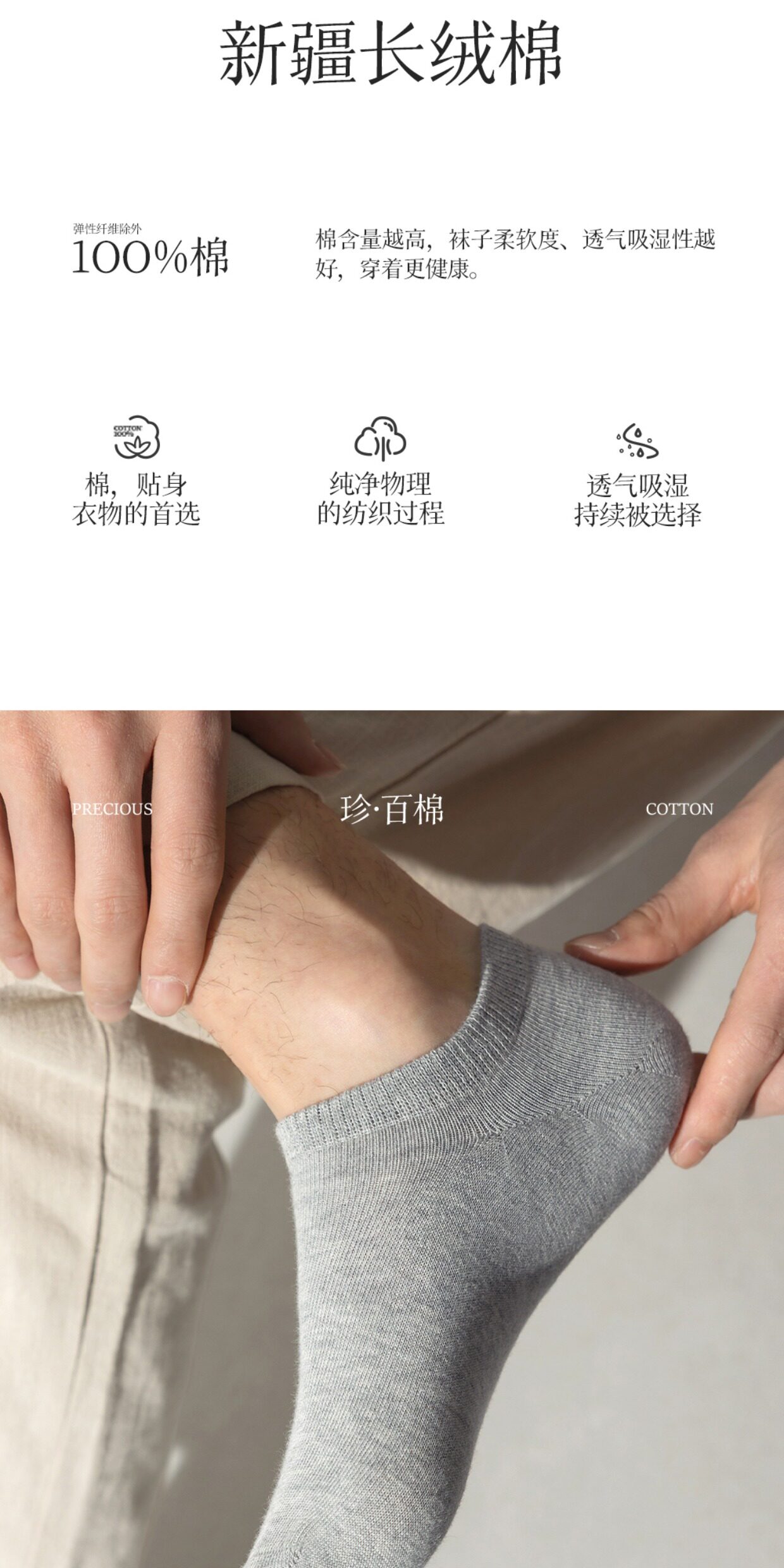 100% Cotton Socks for Men, Invisible Boat Socks, Spring and Summer, Deodorant, Pure Cotton, Non-Slip, No Heel Drop, All-Cotton, Thin Mesh Short Socks