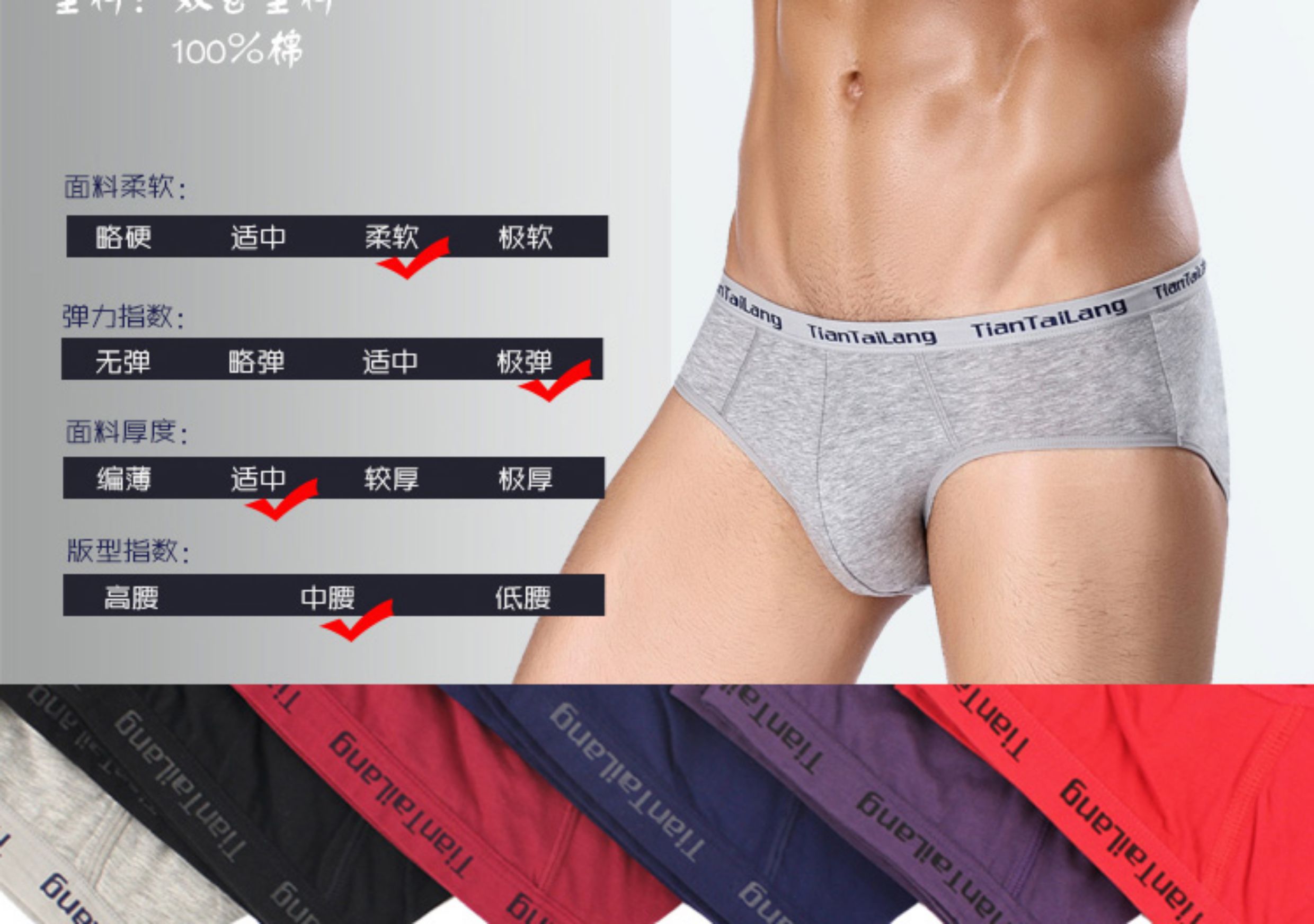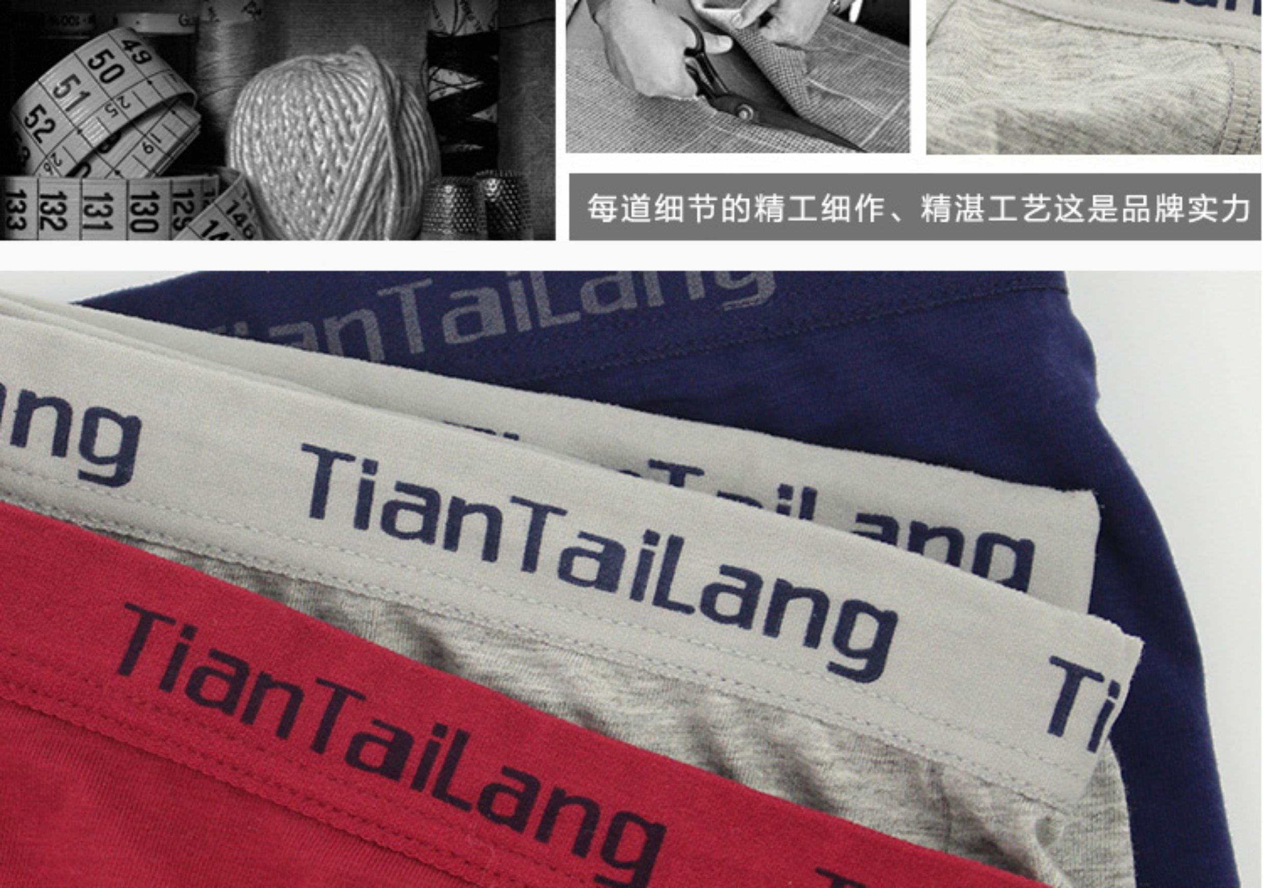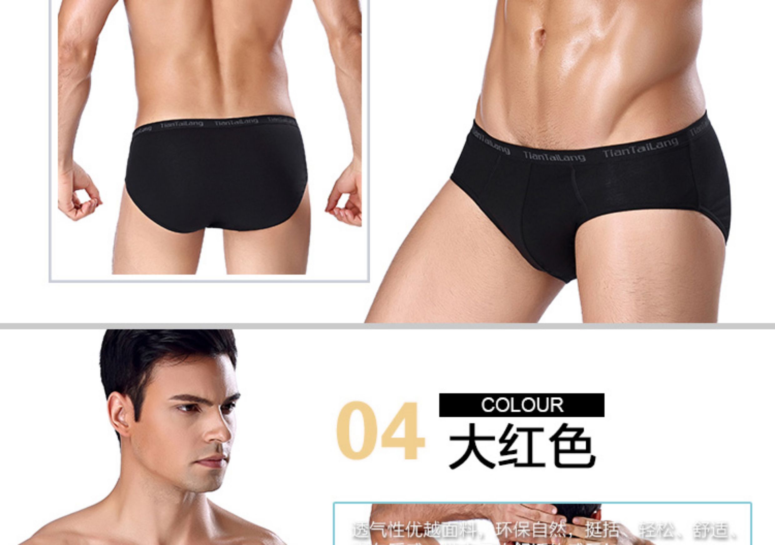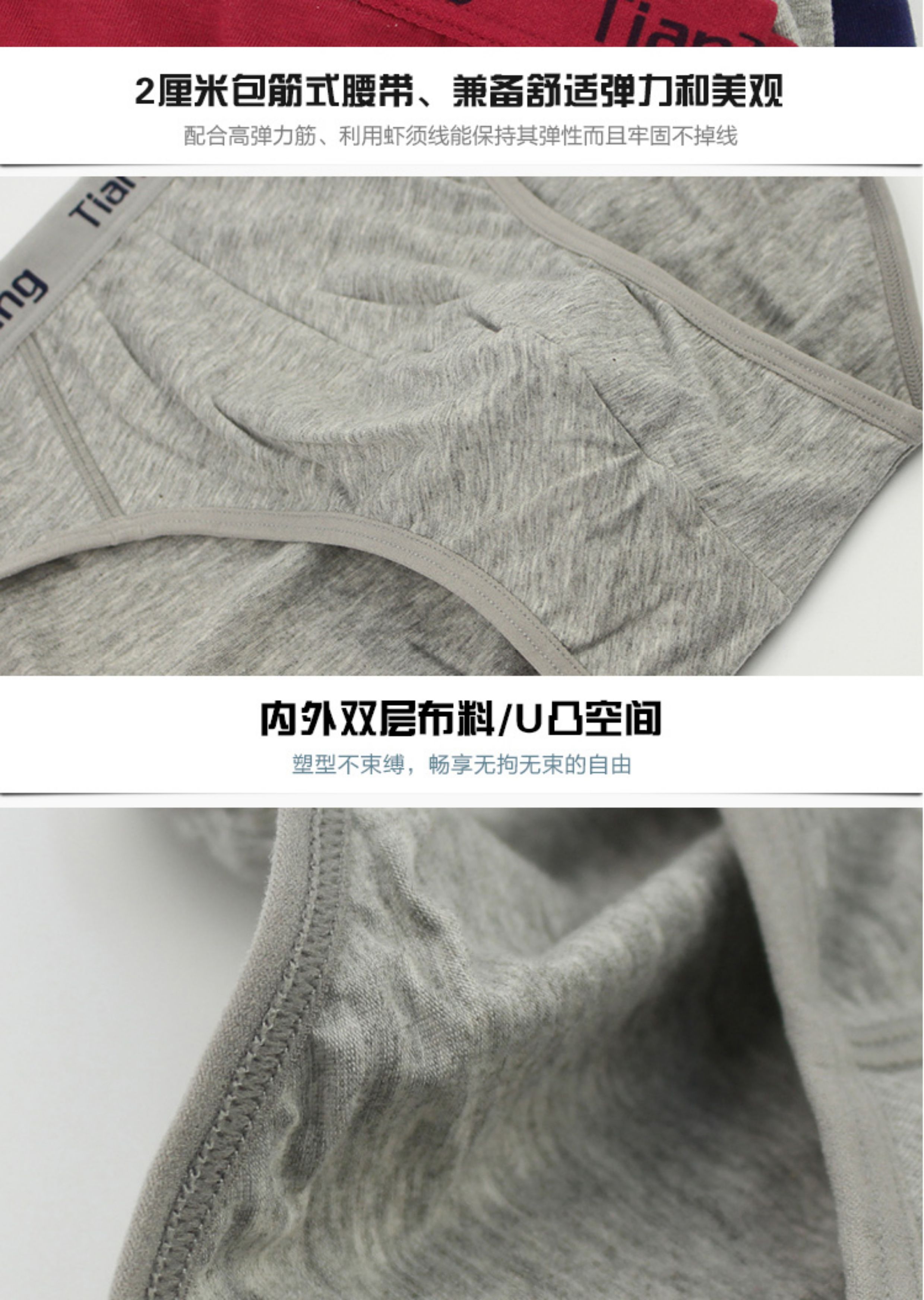 Tian Taitaro Men's Underwear, 60-Count High-Thread-Count Pure Soft Cotton, Mid-Waist, Simple Japanese Style, Solid Color, Youth Briefs, Red