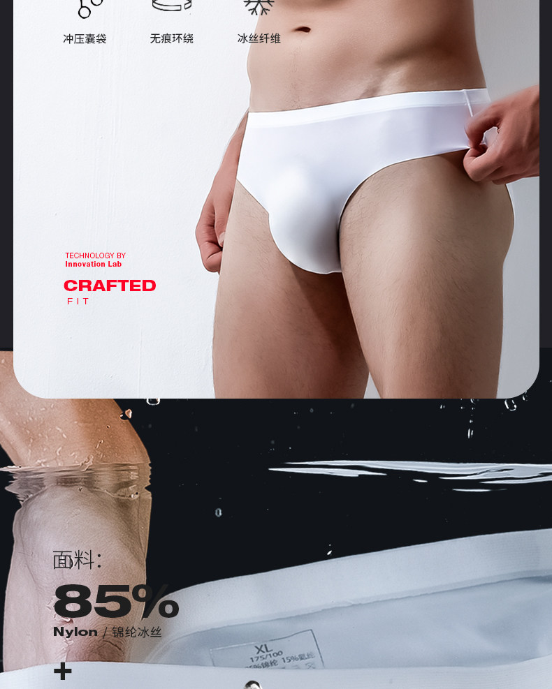 3 Pairs of Men's Ice Silk Transparent Trendy Breathable Sexy Seamless Briefs Summer Thin Style