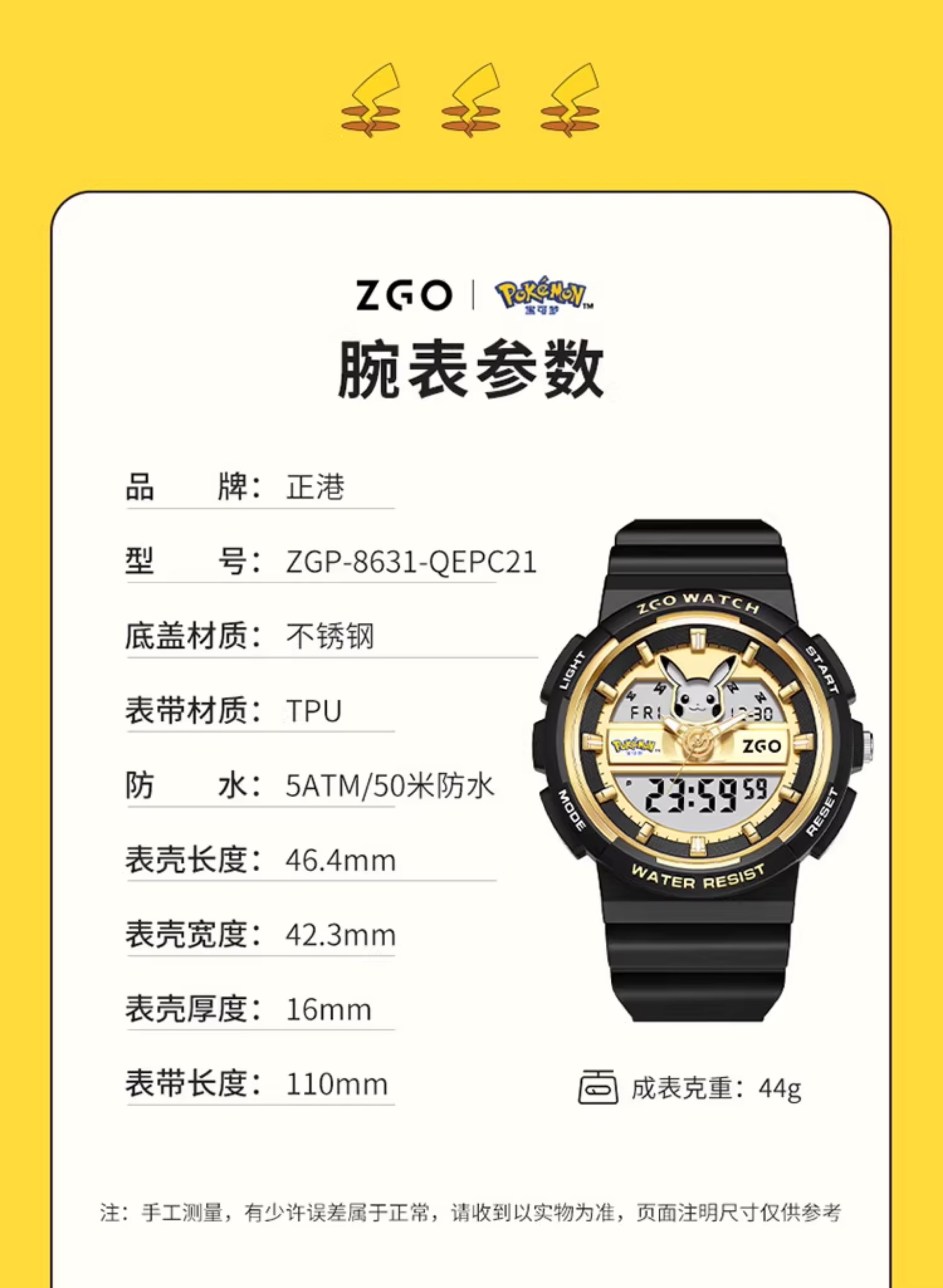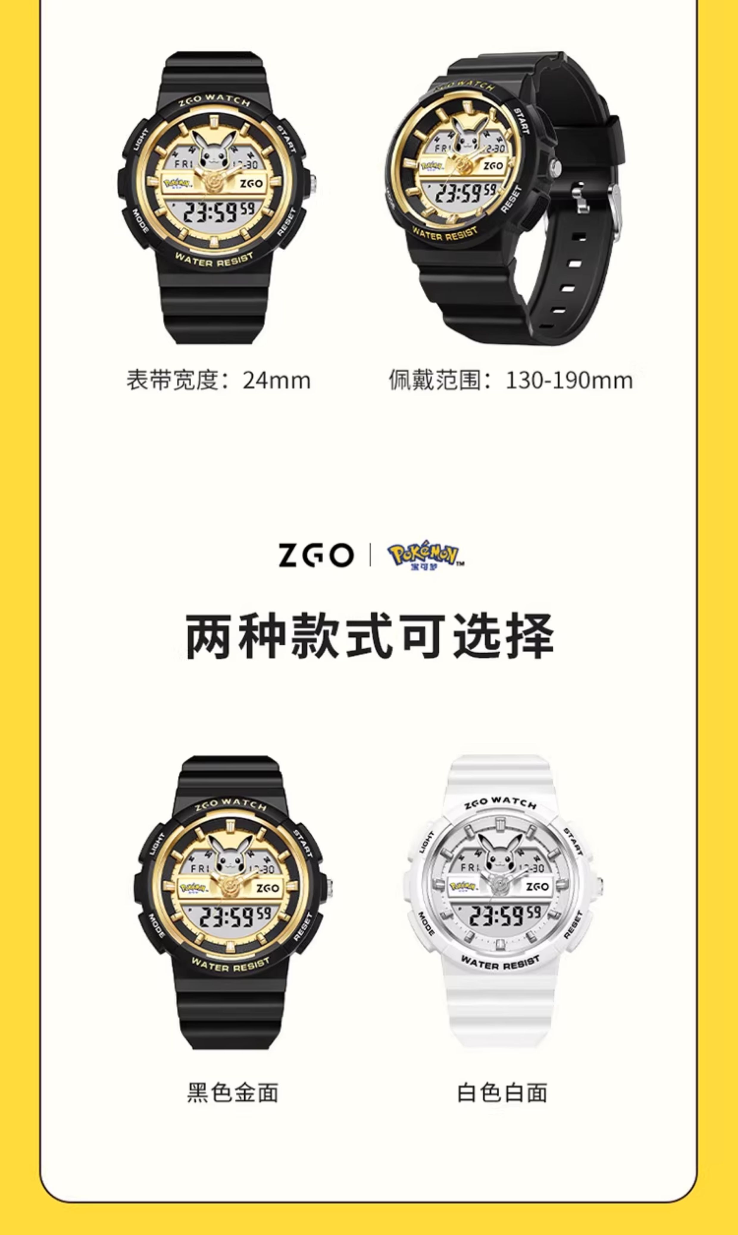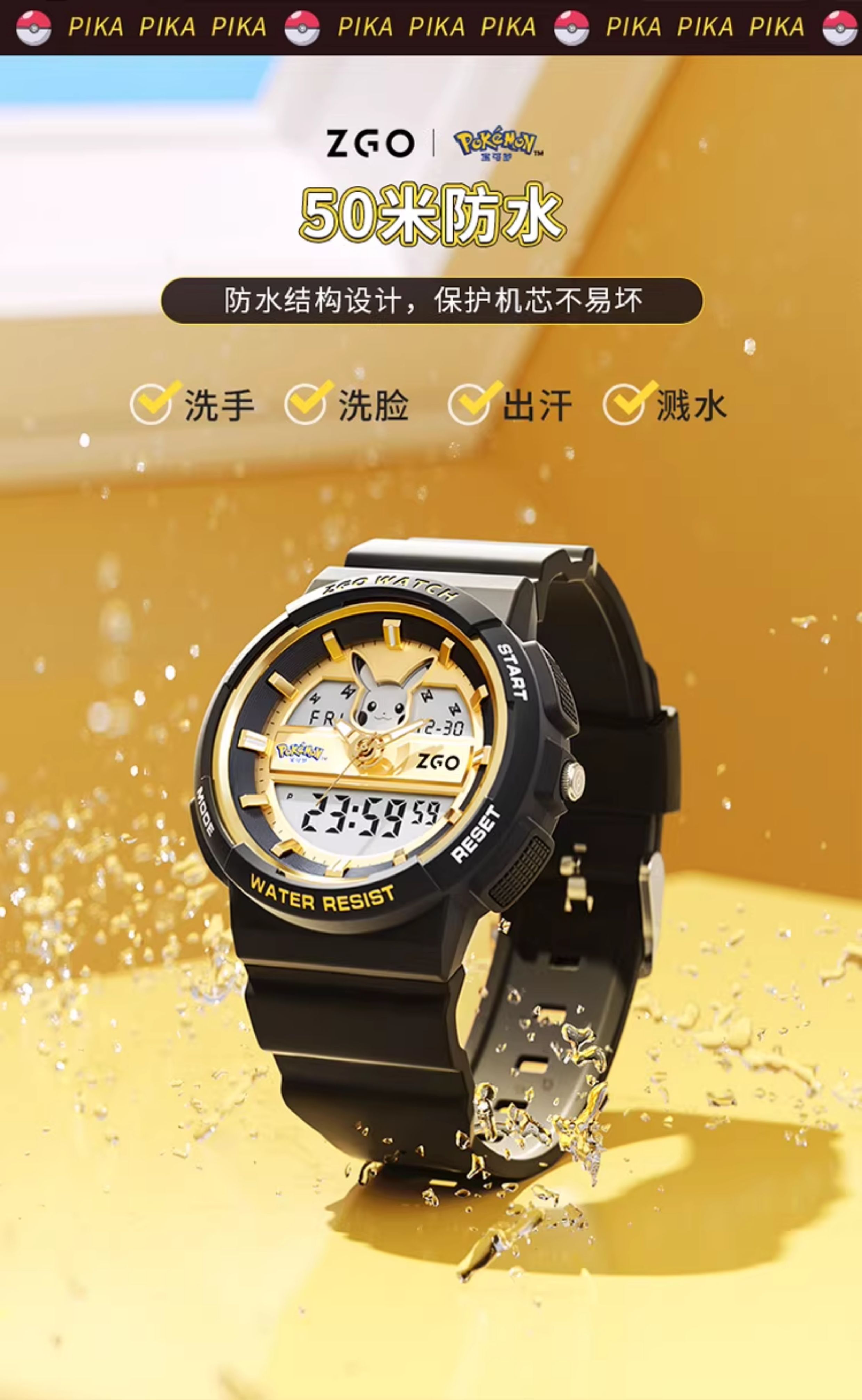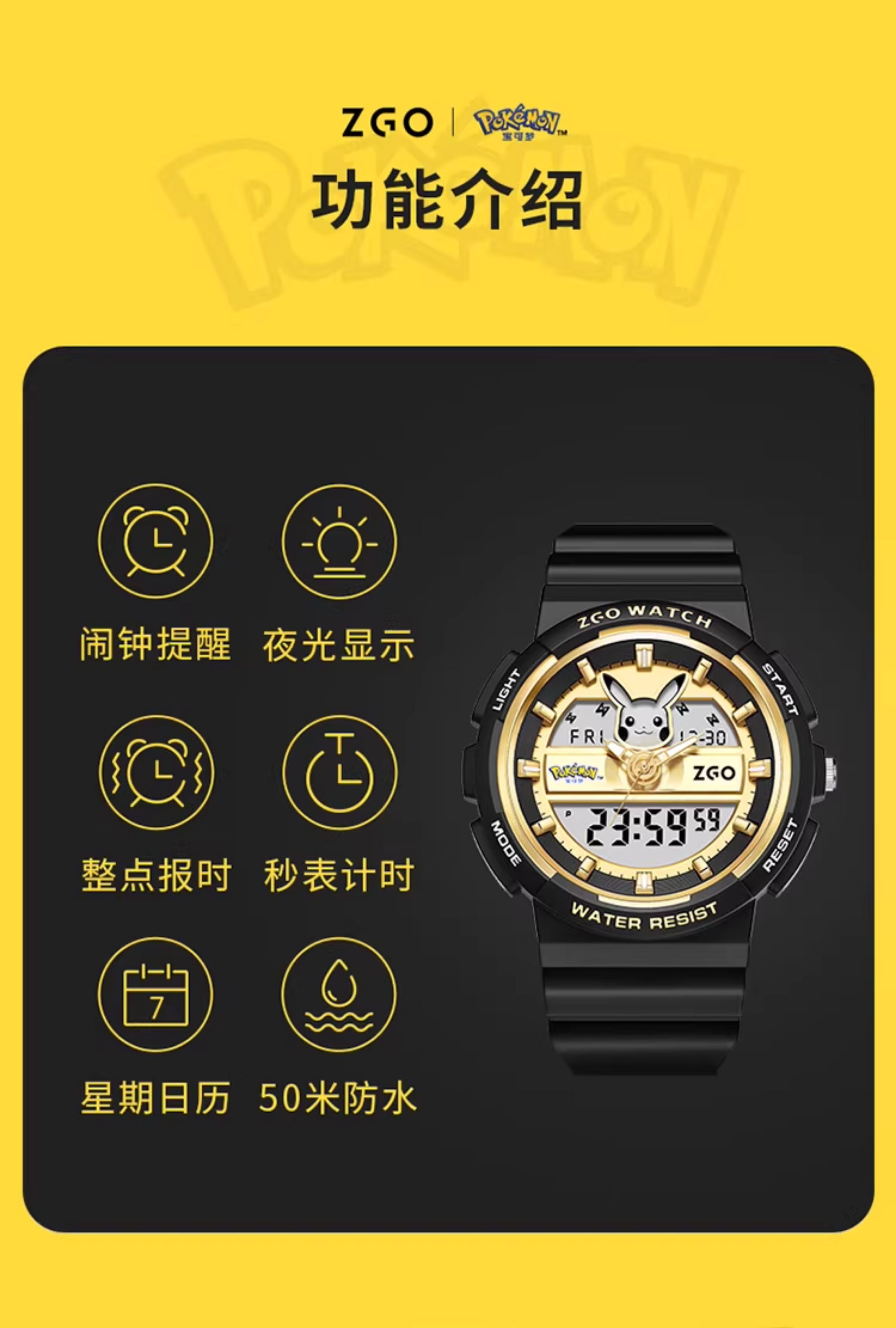 Zhenggang Zgo Pokémon Pikachu Co-Branded Watch for Boys, Elementary School Students, Birthday Gift, Boys' Children's Electronic Watch