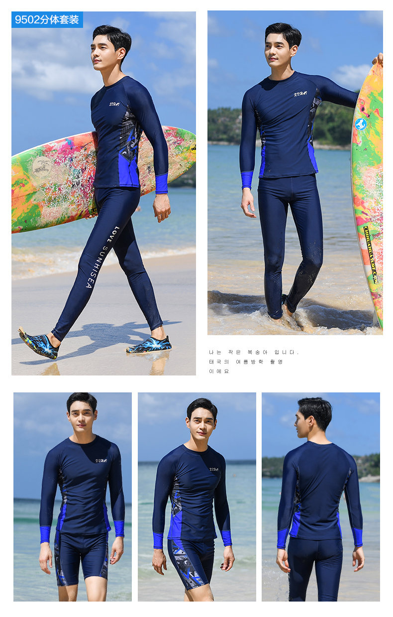 Two-Piece Swimsuit for Teenagers, Short-Sleeved Top, Long-Sleeved Swim Trunks, Sun Protection, Men's Swimsuit Set, Complete Set of Swimming Equipment