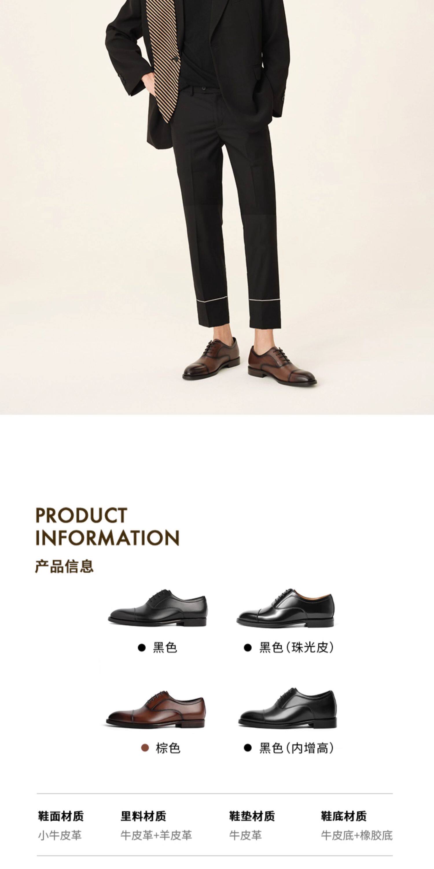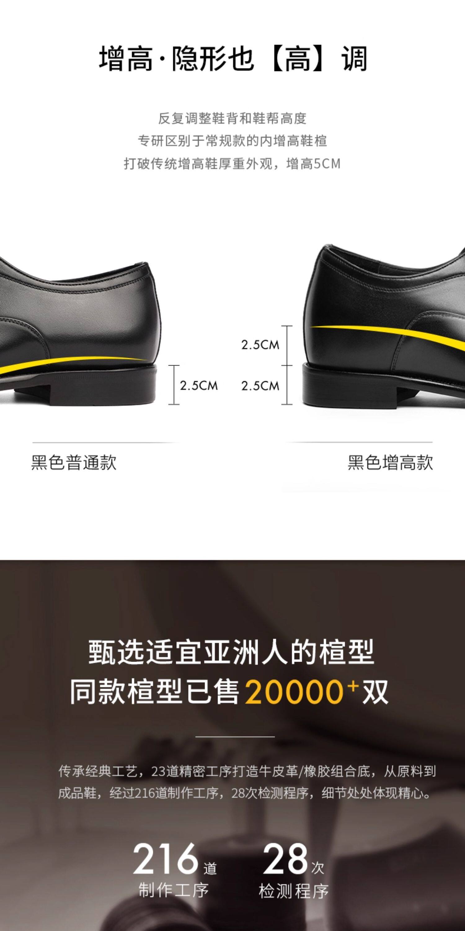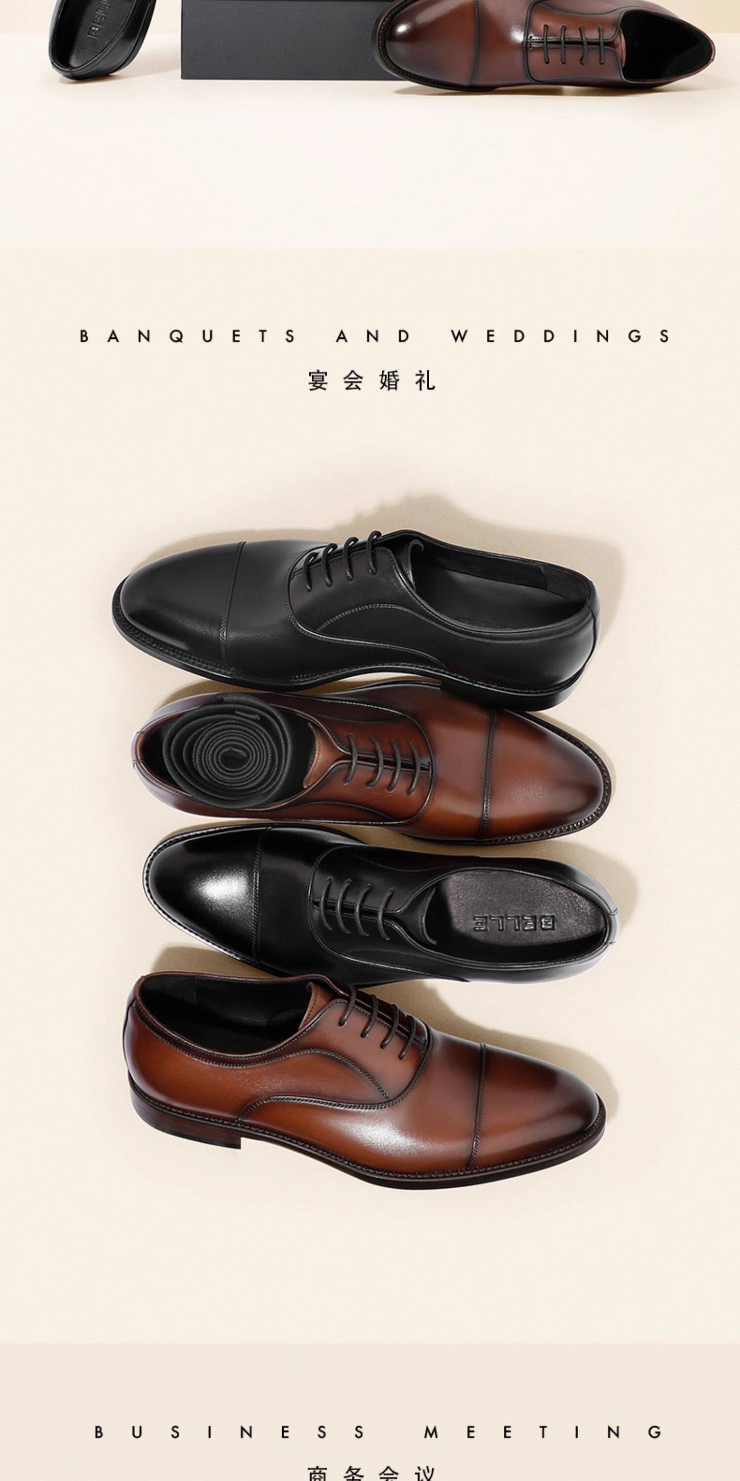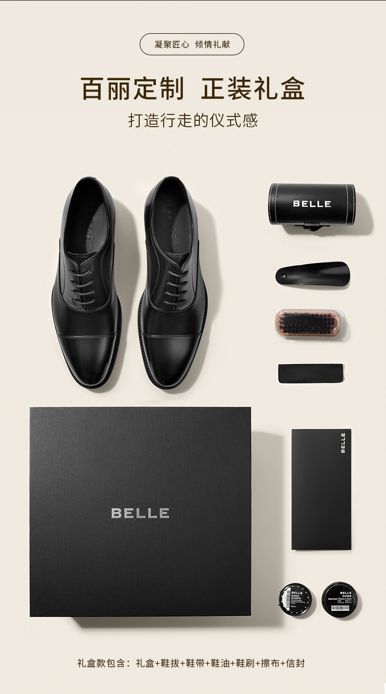 Zhang Linghe's Same Style Belle Men's Shoes Gift Box Set with Hidden Height Increase, Casual Men's Genuine Leather Formal Wedding Shoes 59736cm1