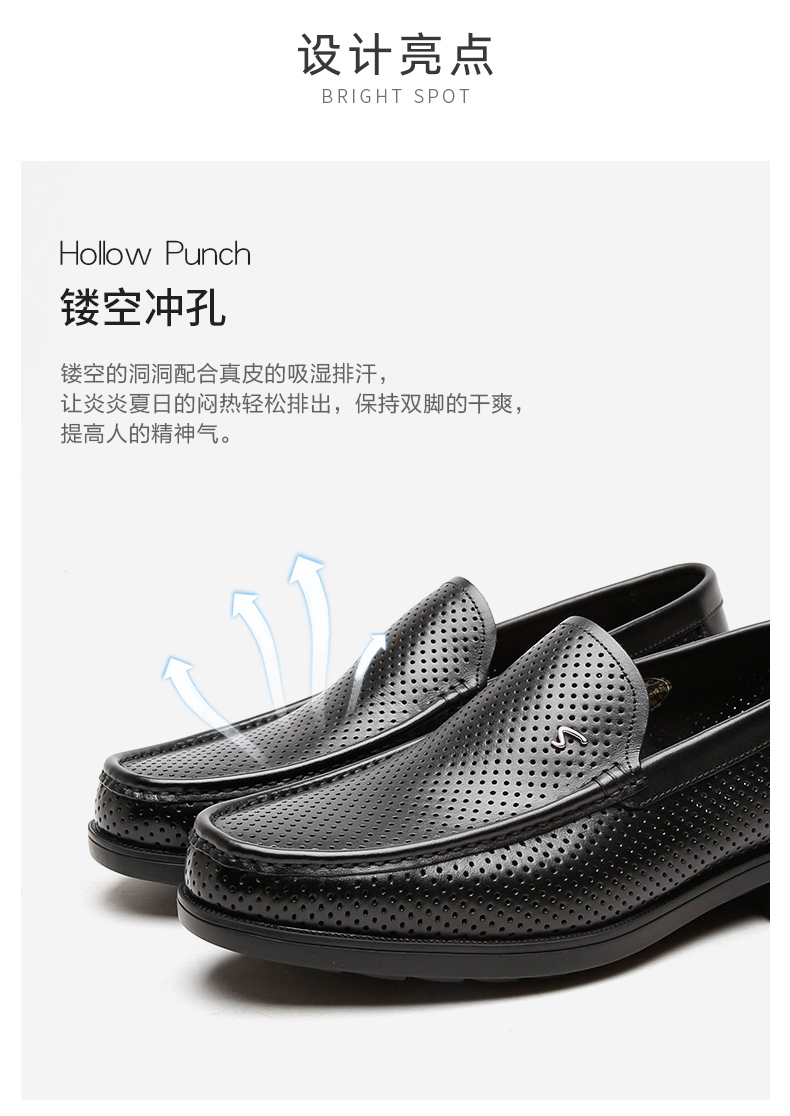 Sachi Men's Shoes, Genuine Summer New Model, Hollow Breathable Perforated Shoes, Genuine Leather Slip-On Formal Leather Shoes 752143078Z