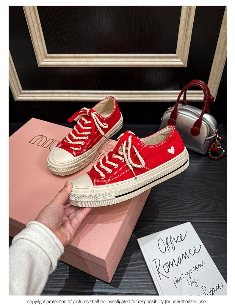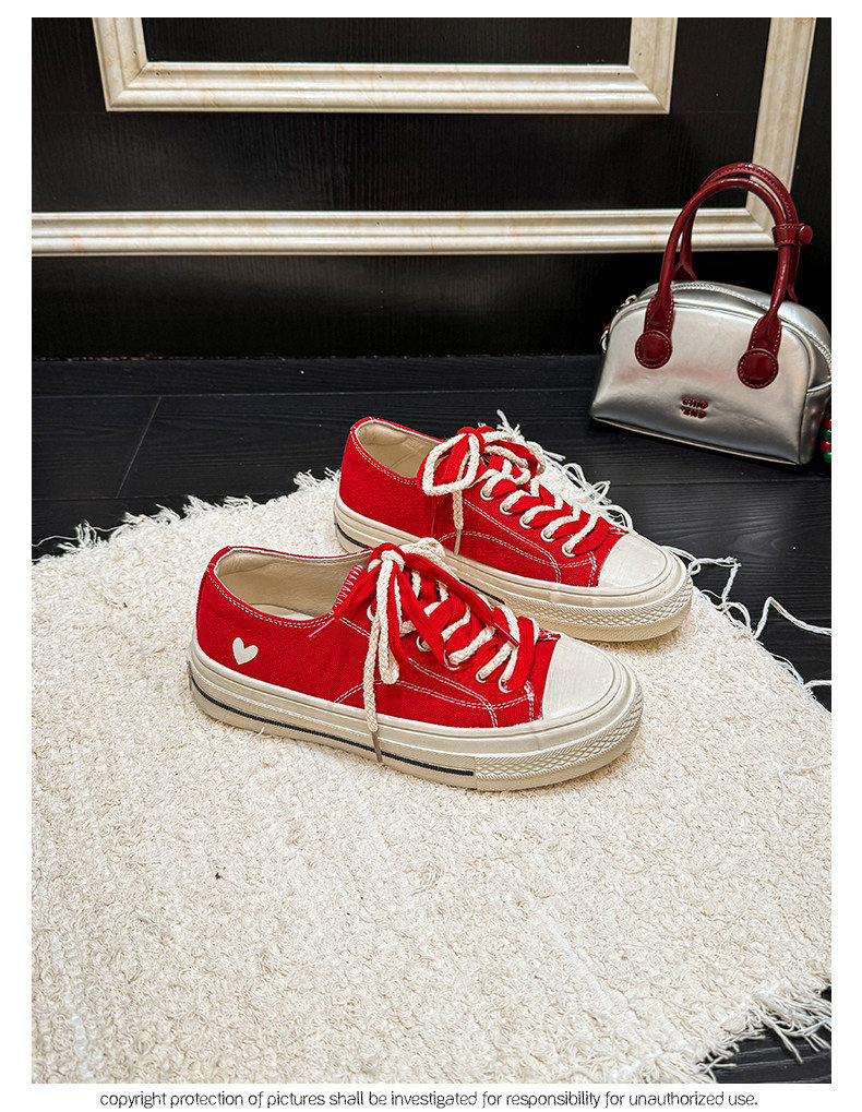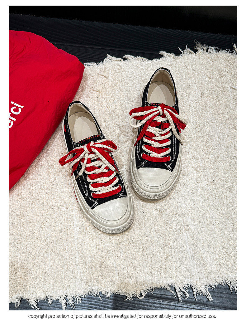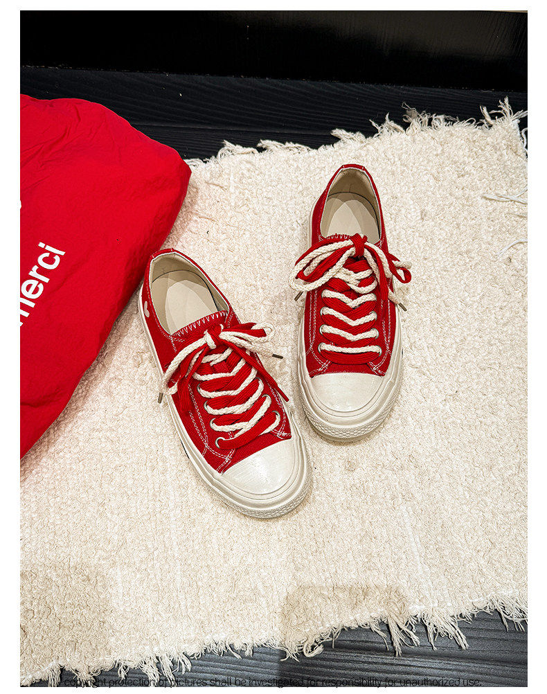 Hong Kong Retro Distressed Canvas Shoes for Women, Early Spring Low-Top Flat Casual White Shoes, Thick-Soled Biscuit Sneakers