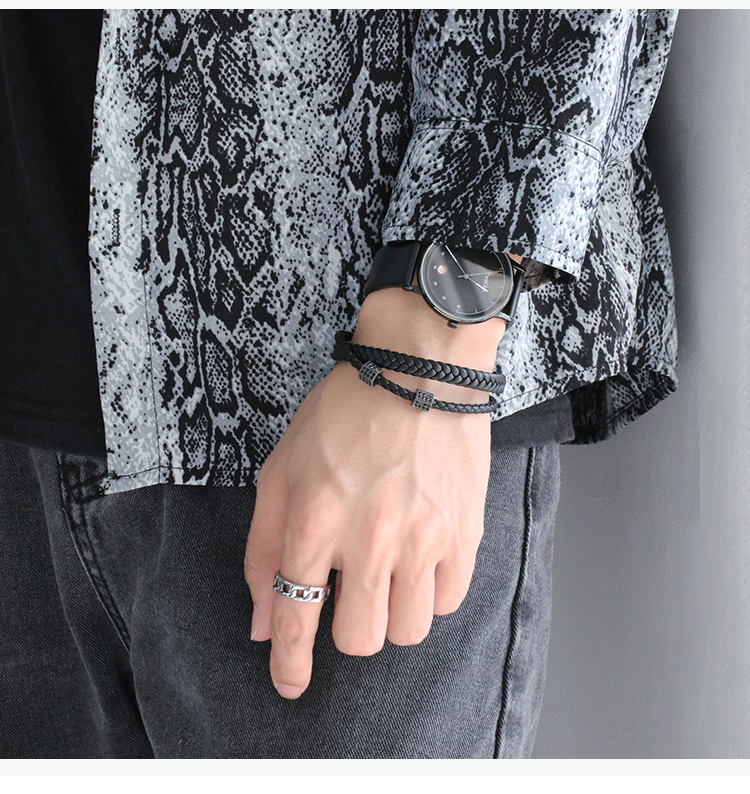 Niche Design High-End Black Leather Braided Bracelet for Men and Women, Students, Korean and Japanese Style, Cool Hip-Hop Couple Bracelet Trend