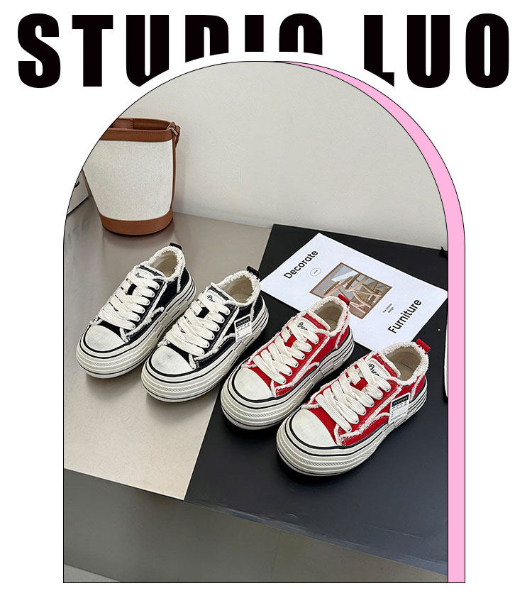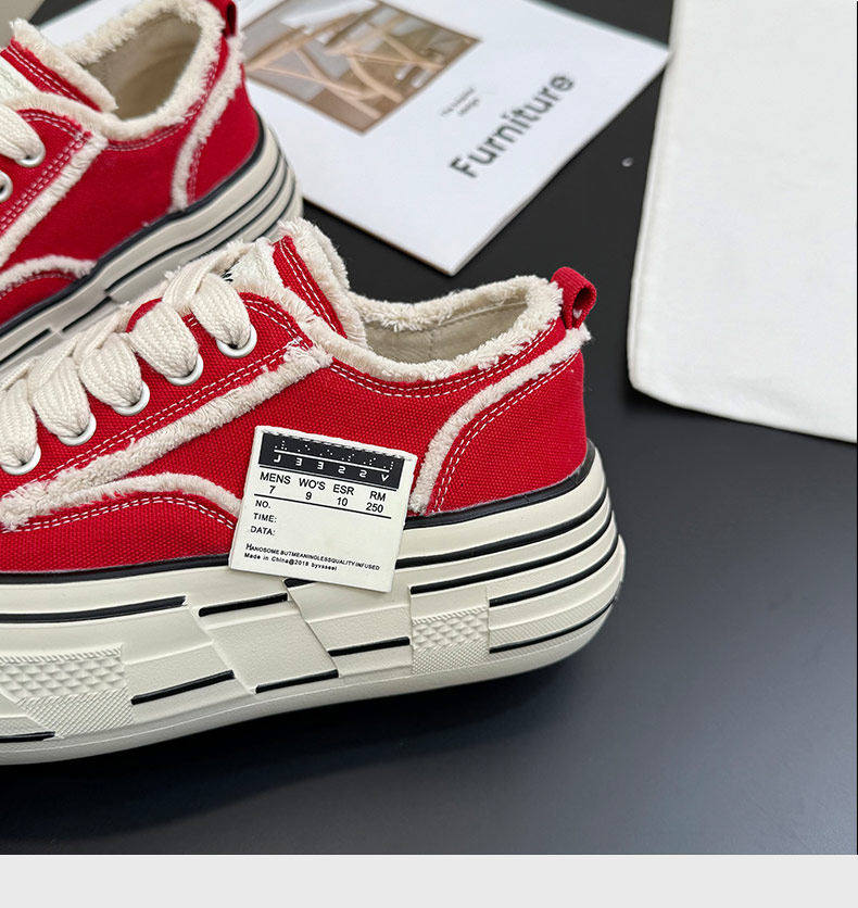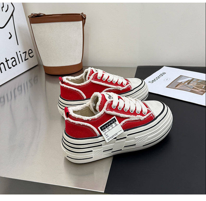 Hong Kong Canvas Shoes for Women 2026 Spring New Red Thick-Soled Platform Shoes Slip-On Two-Way Wear Lazy Casual Beggar Shoes