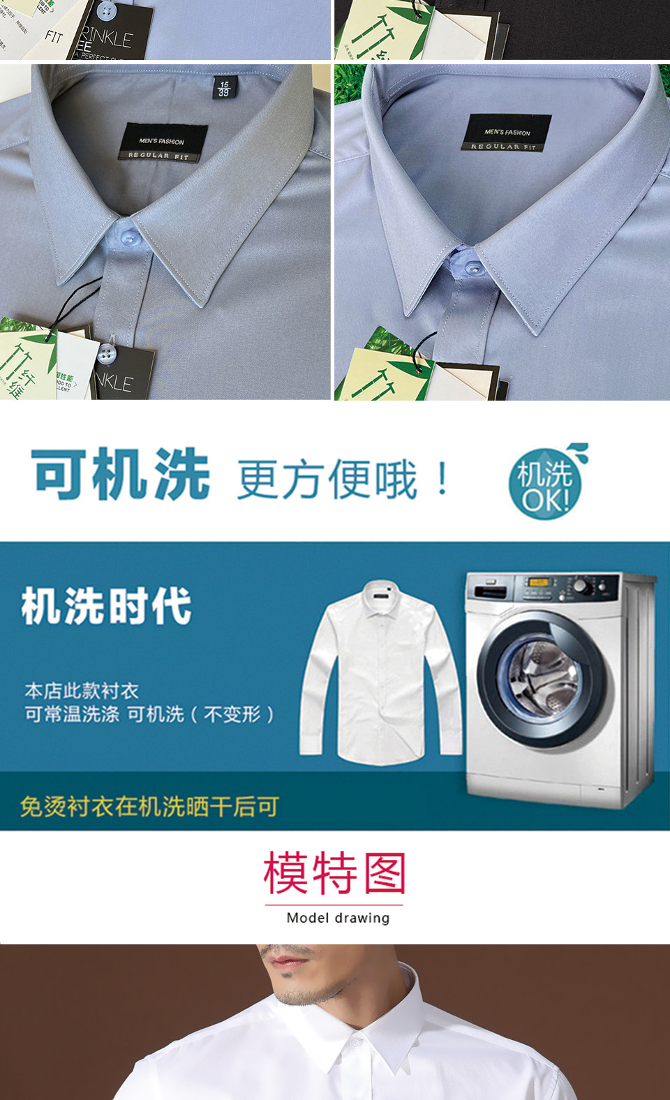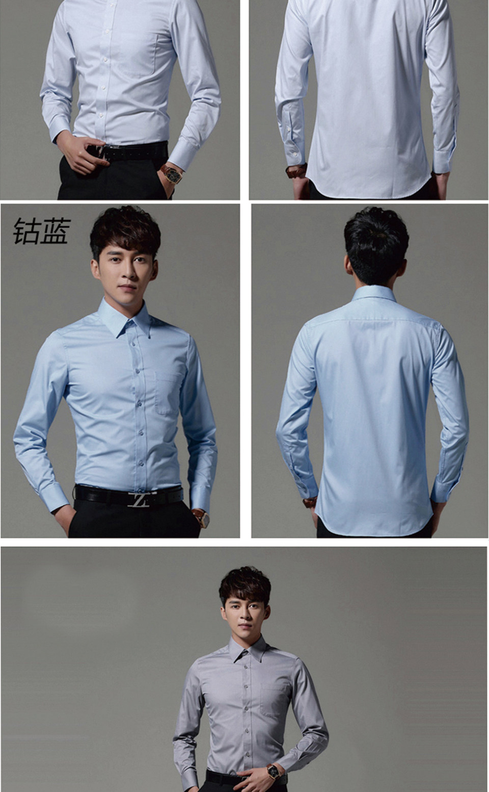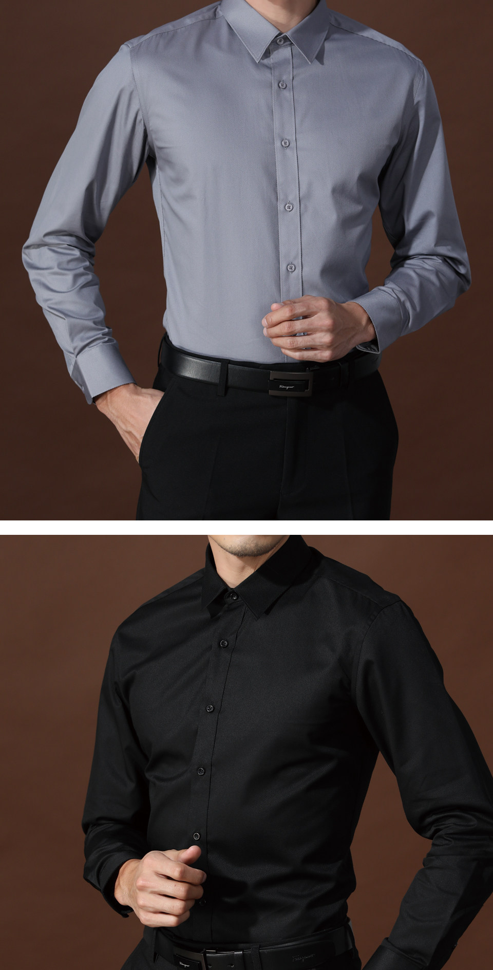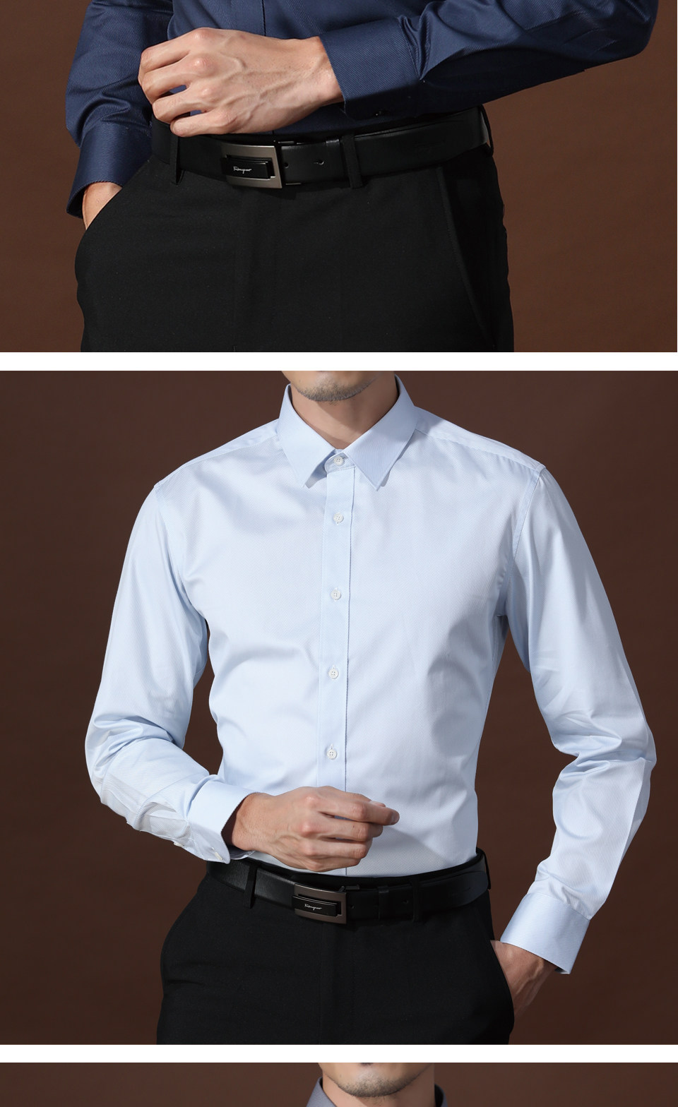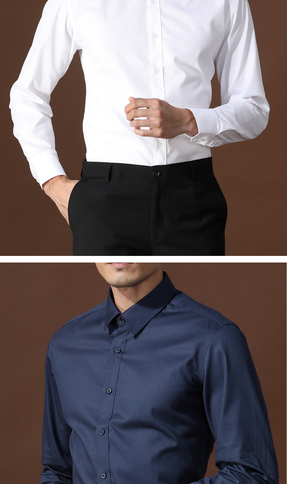 White Men's Long-Sleeved Shirt, Slim Fit, Non-Iron, Business Professional Shirt, Stretchy Short-Sleeved Work Uniform, Wedding Summer and Autumn Formal Wear