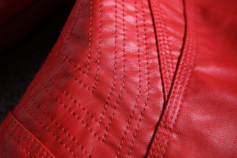 Korean Red Genuine Leather Jacket for Women, Spring and Autumn 2025 New Style, Slim Fit, Short, Thickened Biker Leather Jacket