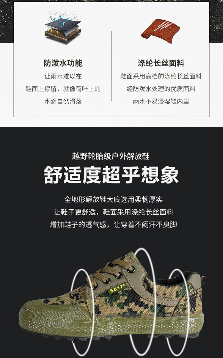 3517 Camouflage Liberation Rubber Shoes Men's Labor Protection Shoes Rubber Sole Wear-Resistant Anti-Slip Summer Breathable Construction Site Low-Top Canvas Shoes