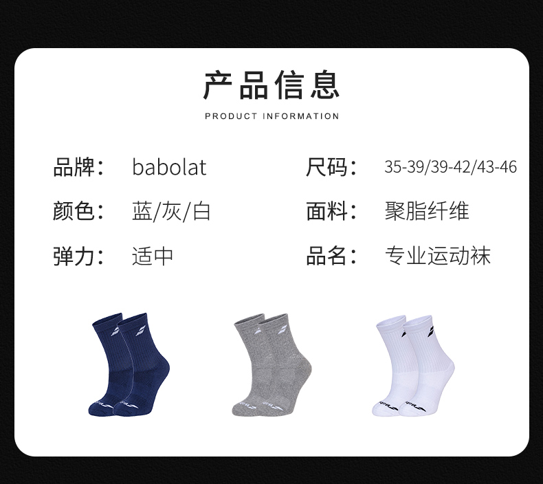 Babolat Sports Tennis Socks for Men and Women, Thickened Sweat-Absorbent Breathable Towel Socks, 3 Pairs of Mid-Calf Socks