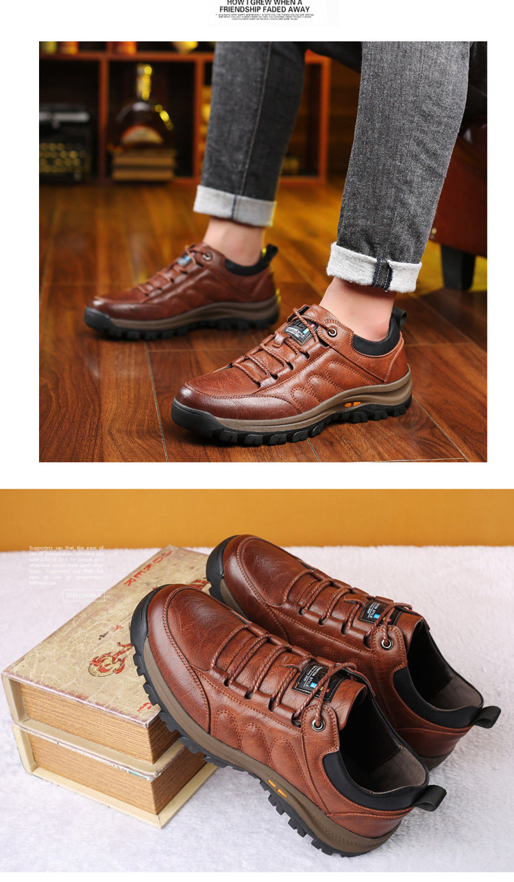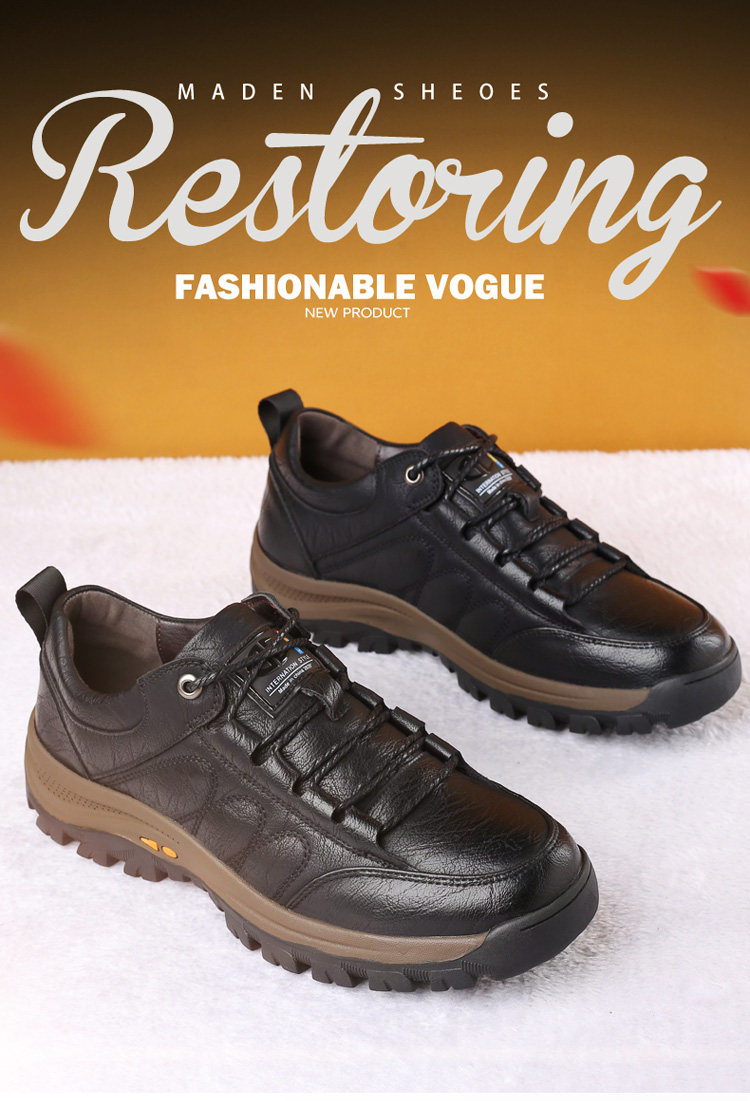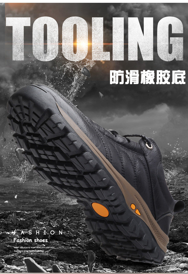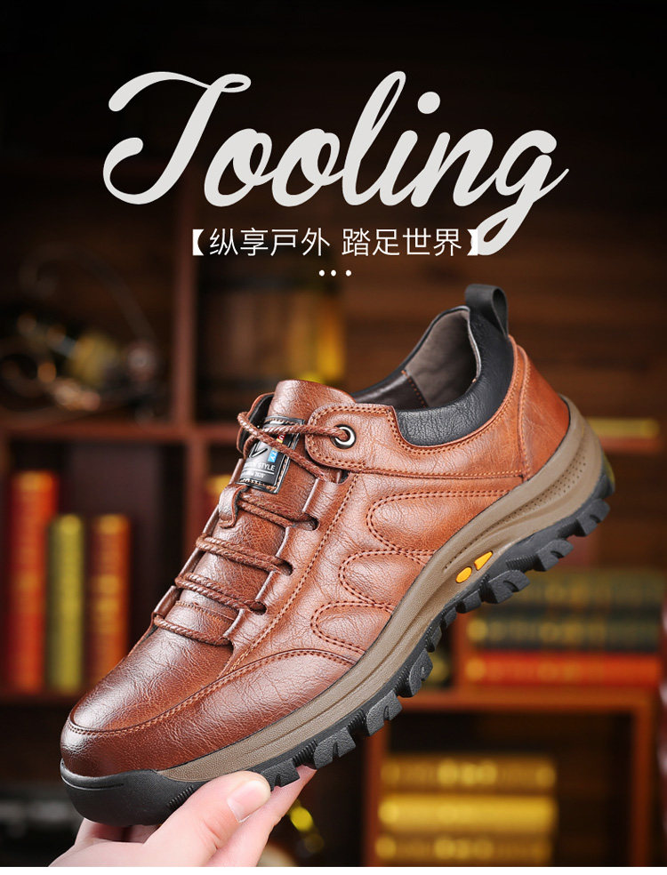 Woodpecker Men's Shoes Outdoor Sports Casual Hiking Shoes Winter Fleece-Lined High-Top Cotton Shoes Genuine Leather Dad Shoes Men's Style