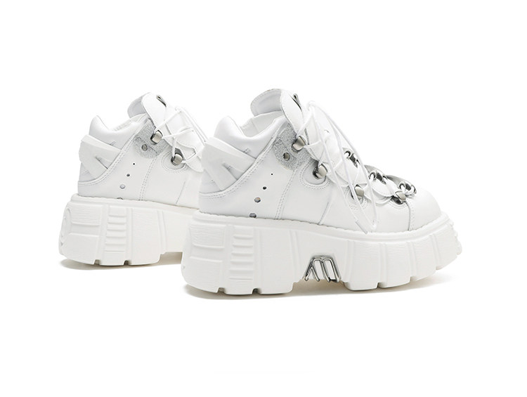 2024 Spring and Autumn New Low-Top Metal Platform Dad Shoes Versatile Height-Increasing Punk Shoes Thick-Soled Round-Toe Women's Shoes