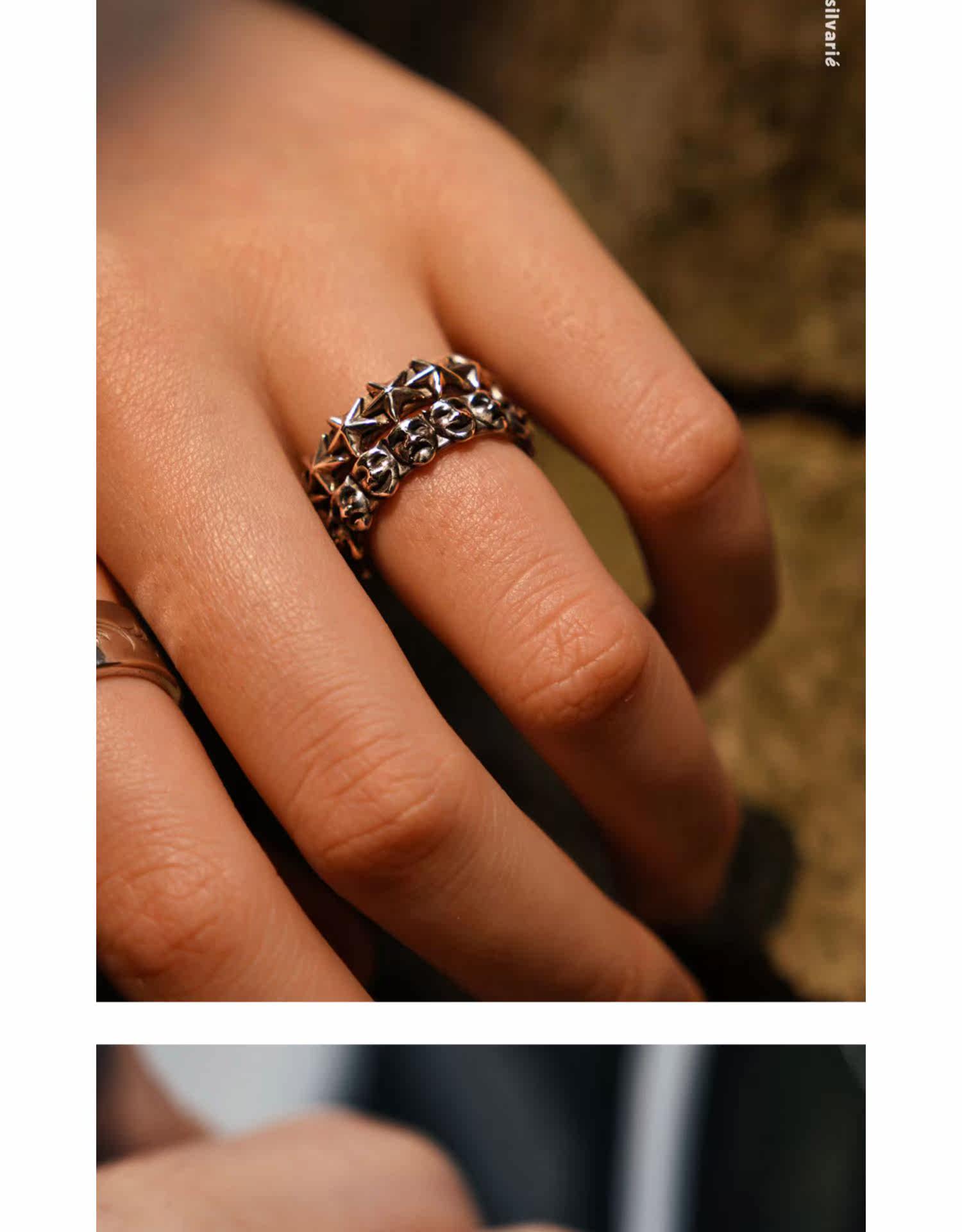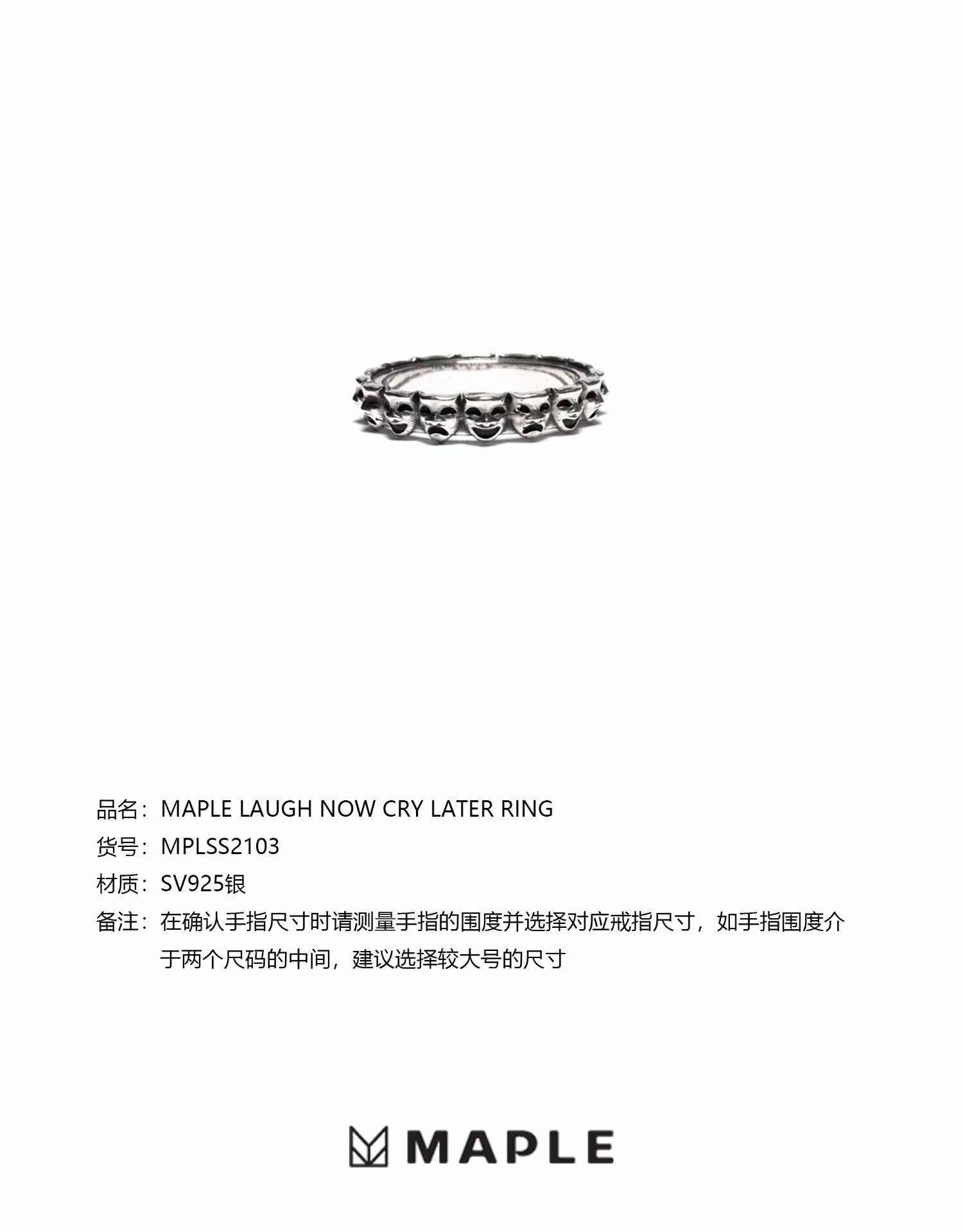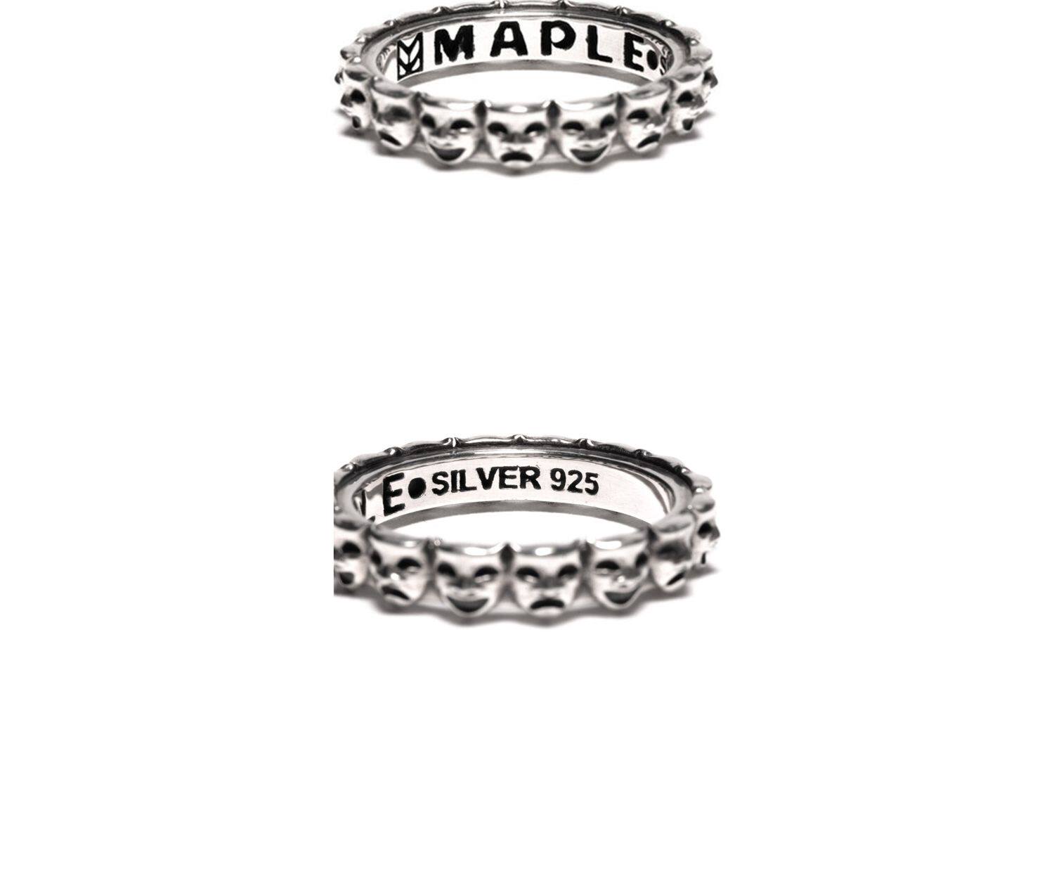 =Silvarie=Maple Canadian Trendy Niche Retro Design Smiley Face Crying Face Drama Sterling Silver Ring