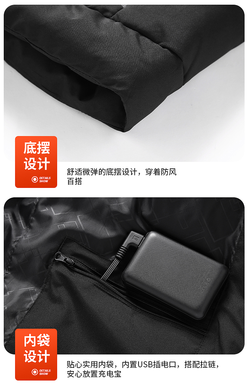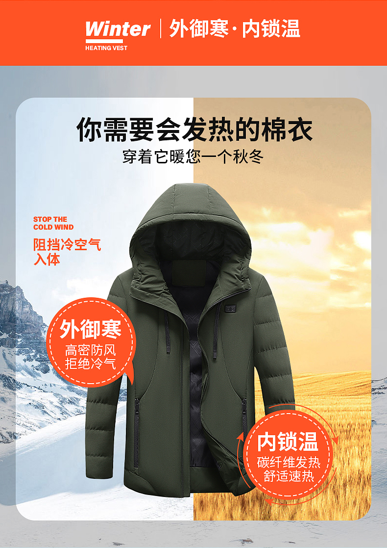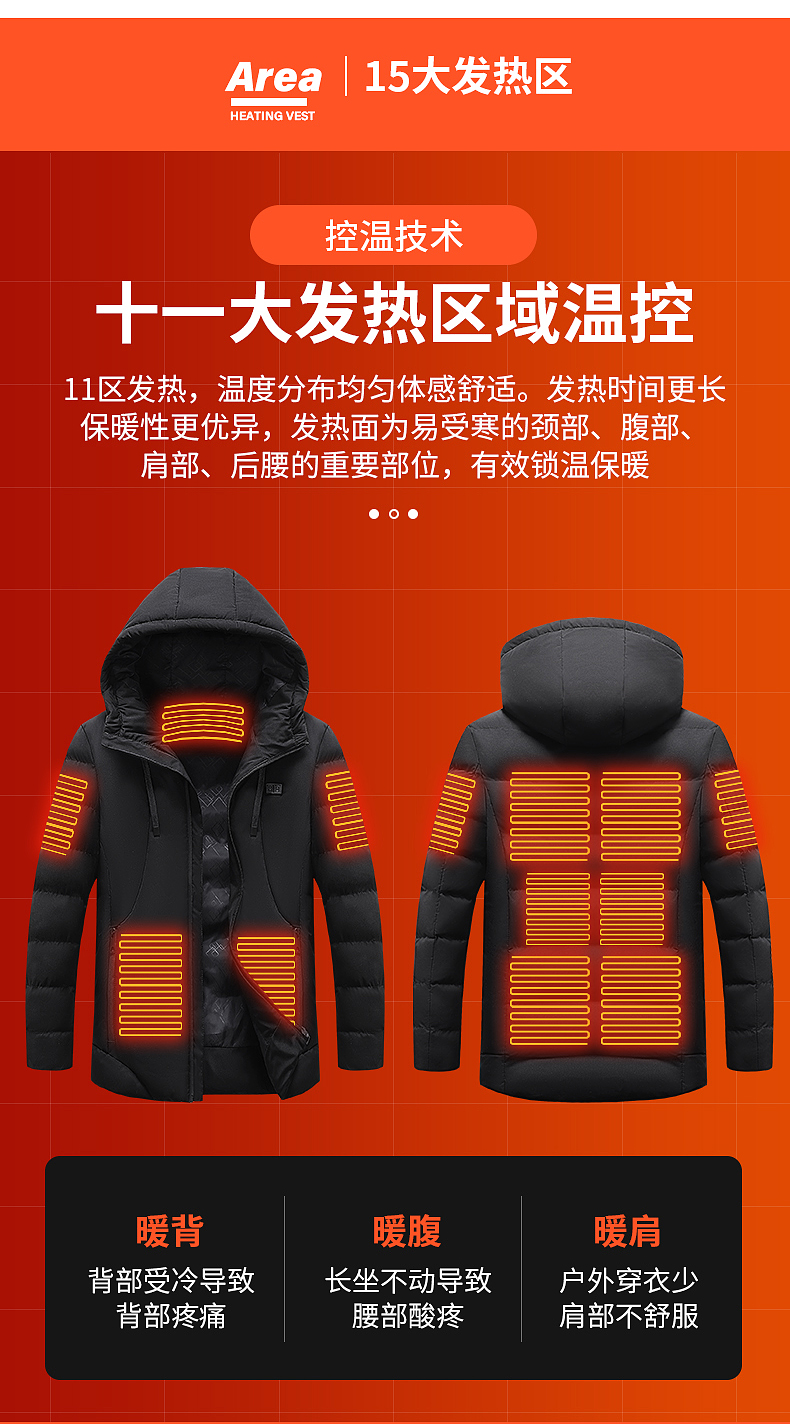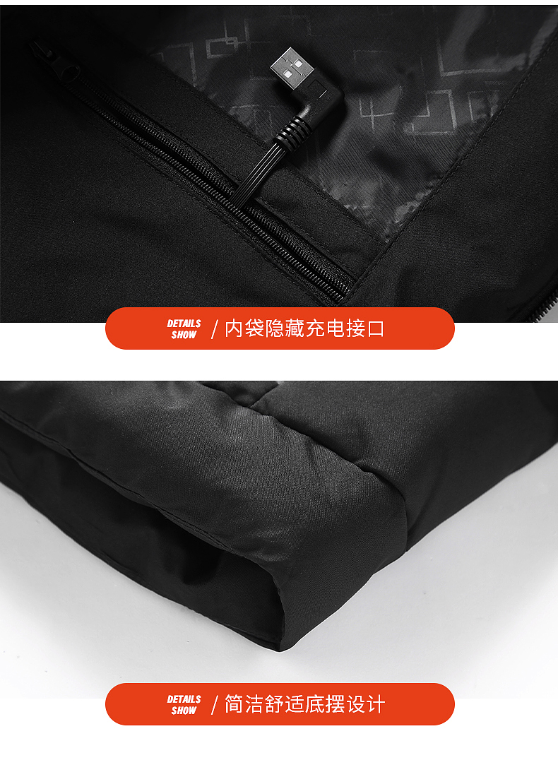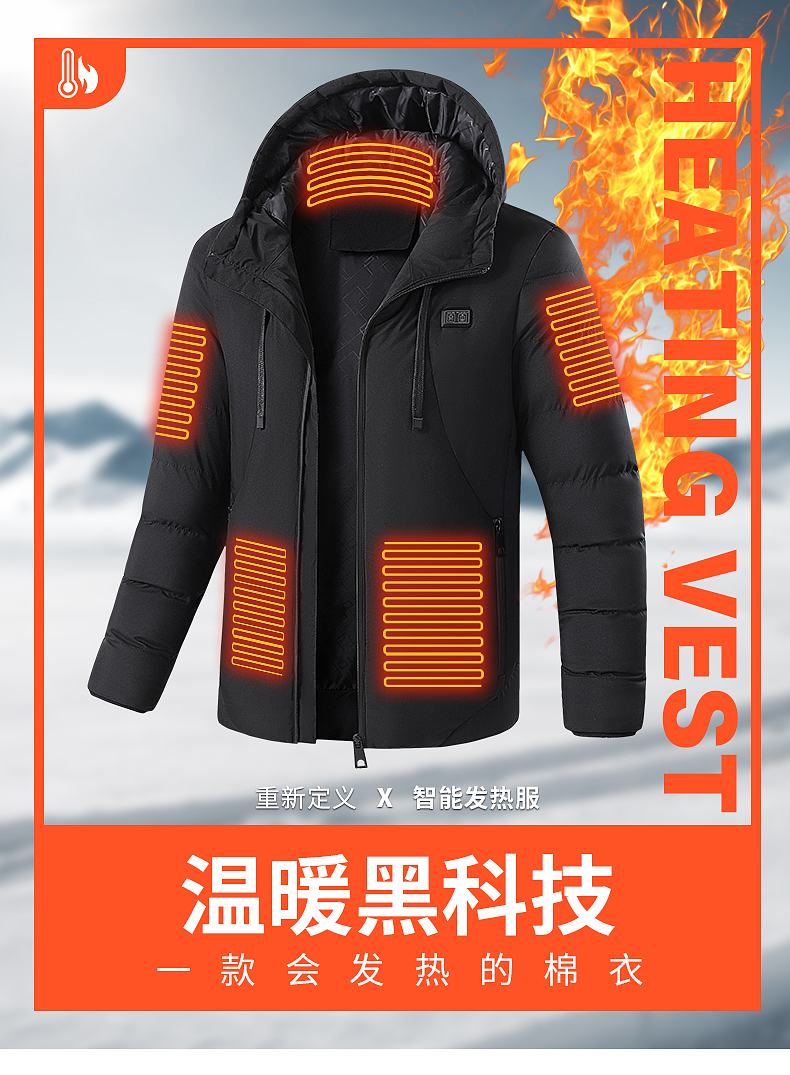 Black Technology Smart USB Rechargeable Self-Heating down Jacket for Men and Women, Warm and Heated Coat, Thickened Windproof Jacket