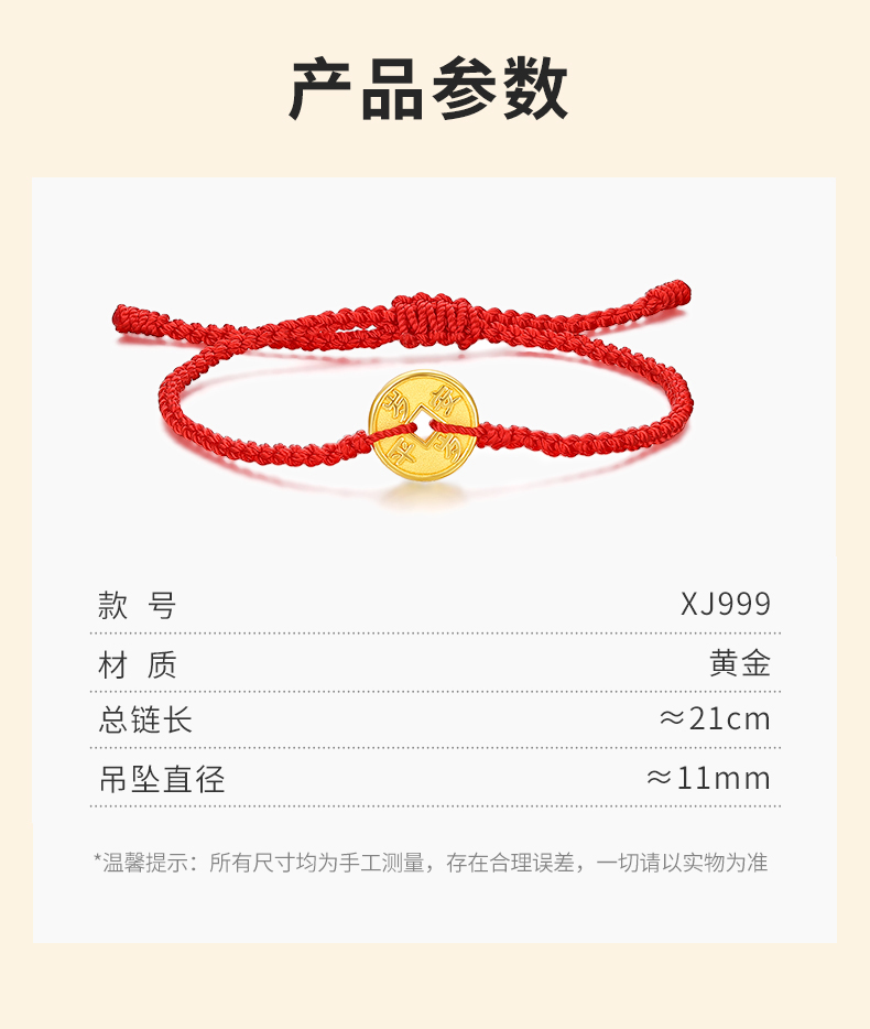 TSL Xie Ruilin Gadget Series Gold Copper Money Bracelet Transfer Beads Red Rope Year-to-Year Peace Bracelet XJ999