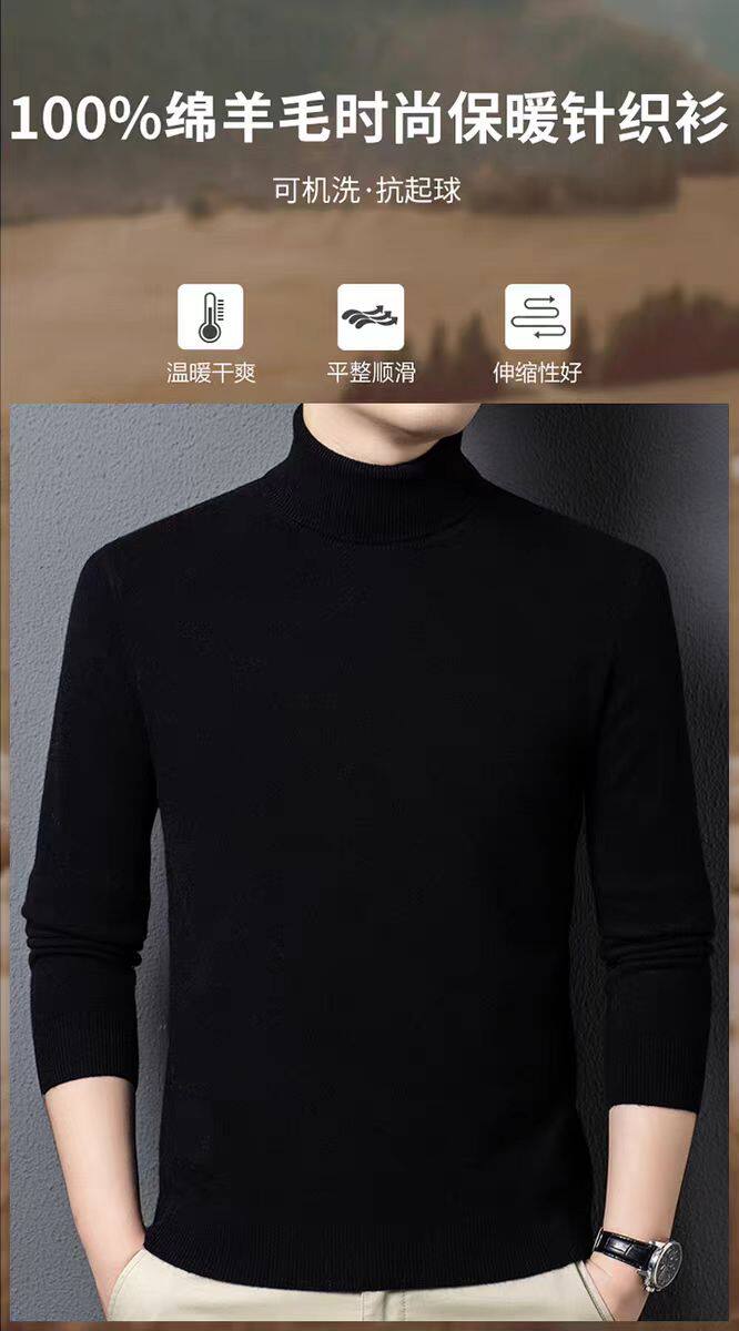 Hengyuanxiang Men's 100% Pure Wool Turtleneck Sweater, Men's Winter Thickened Warm Knitted Base Layer Cashmere Sweater