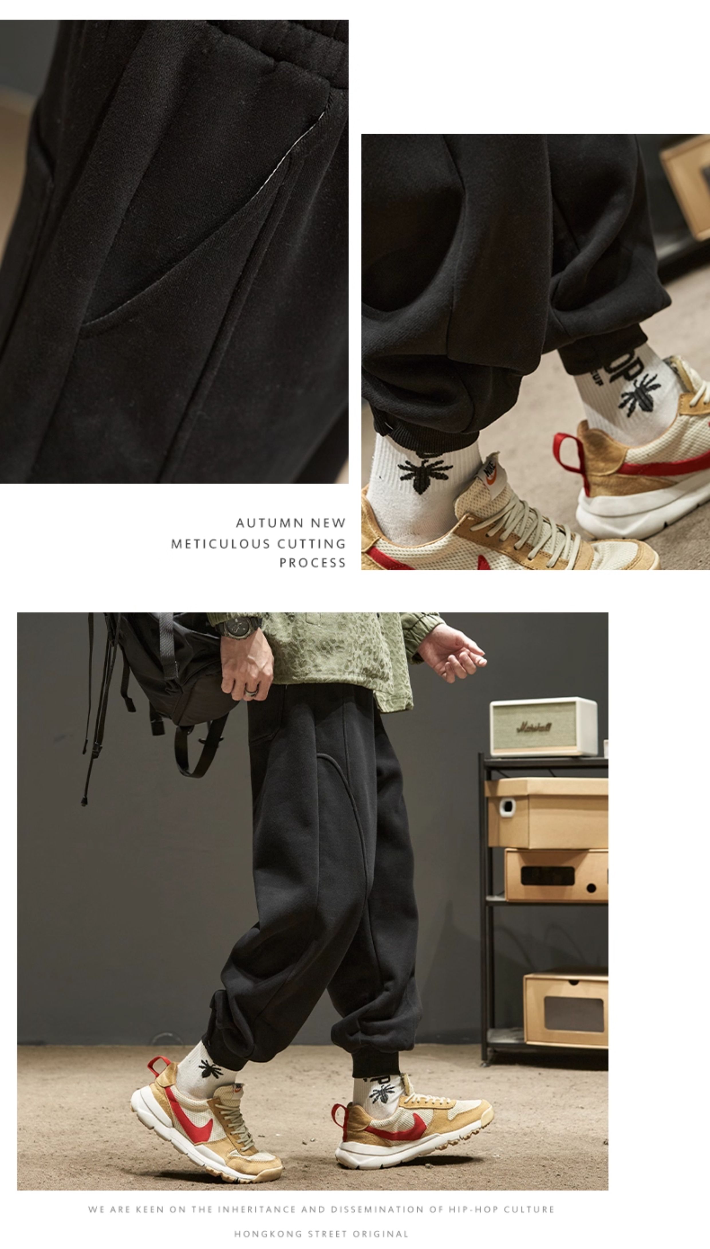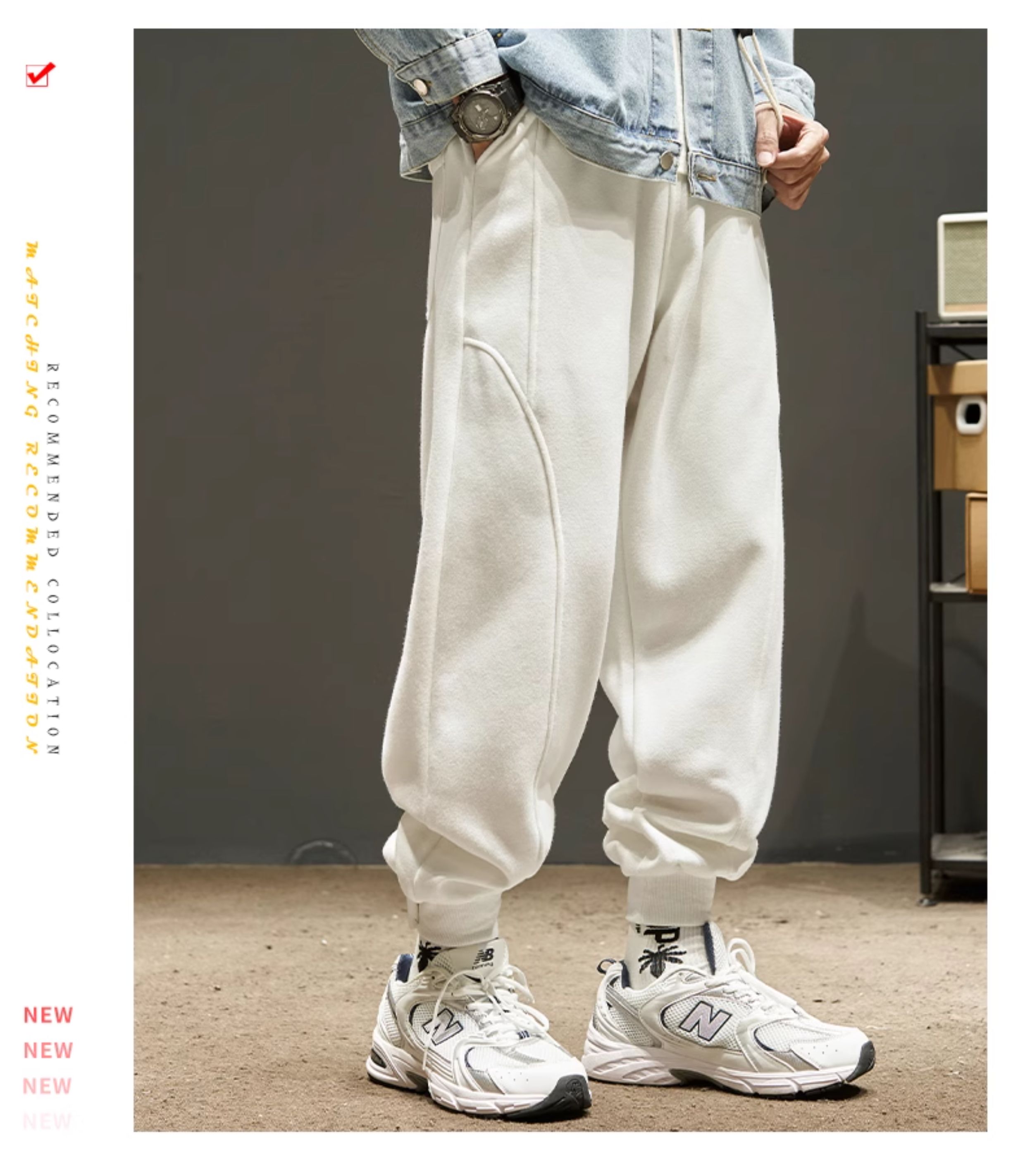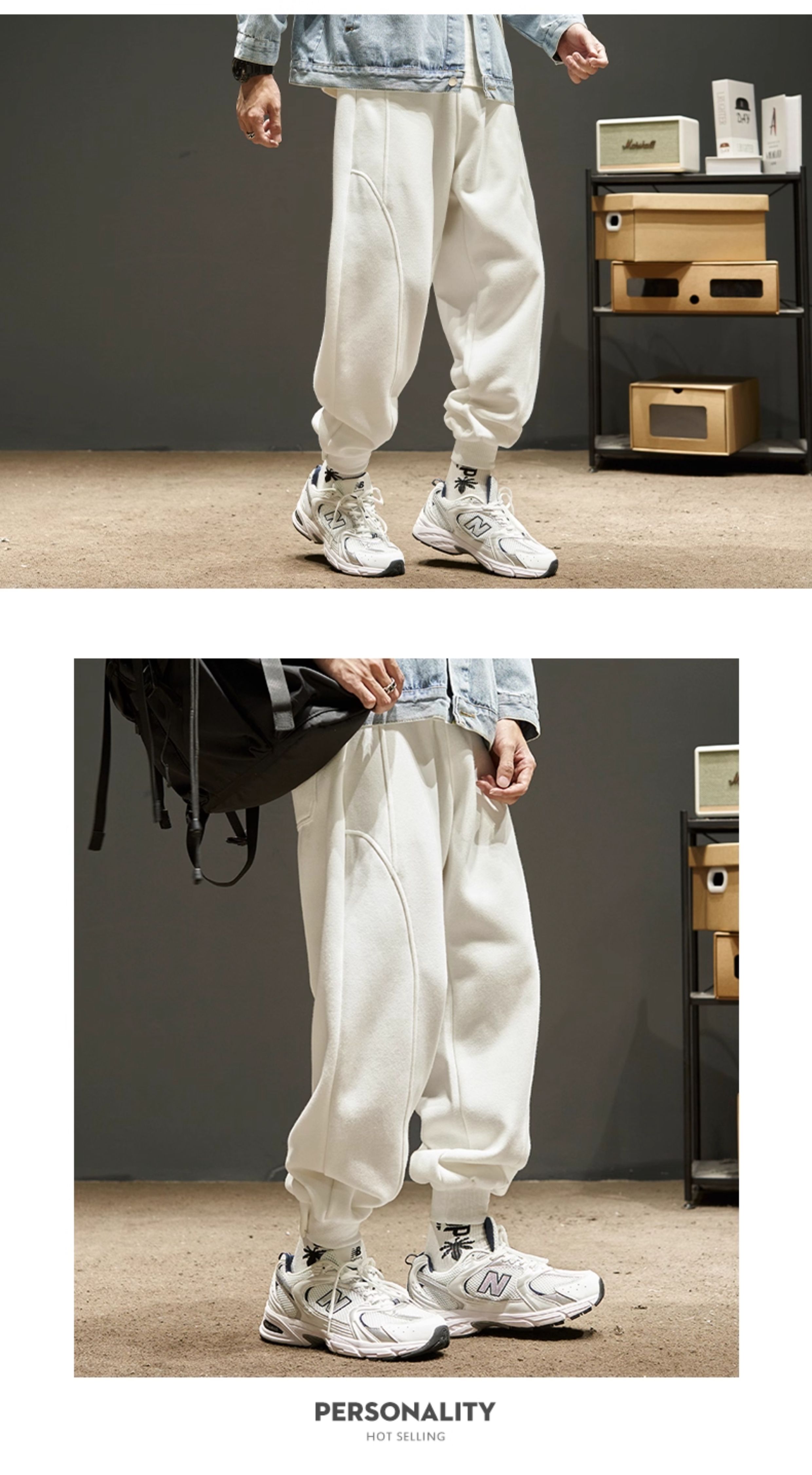 Men's Sweatpants, Autumn and Winter Style, American-Style Sports Pants, Loose Fit, Fleece-Lined, Thickened Long Pants, Winter Casual Pants, Men's Trousers