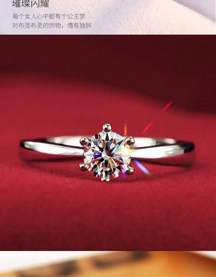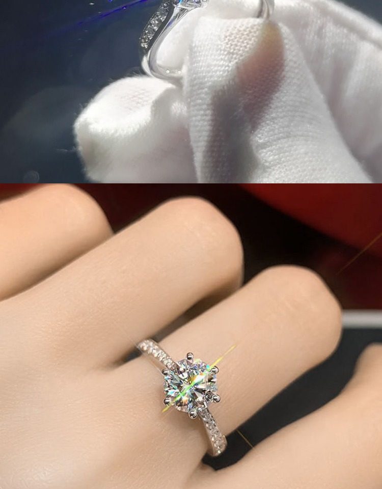 With Certificate, Ten Times Compensation for Any Fake, 925 Six-Claw Moissanite Simulated Engagement Diamond Ring for Women, Couple Rings, Birthday Gift