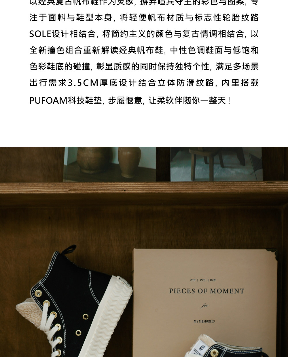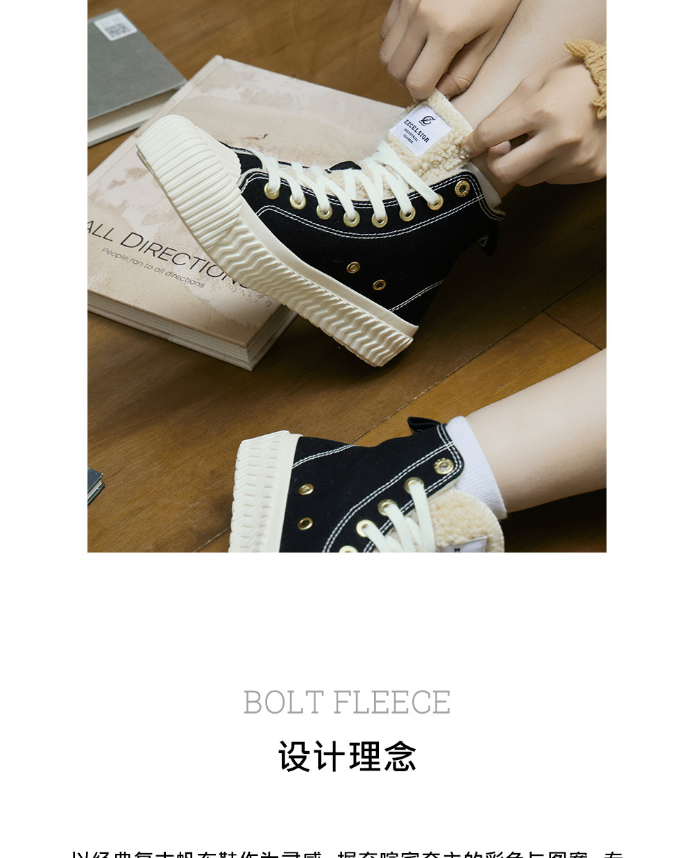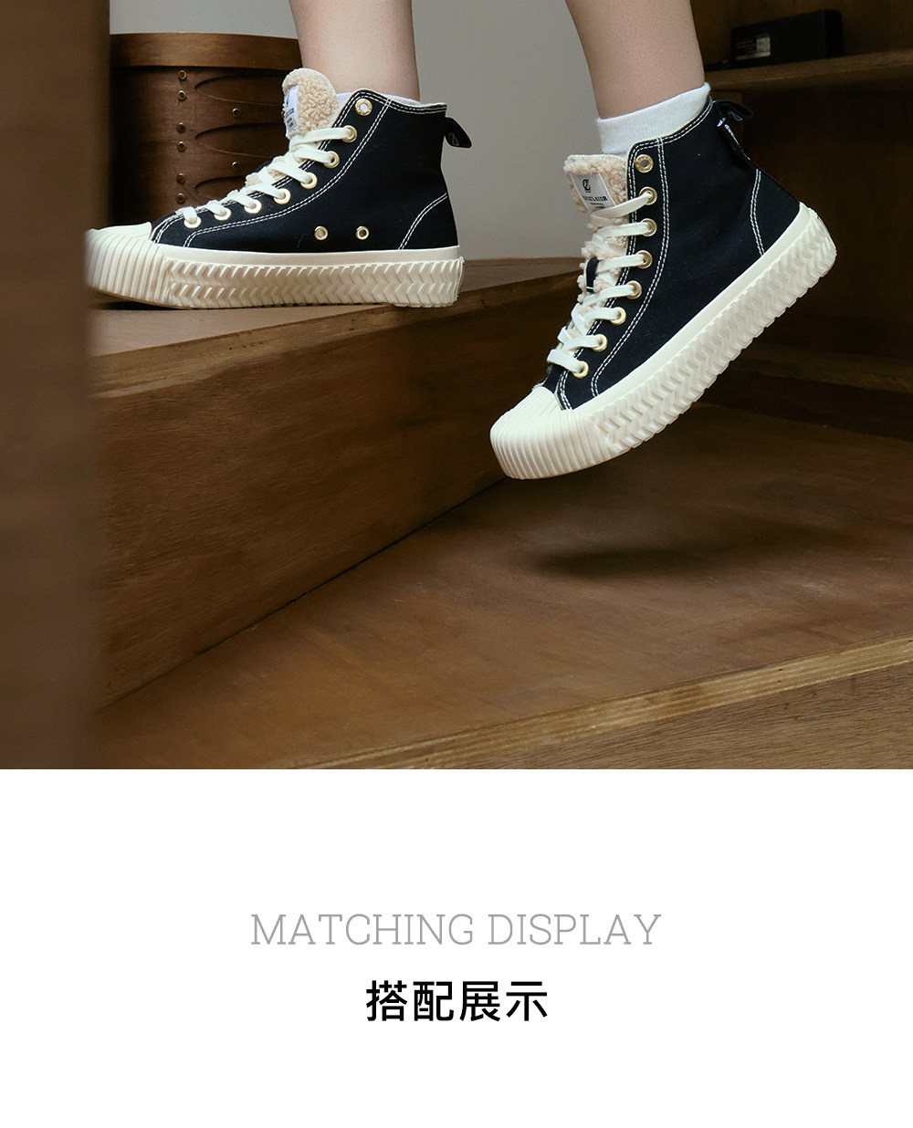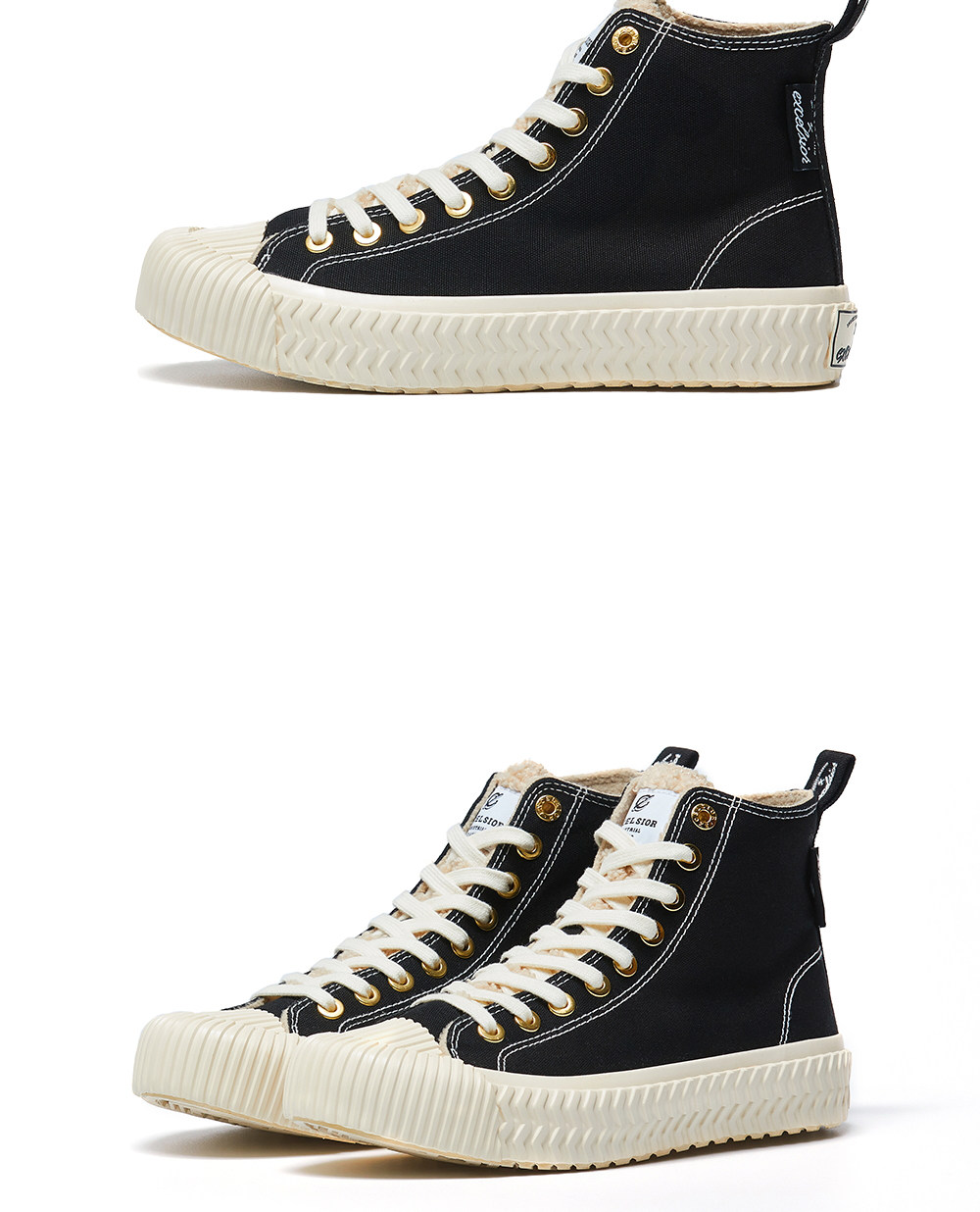 Excelsior Biscuit Shoes, New Autumn and Winter Sneakers with Plush Lining, Women's Black Casual Shoes, Thick-Soled High-Top Canvas Shoes