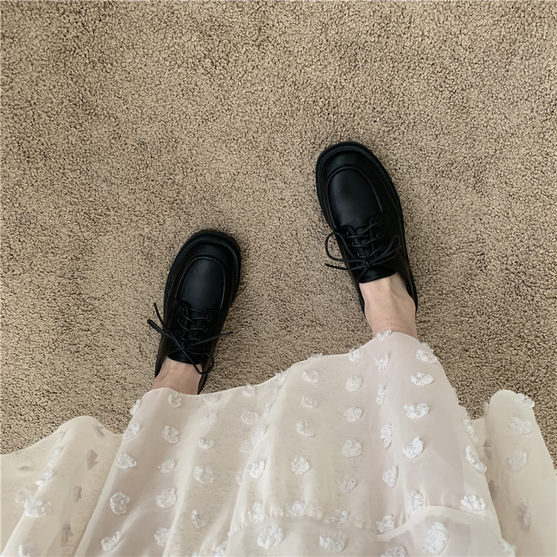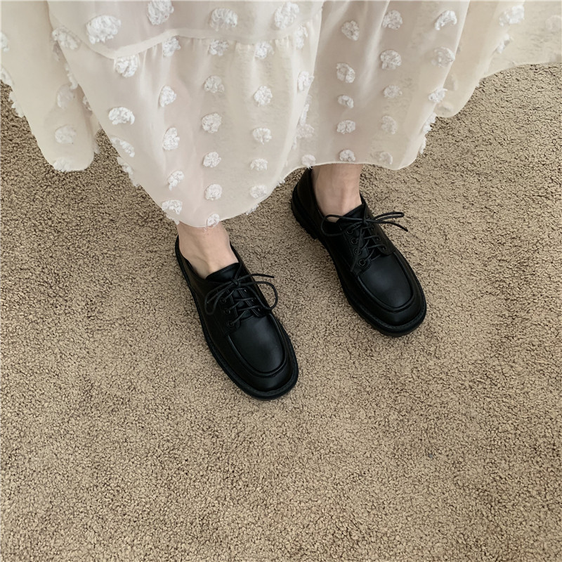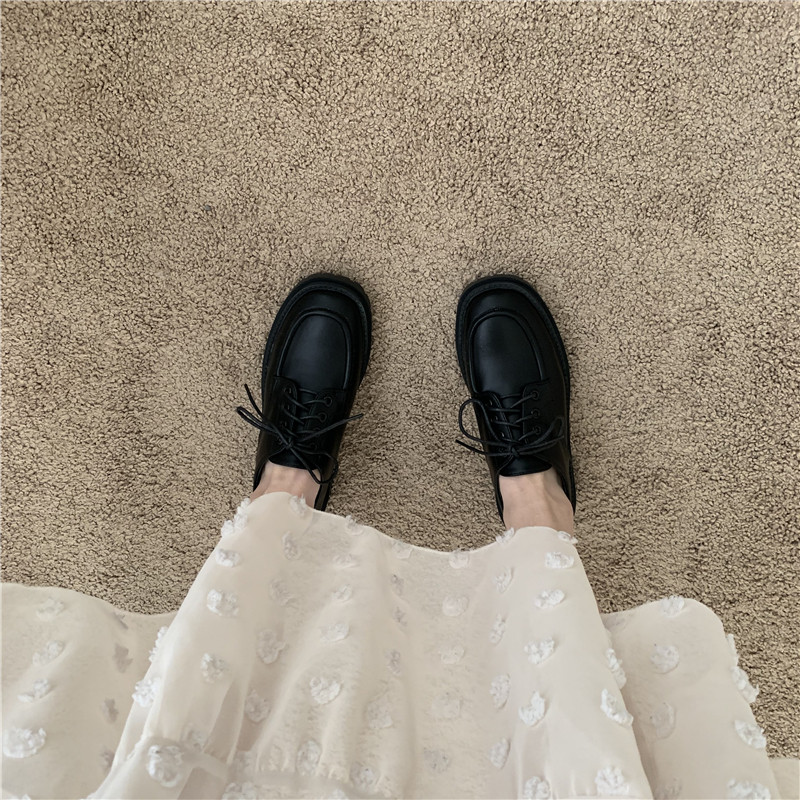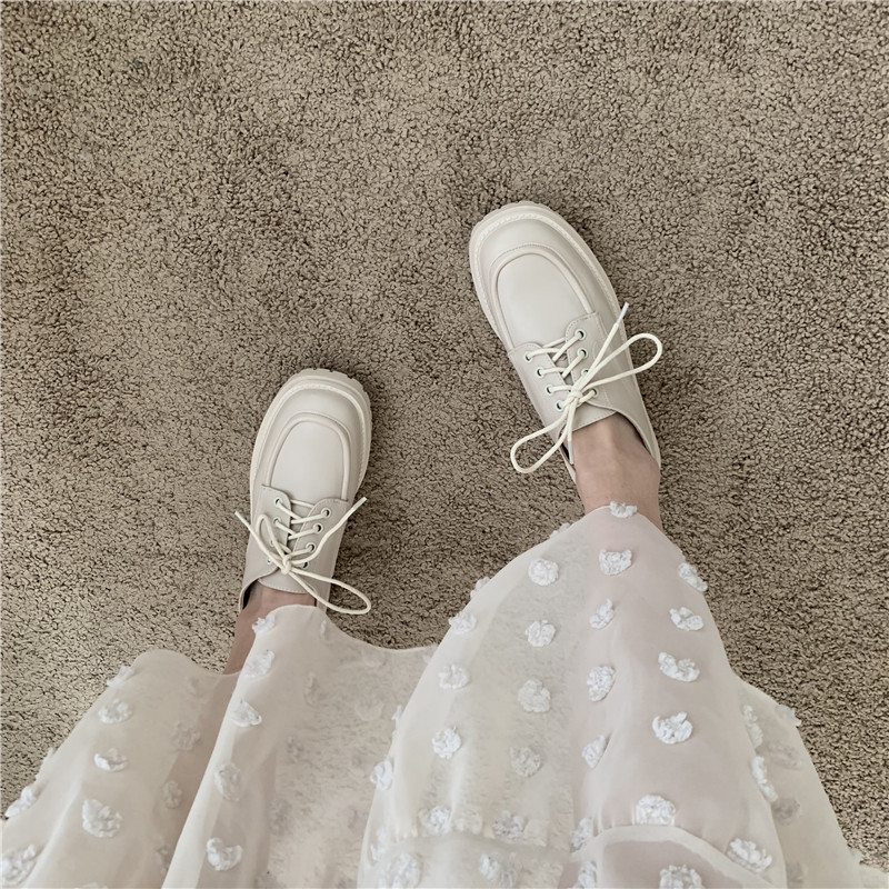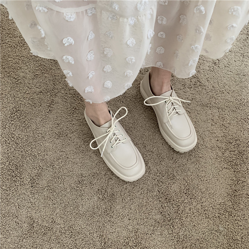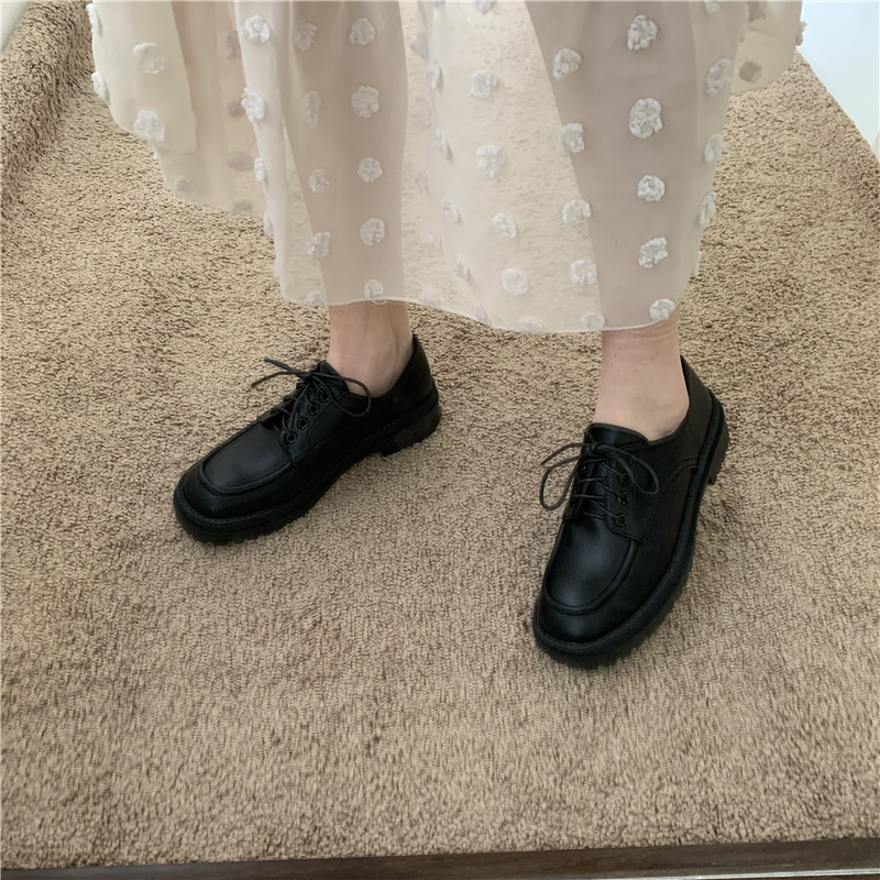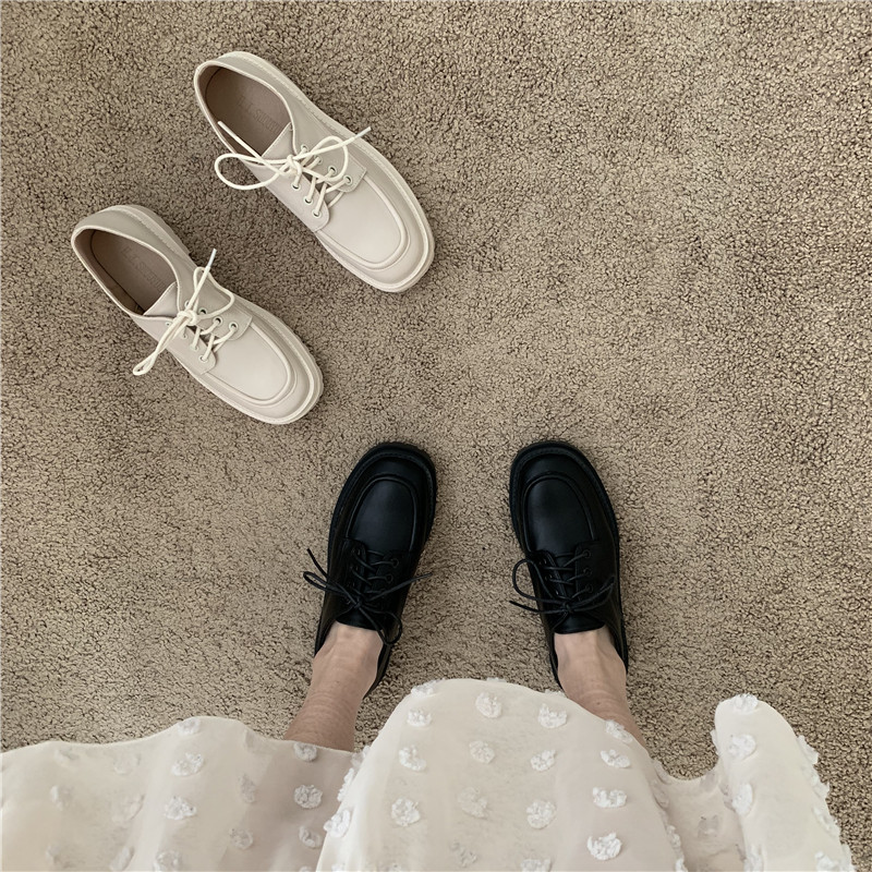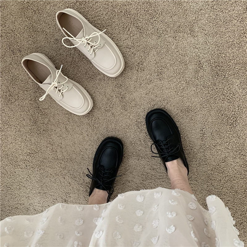 Hong Kong British Style Women's Leather Shoes 2026 Spring and Autumn New Lace-Up Thick-Soled Round-Toe Oxford Versatile Loafers Genuine Leather