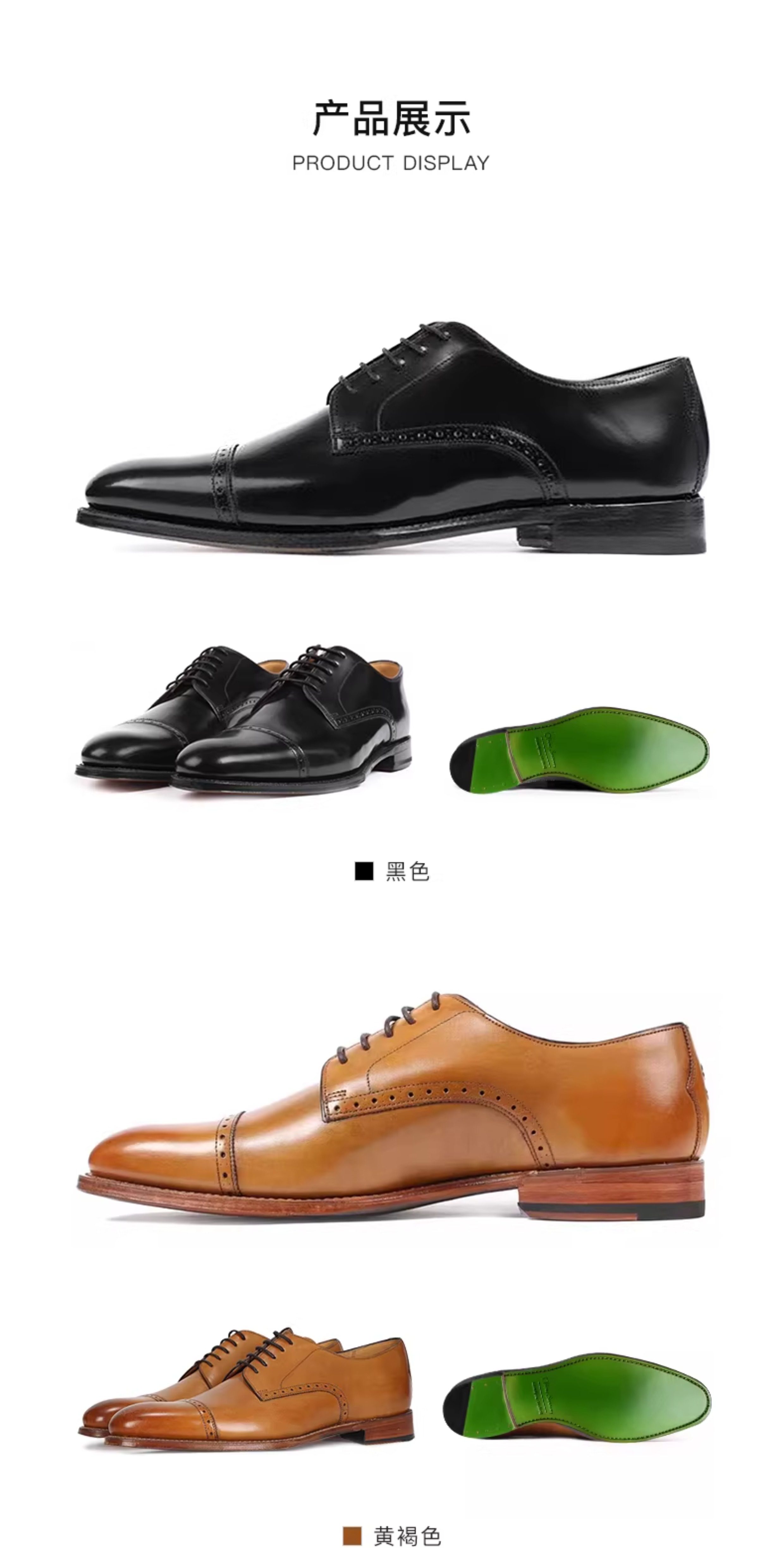 Beckham's Same Style Oliver Sweeney Handmade Leather Business Formal Green-Soled Leather Shoes Derby Wedding Shoes for Men