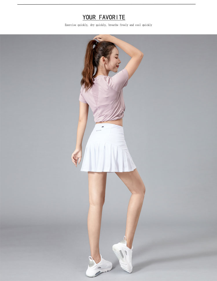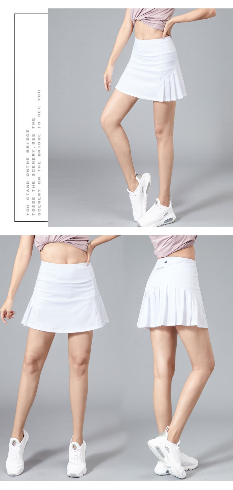 Sports Short Skirt Pants for Women, Quick-Drying Badminton and Tennis Skirt, Running and Fitness Fake Two-Piece White High-Waisted Pleated Skirt