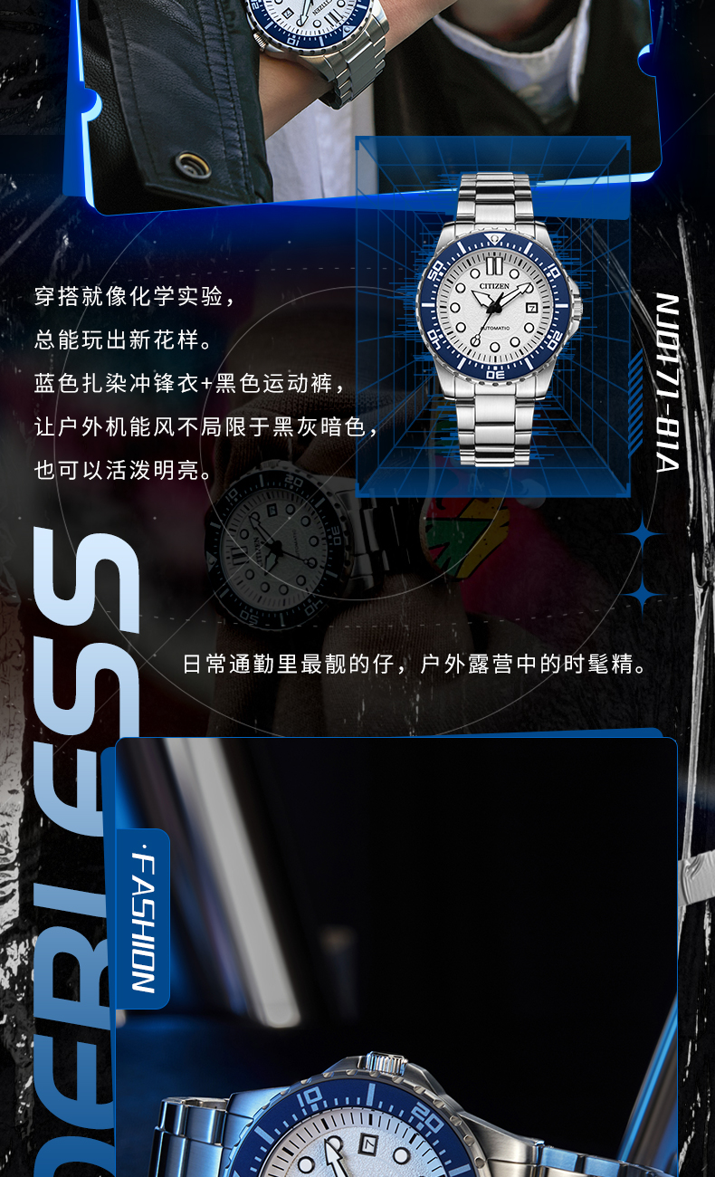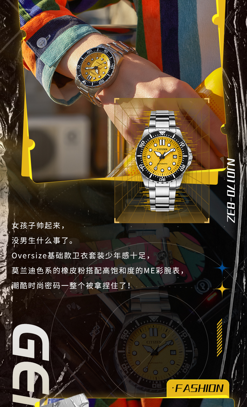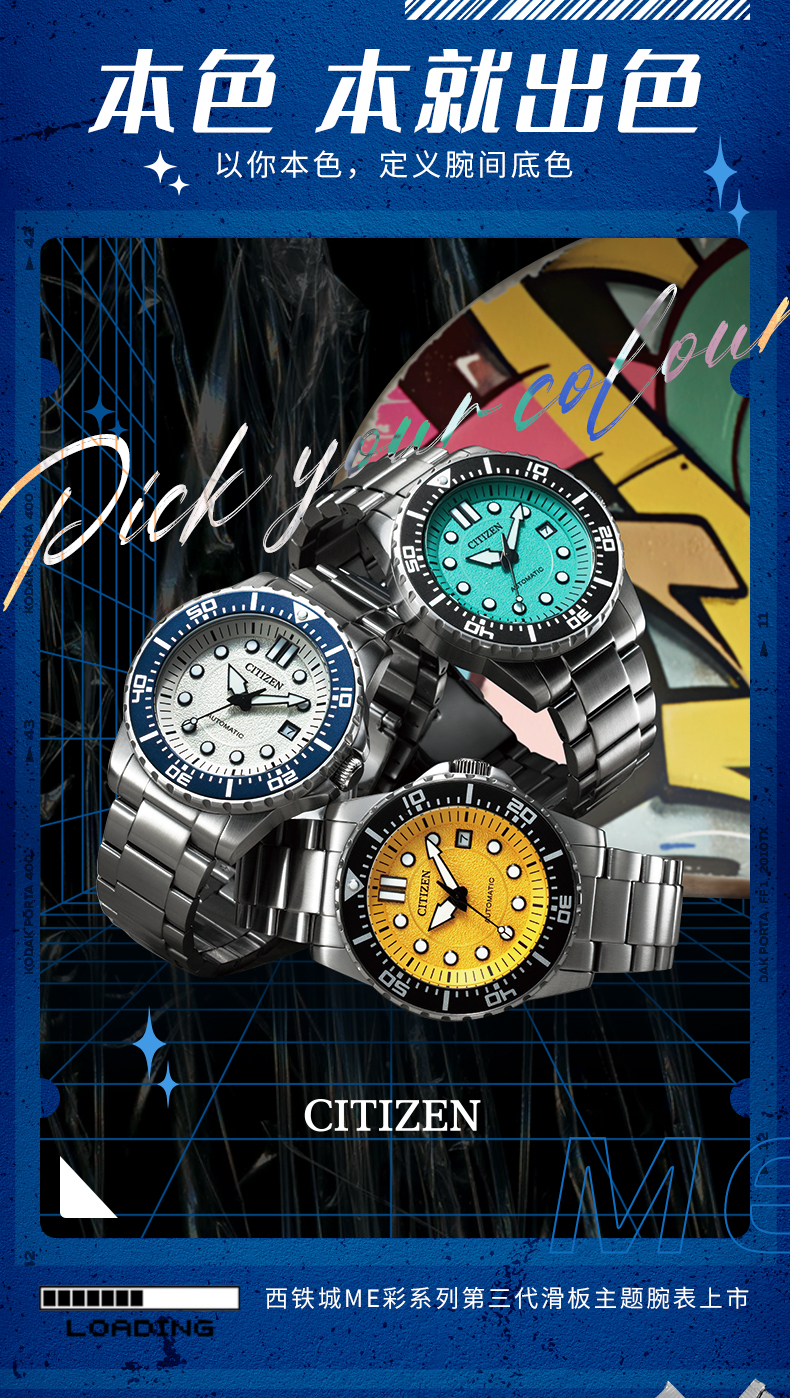 Citizen Official Trendy Me Color Series Green Water Ghost Colorful Mechanical Men's Watch Nj0170