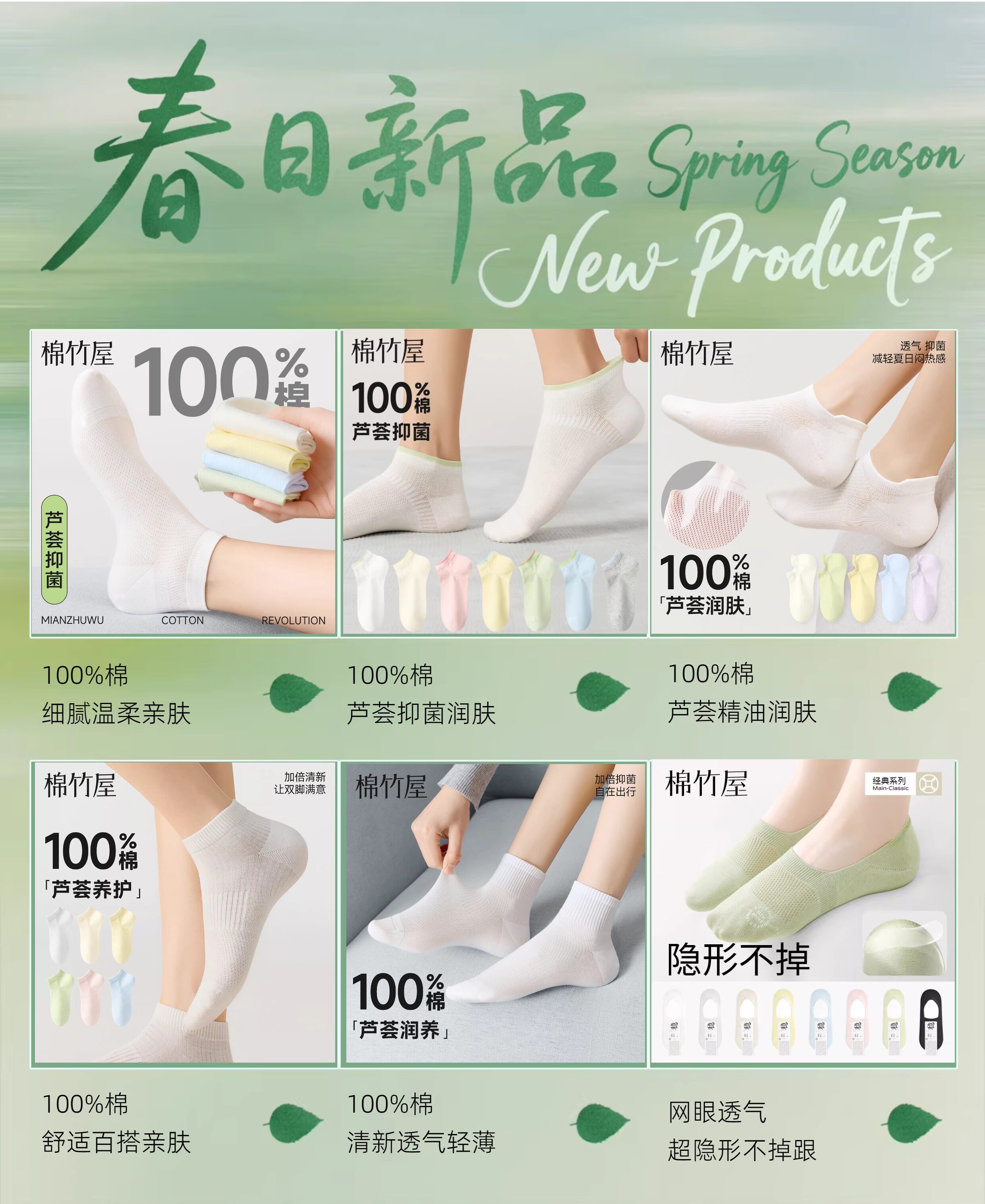 Women's Short Socks, Pure Cotton, Spring and Autumn, Non-Slip, No-Show, 2025 New Popular Style, Summer Thin, Odor-Resistant No-Show Socks
