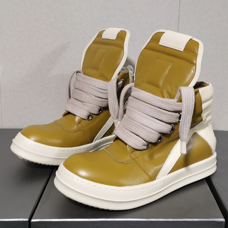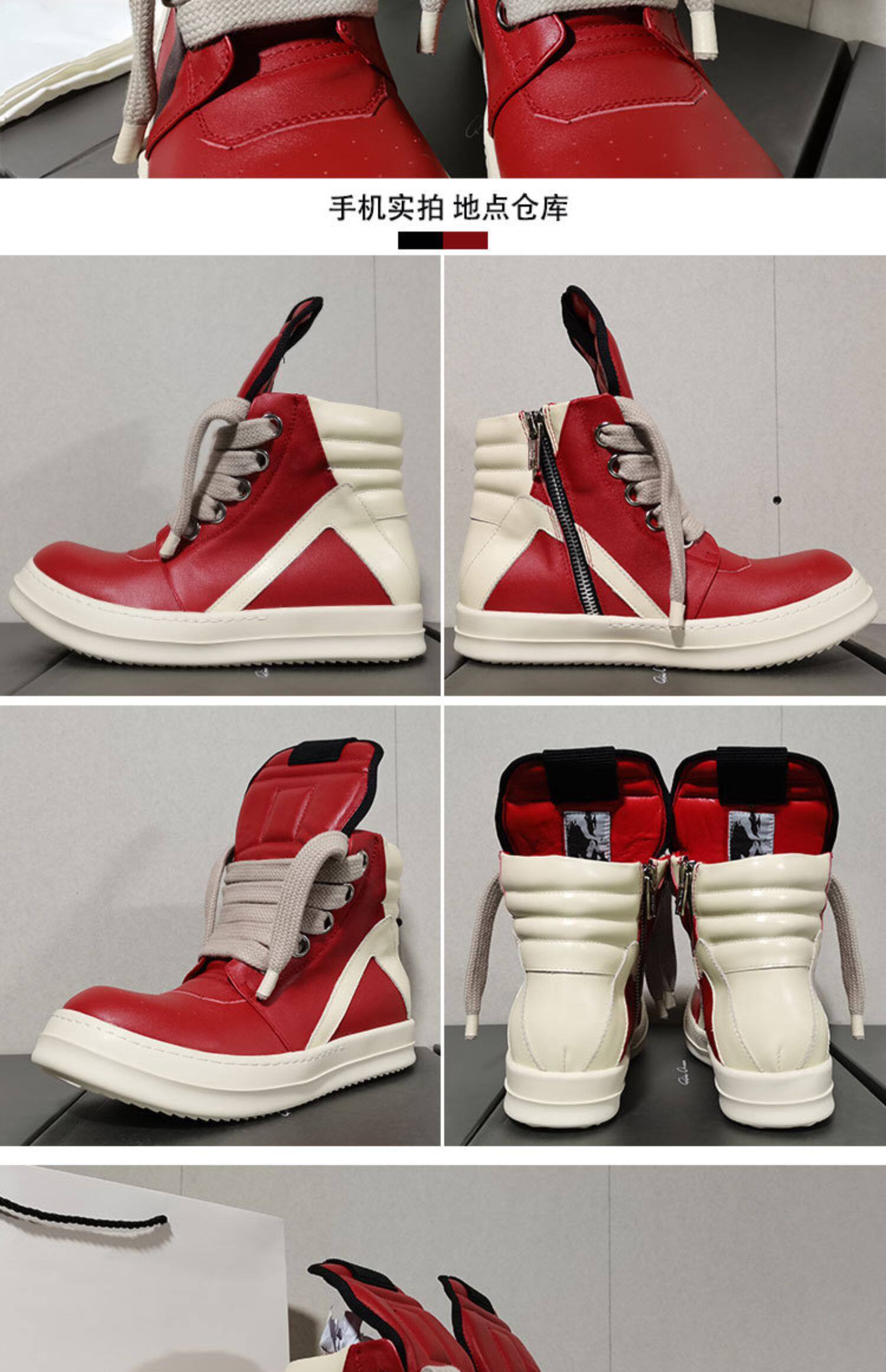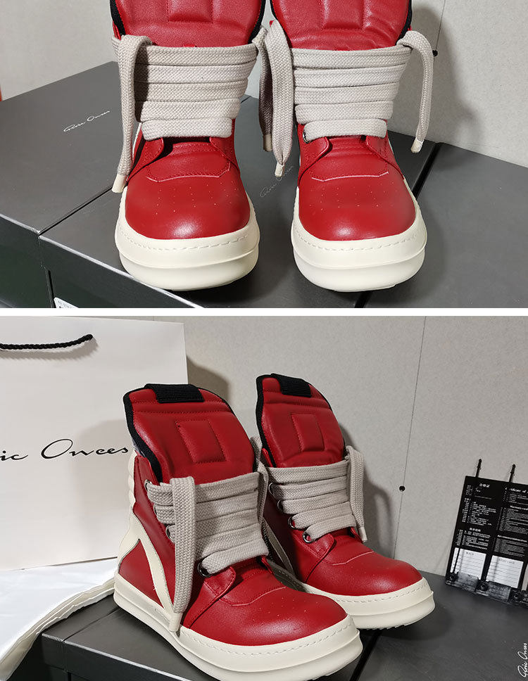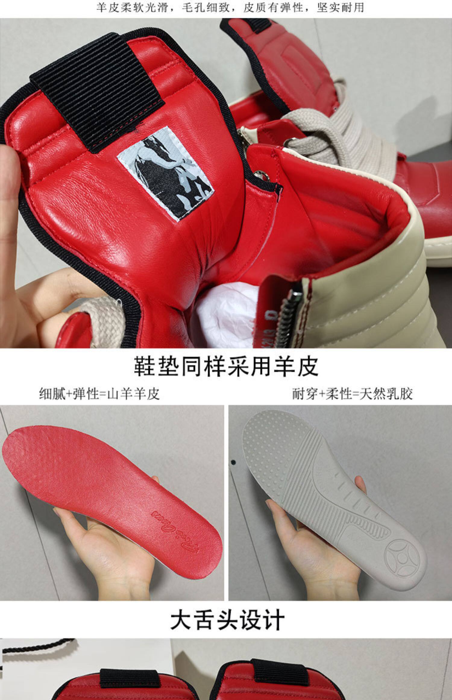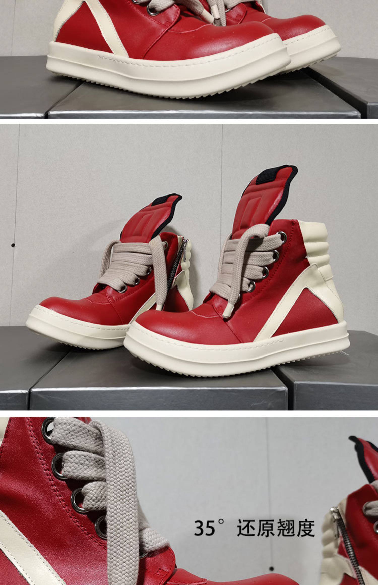 Ro High Top Large Inverted Triangle Red and Yellow Cow Goatskin Wide Shoelaces Thick Sole Increased Round Toe Men's Sneakers