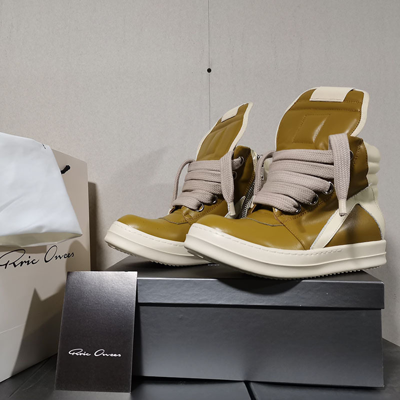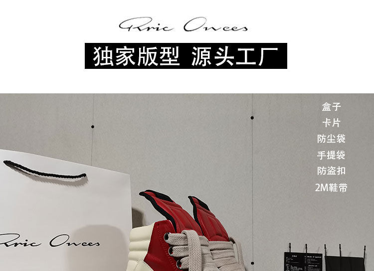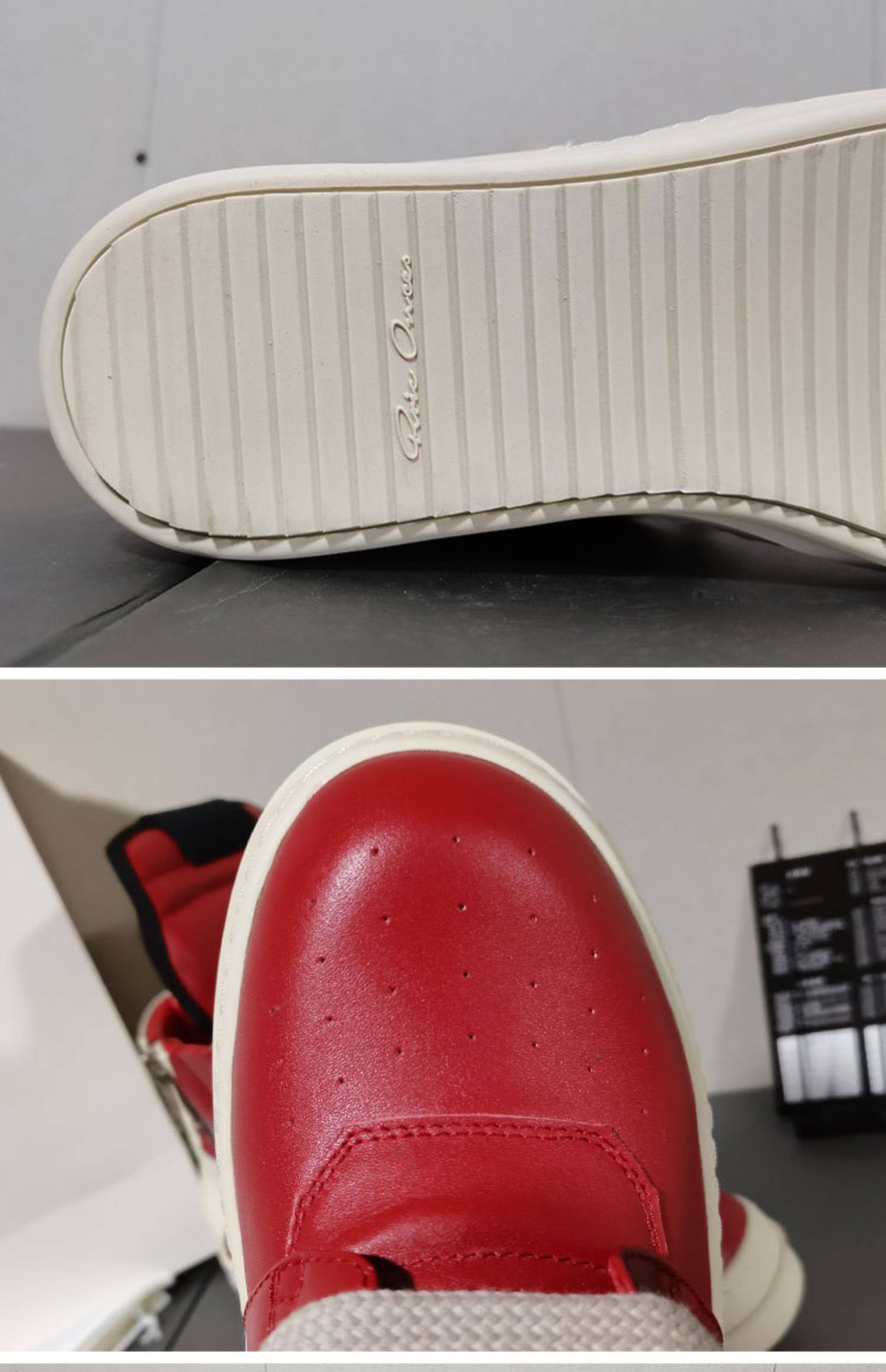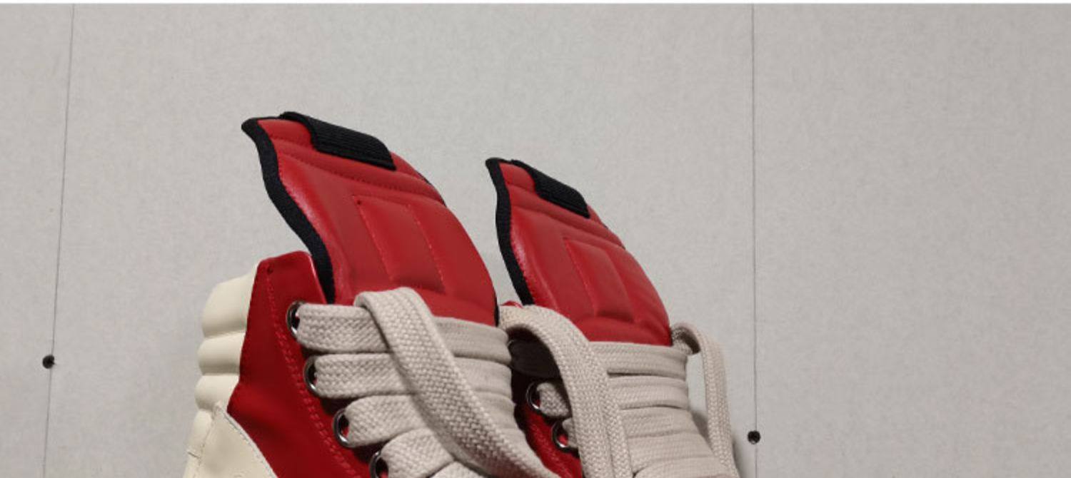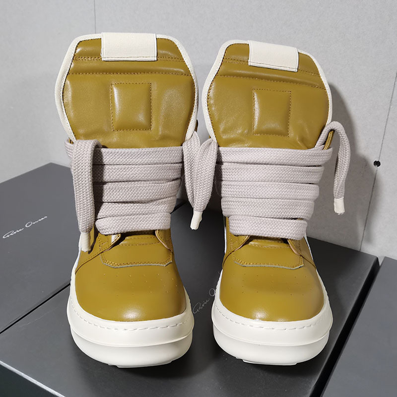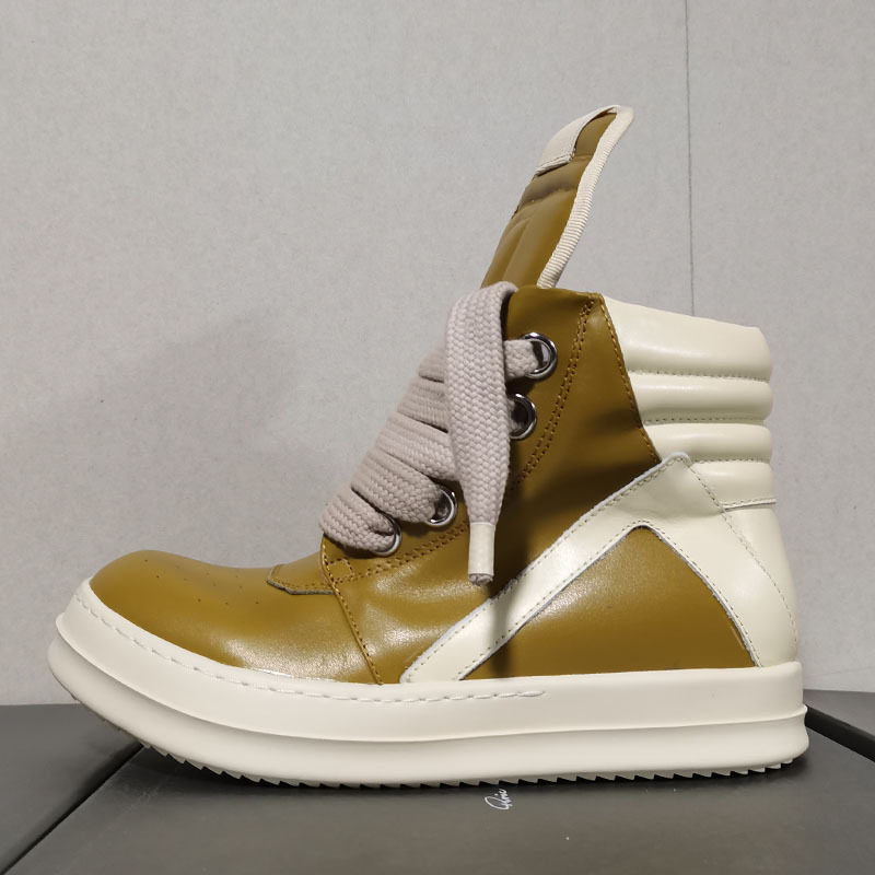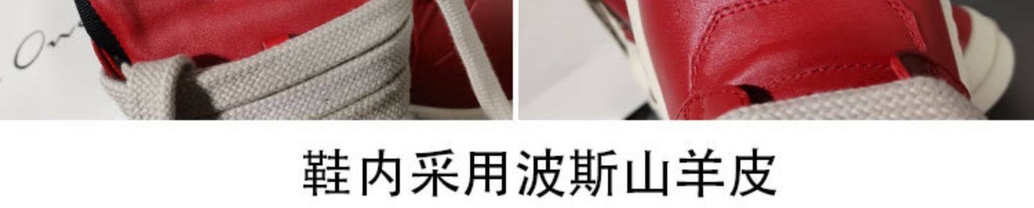 Ro High Top Large Inverted Triangle Red and Yellow Cow Goatskin Wide Shoelaces Thick Sole Increased Round Toe Men's Sneakers
