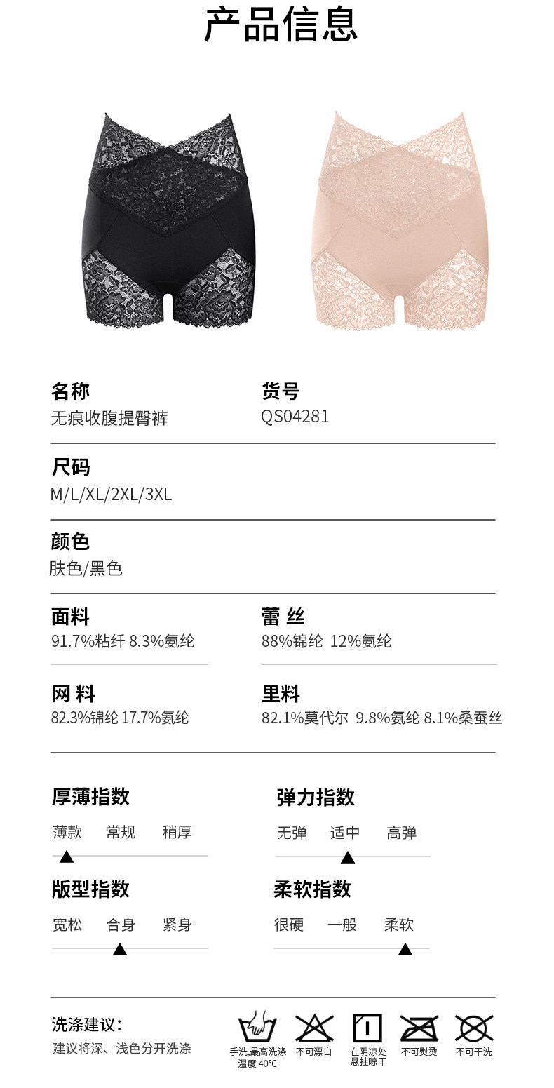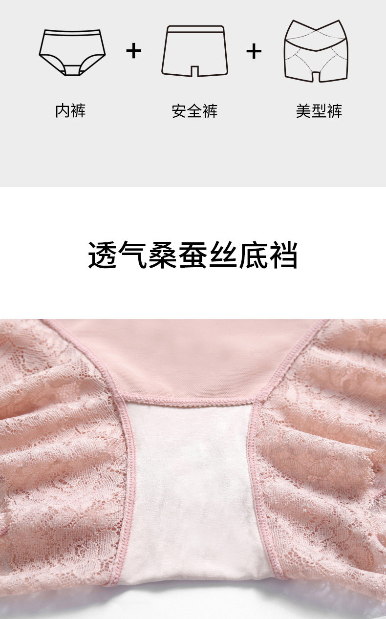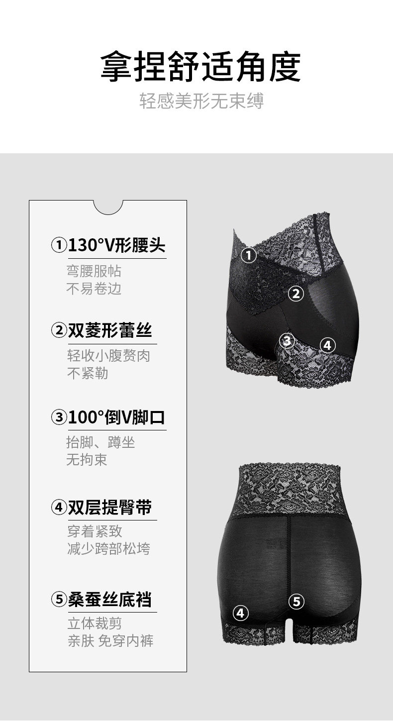 High-Waisted Lace Tummy Control and Butt-Lifting Anti-Exposure Panties with Silk Protein, Non-Curling, Comfortable Women's Underwear for Spring