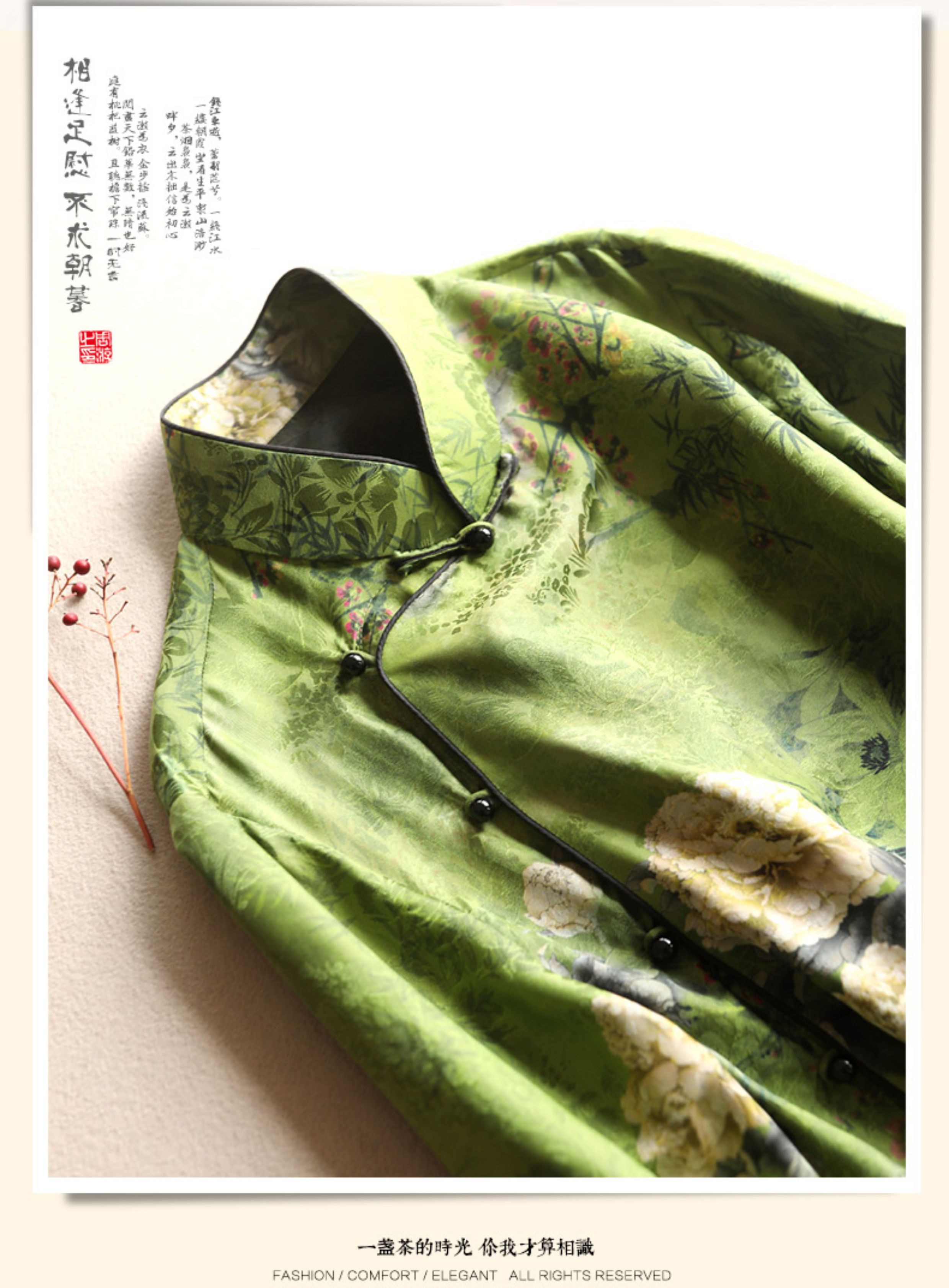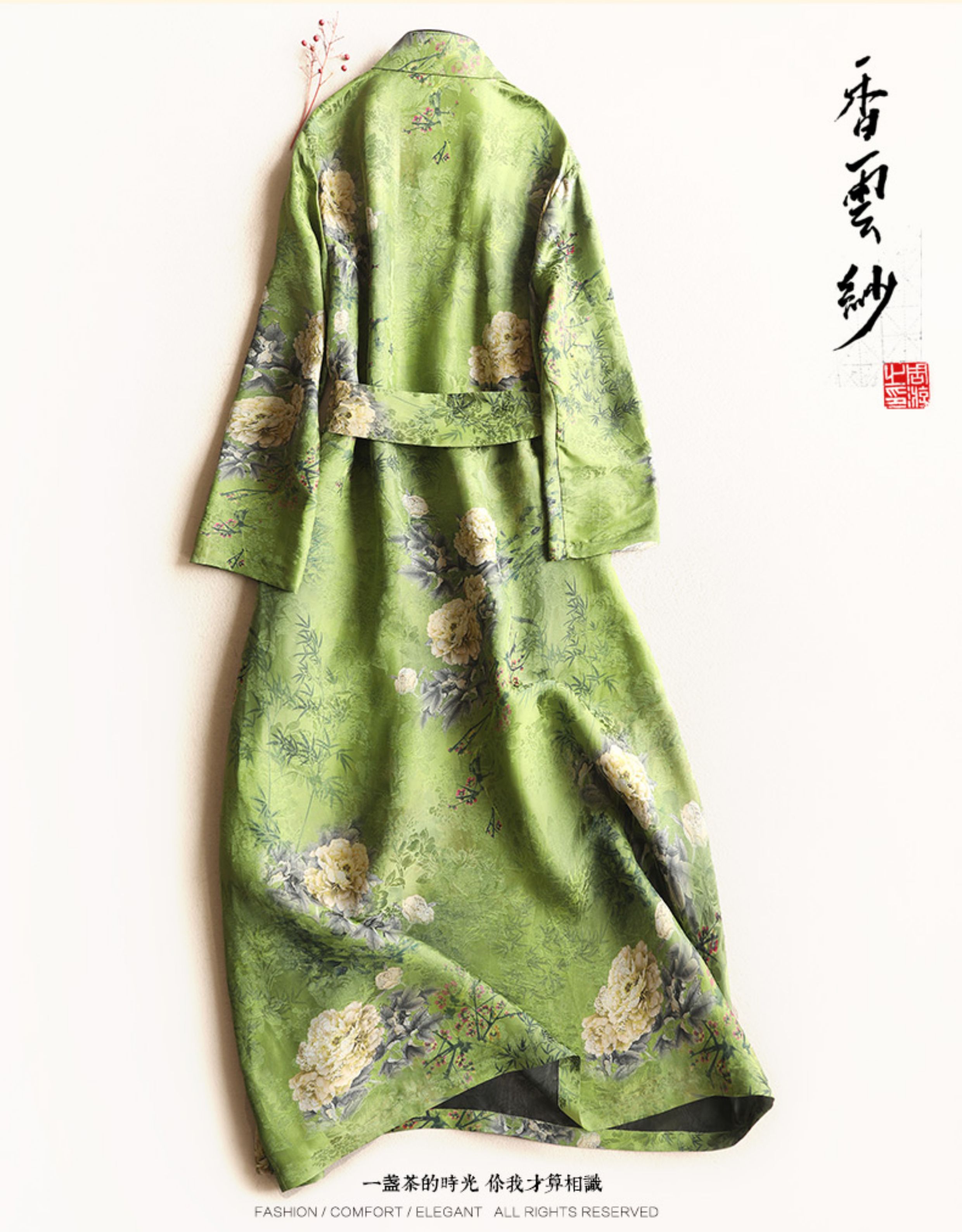 Yunshu Original Interwoven Jacquard Xiangyun Silk New Chinese Style Improved Cheongsam Dress A-Line Skirt Long Robe for Summer
