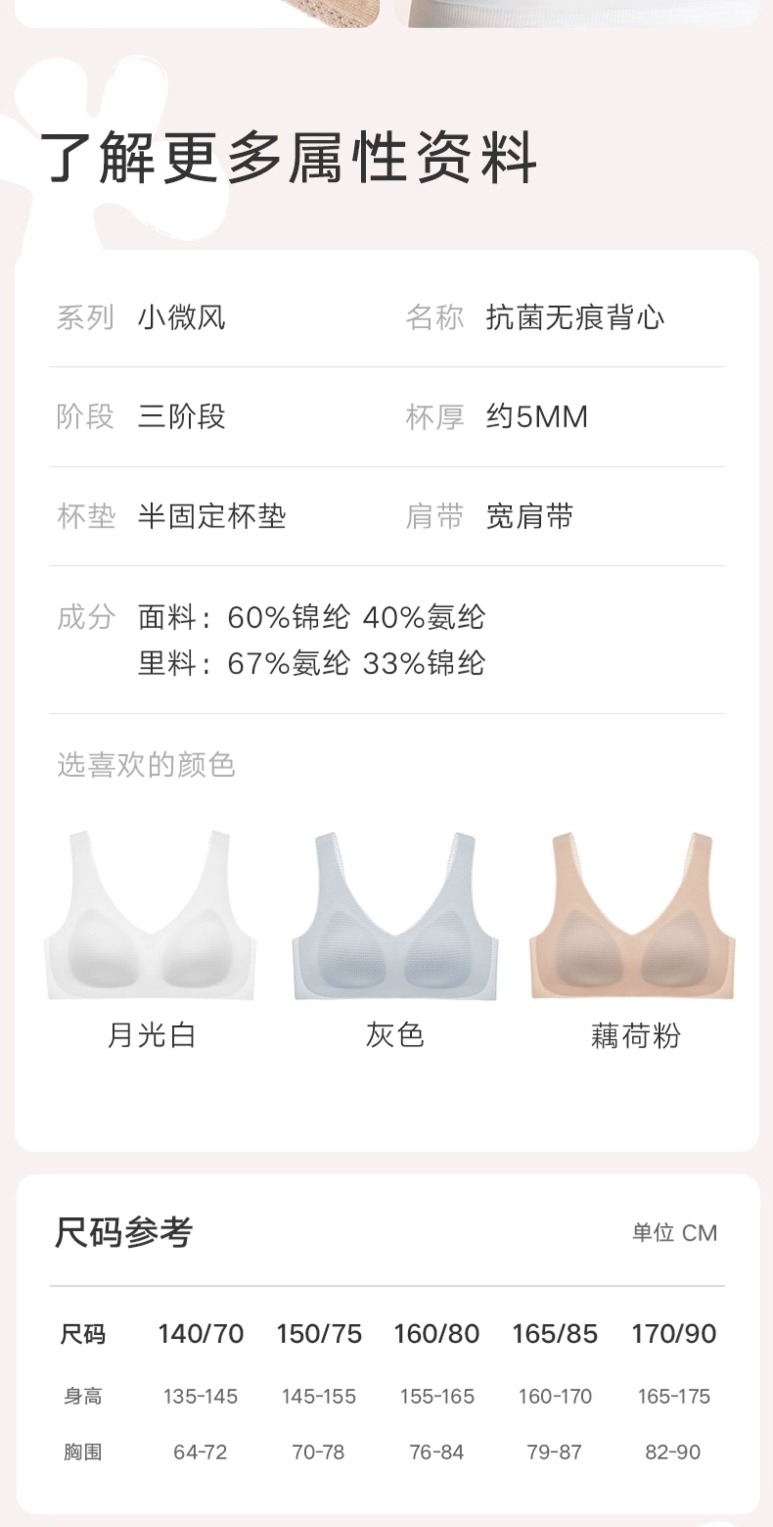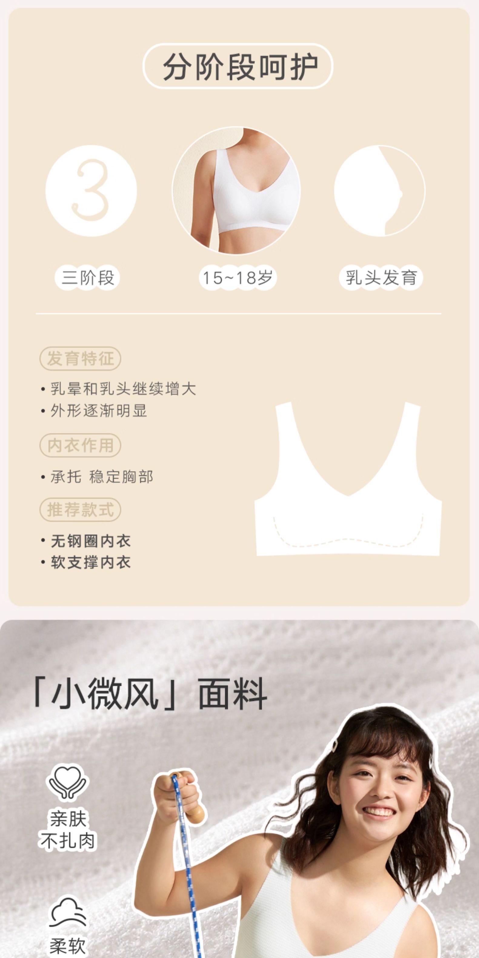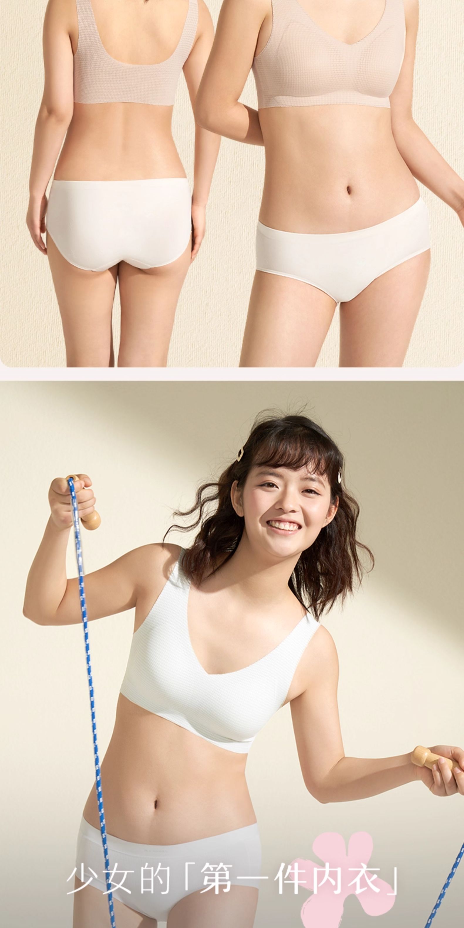 [Stage 3] Maniform Student Girls' Seamless Breathable Vest Bra, Antibacterial Underwear for Adolescent Development Period