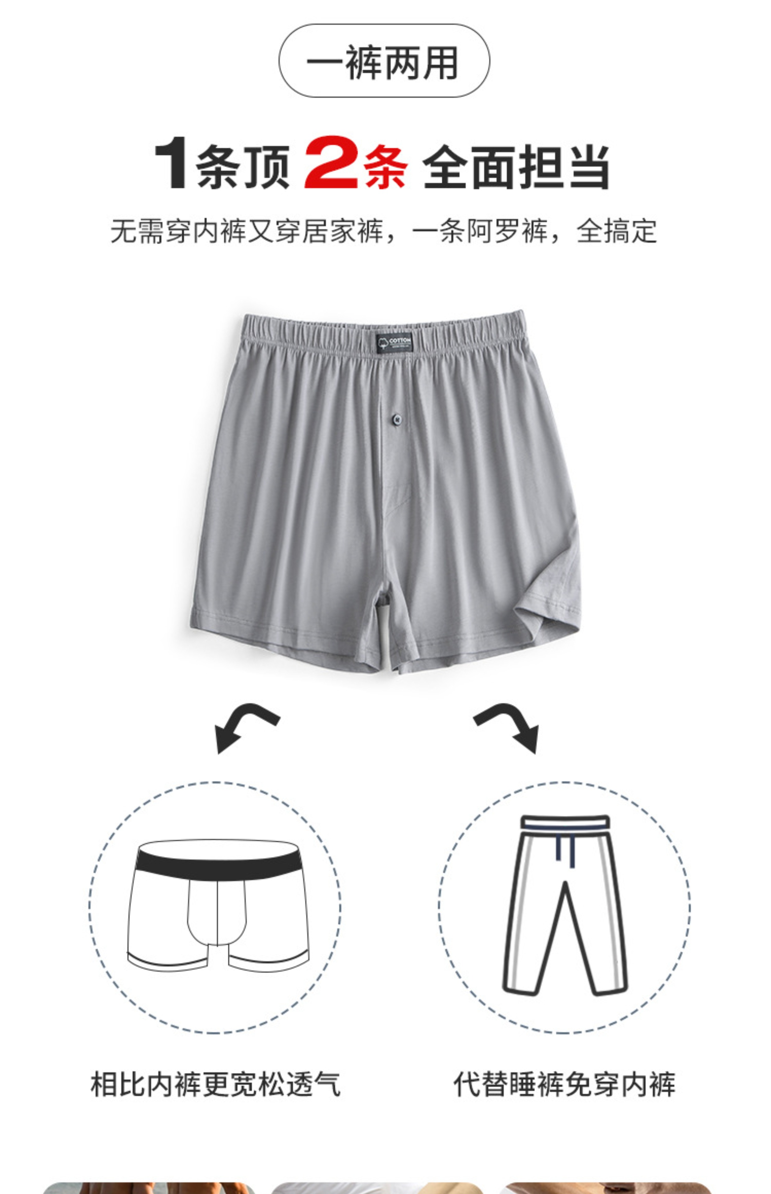 High-End Water-Soft Tencel Cotton Boxer Briefs for Men, Antibacterial, Loose-Fitting Sleep Pants, Breathable Men's Underwear, Home Pants