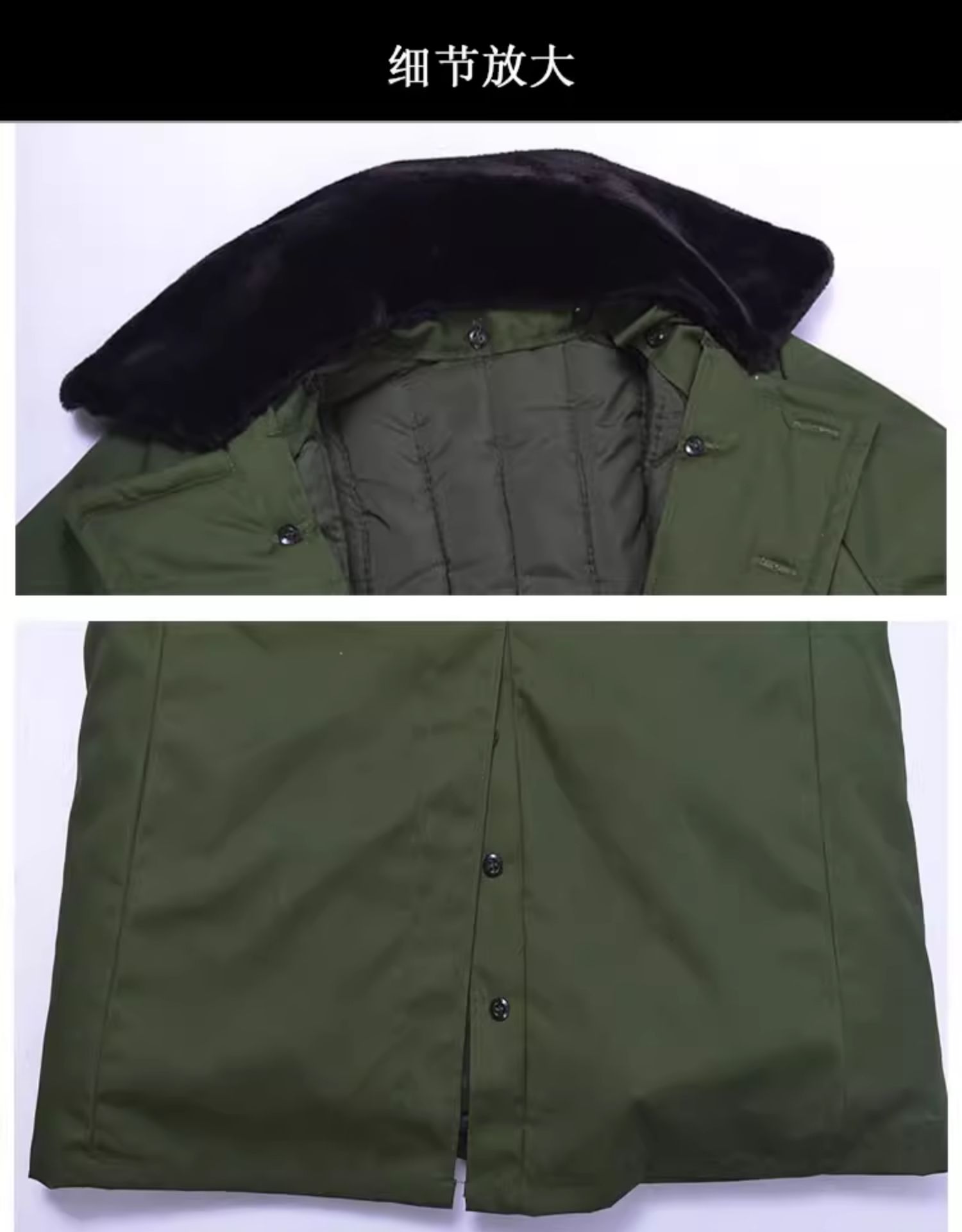 Military Cotton Coat, Pure Cotton Coat for Men and Women, Thickened Long Style for Winter, Northeast Yellow Cotton Jacket, Cold Storage Security Green Cold-Proof Clothing