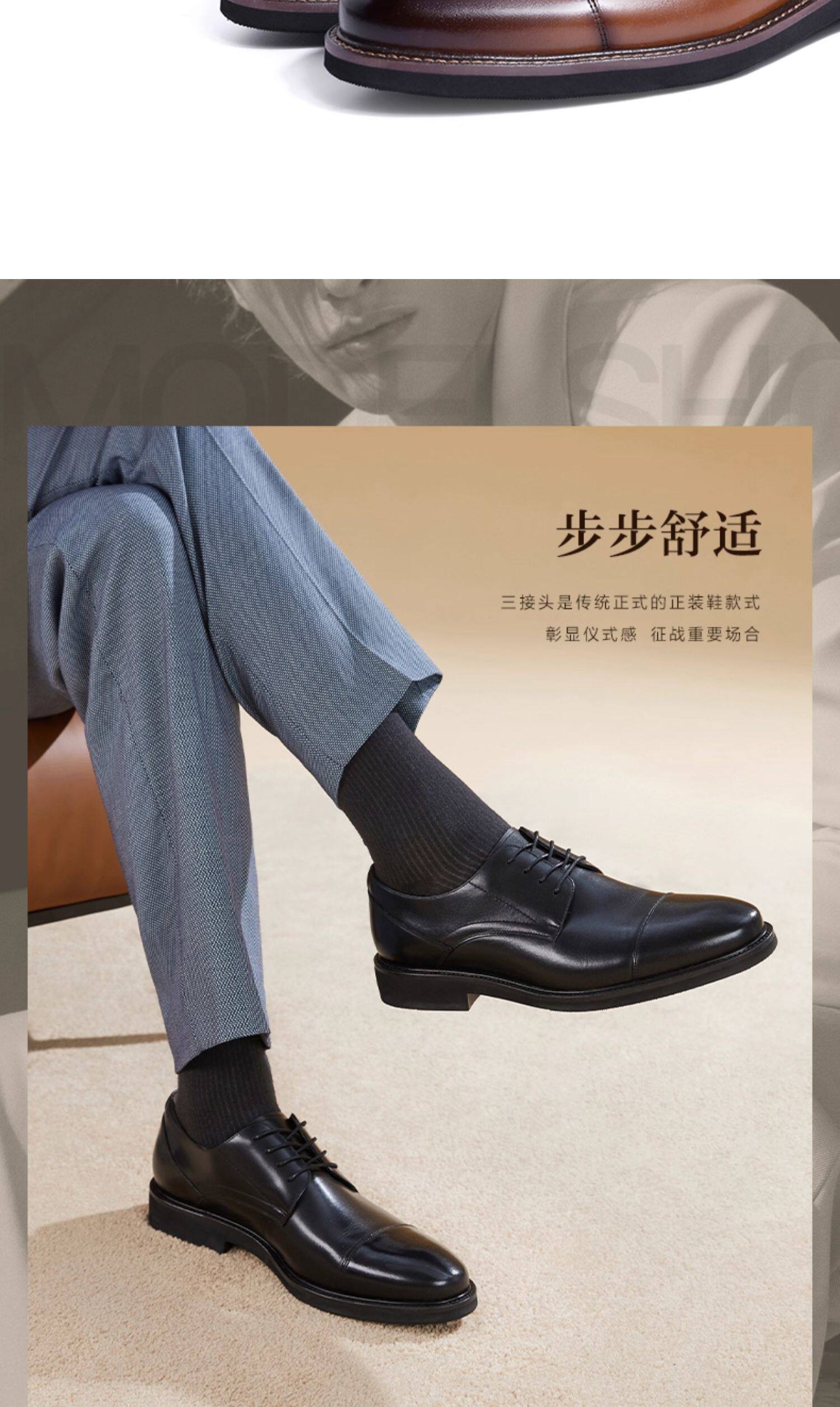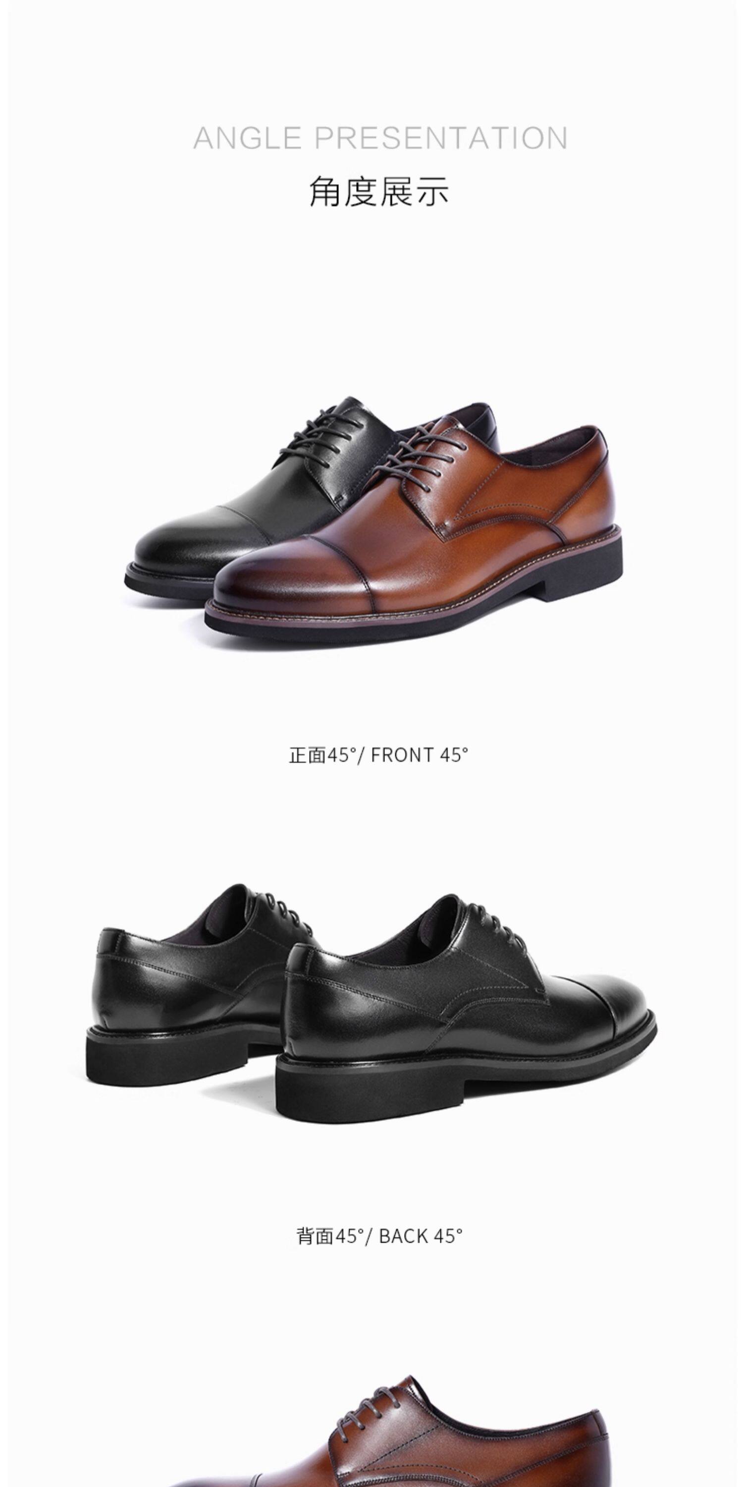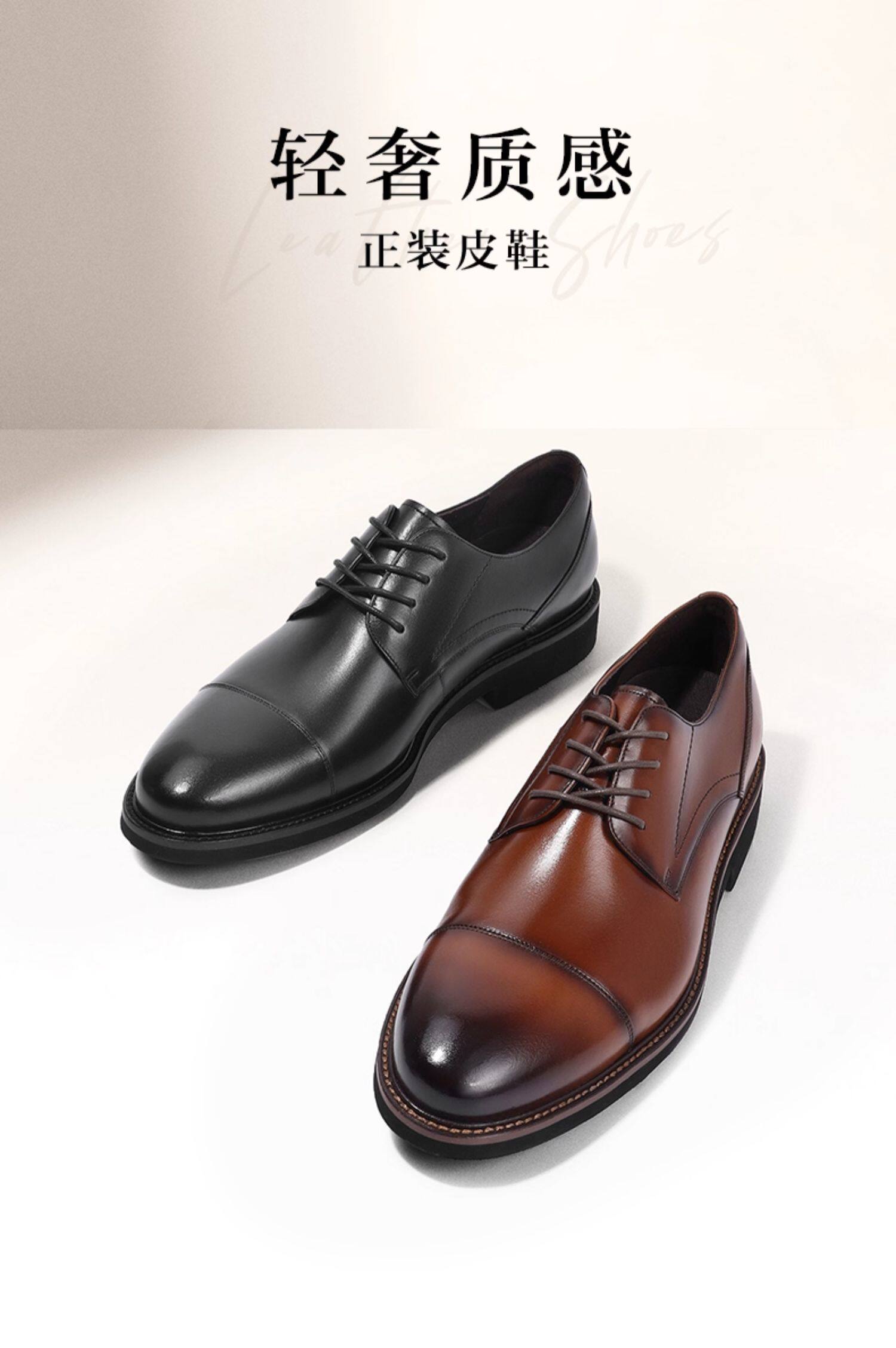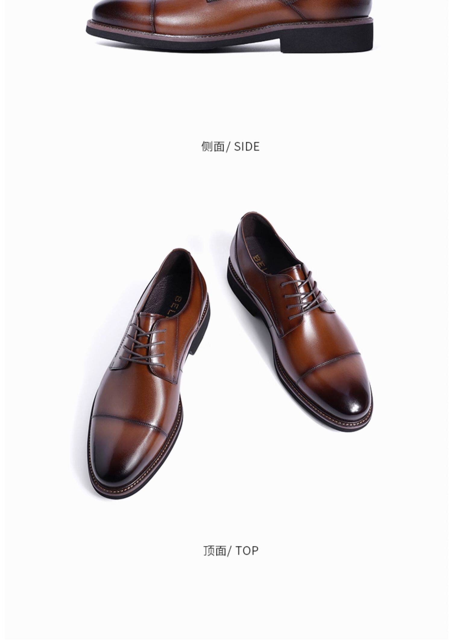 Belle Men's Shoes Business Formal Leather Shoes Men's Pointed Toe Genuine Leather Groom Wedding Shoes Derby Shoes B6826Cm2