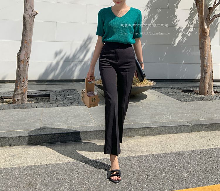 High-Waisted Flared Cropped Suit Pants for Women, Slimming Petite Flared Pants, Korean Style Spring and Summer Elegant Drape Professional Women's Pants