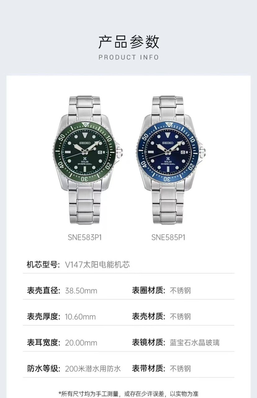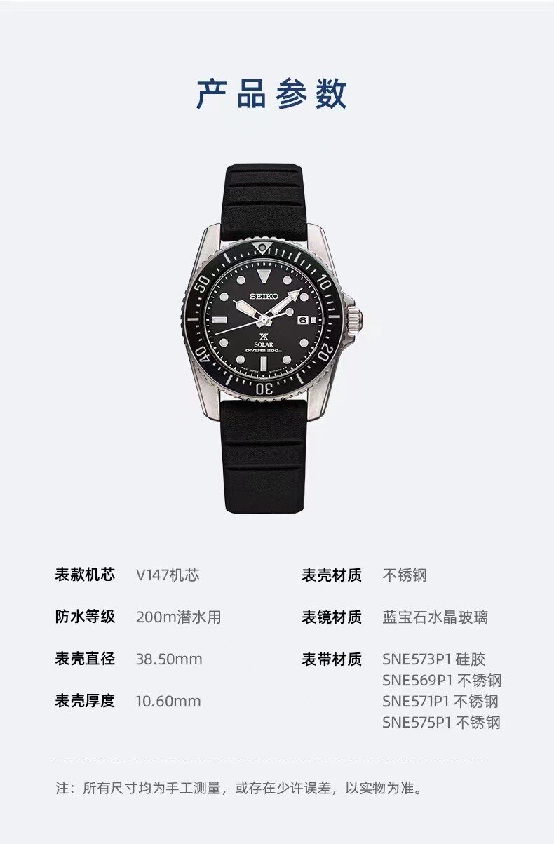 New Seiko Solar-Powered Watch, Diving Watch, Small Dial Waterproof Swimming Watch Sne571P1
