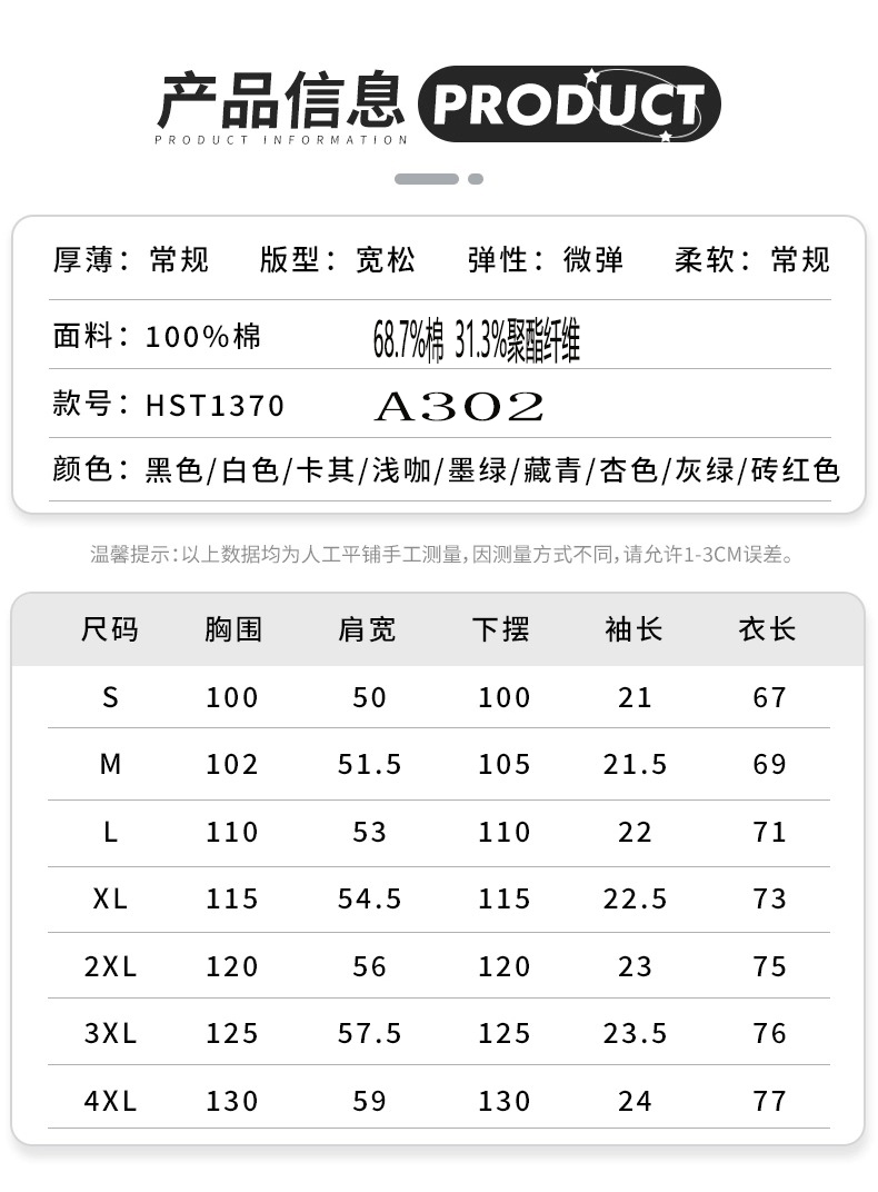 Solid Color Short-Sleeve T-Shirt for Men, Summer Heavy Cotton, Loose Fit, Trendy Brand, Round Neck, White Base Layer Shirt, Men's T-Shirt