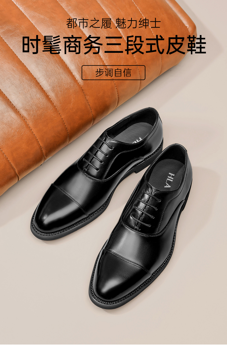 HLA/Hailan House Men's Shoes Genuine Leather New arrival Fall and winter Fleece-lined Business Three Joint Leather Shoes Dress Wedding Groom Shoes