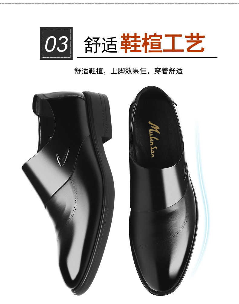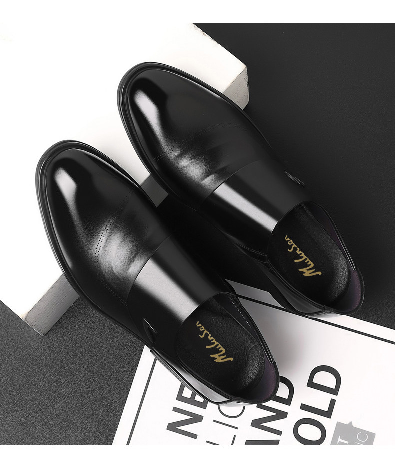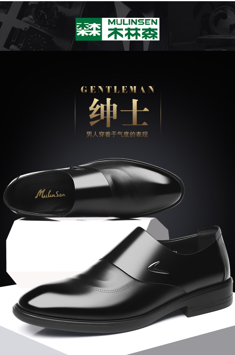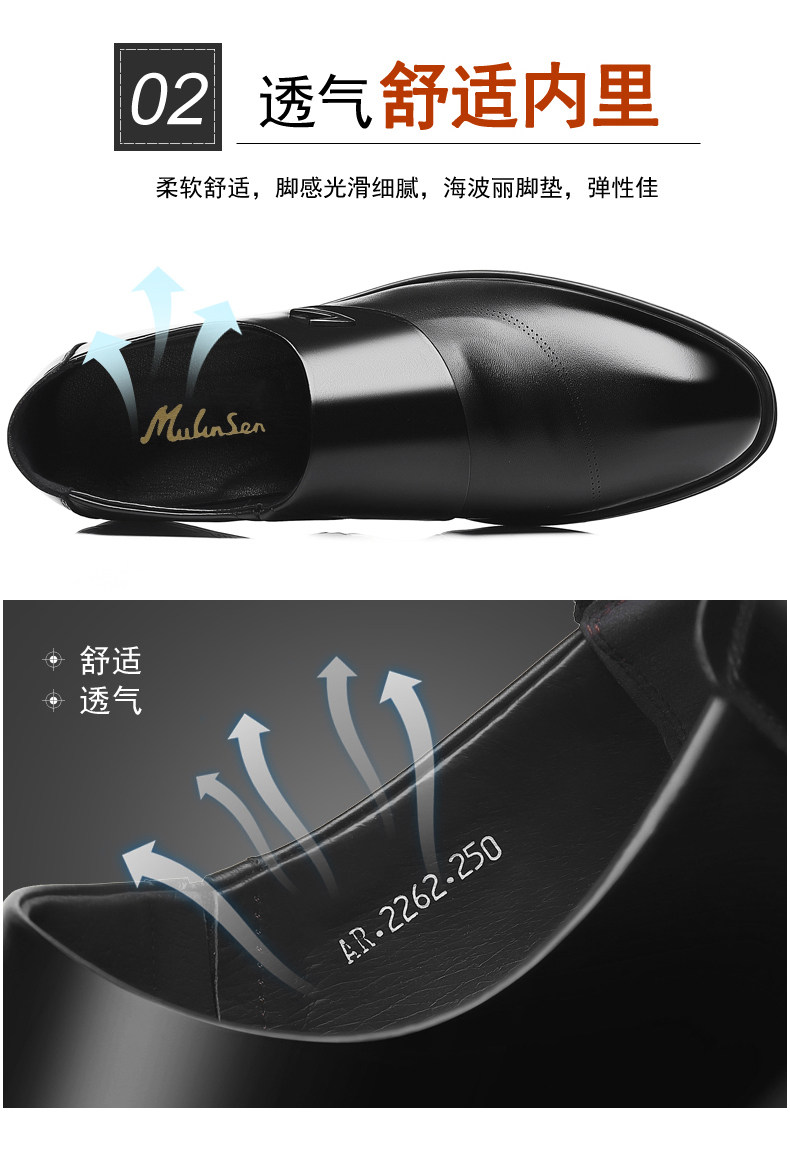 Mulinsen Men's Shoes 2026 Spring New Genuine Leather British Business Formal Leather Shoes Men's Height-Increasing Wedding Groom Shoes