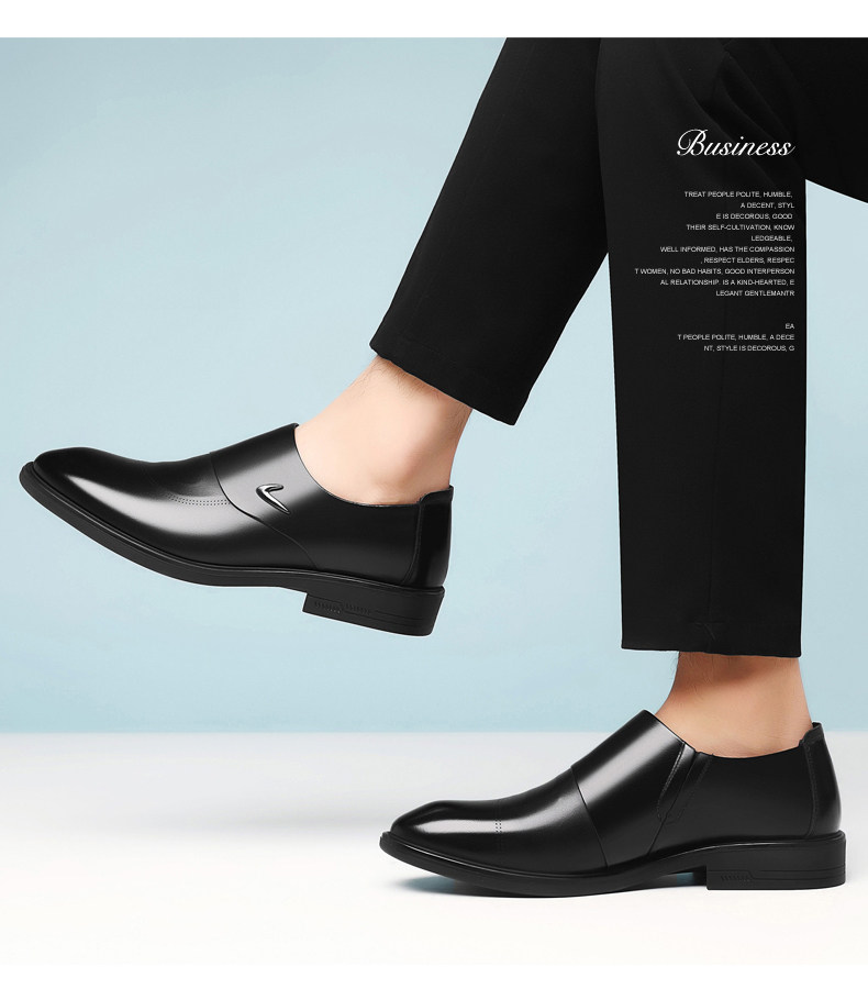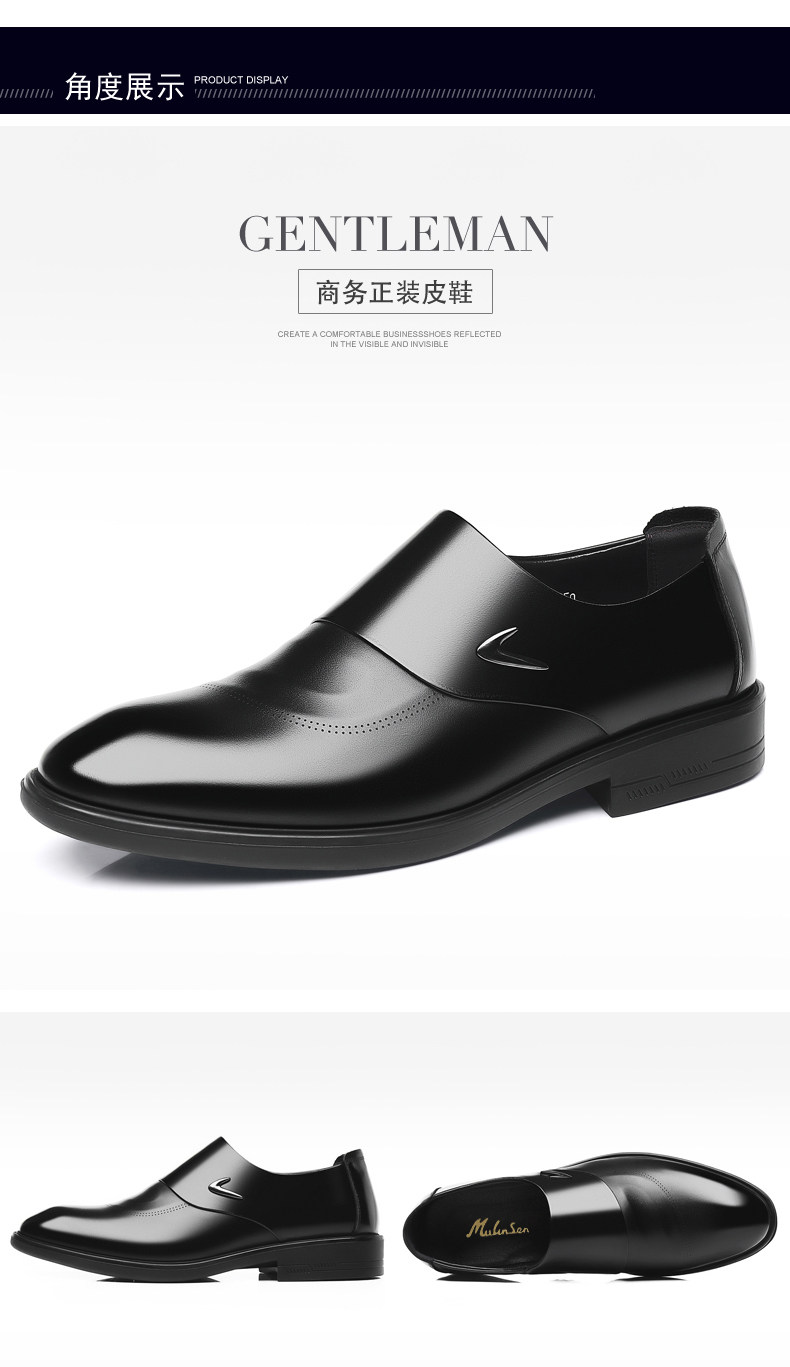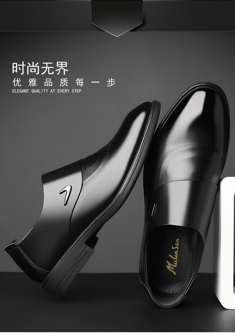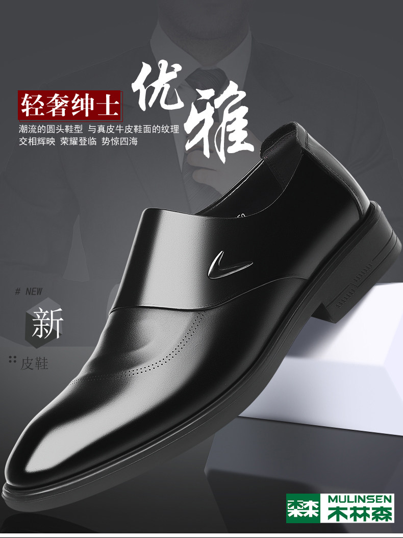 Mulinsen Men's Shoes 2026 Spring New Genuine Leather British Business Formal Leather Shoes Men's Height-Increasing Wedding Groom Shoes