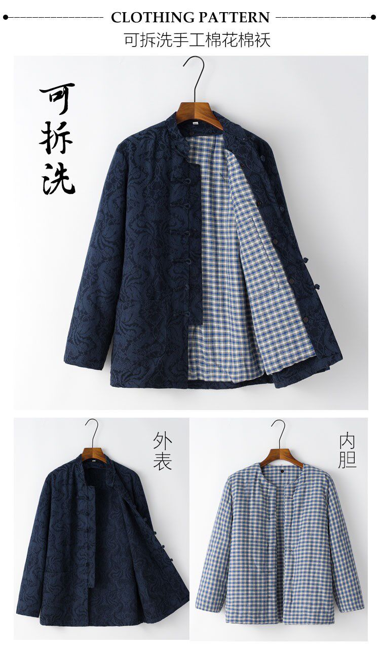 Thickened Women's Tang Suit Cotton Jacket with Removable Pure Cotton Handmade Cotton Clothing, Chinese Style Winter Pure Cotton Vintage Cotton Coat