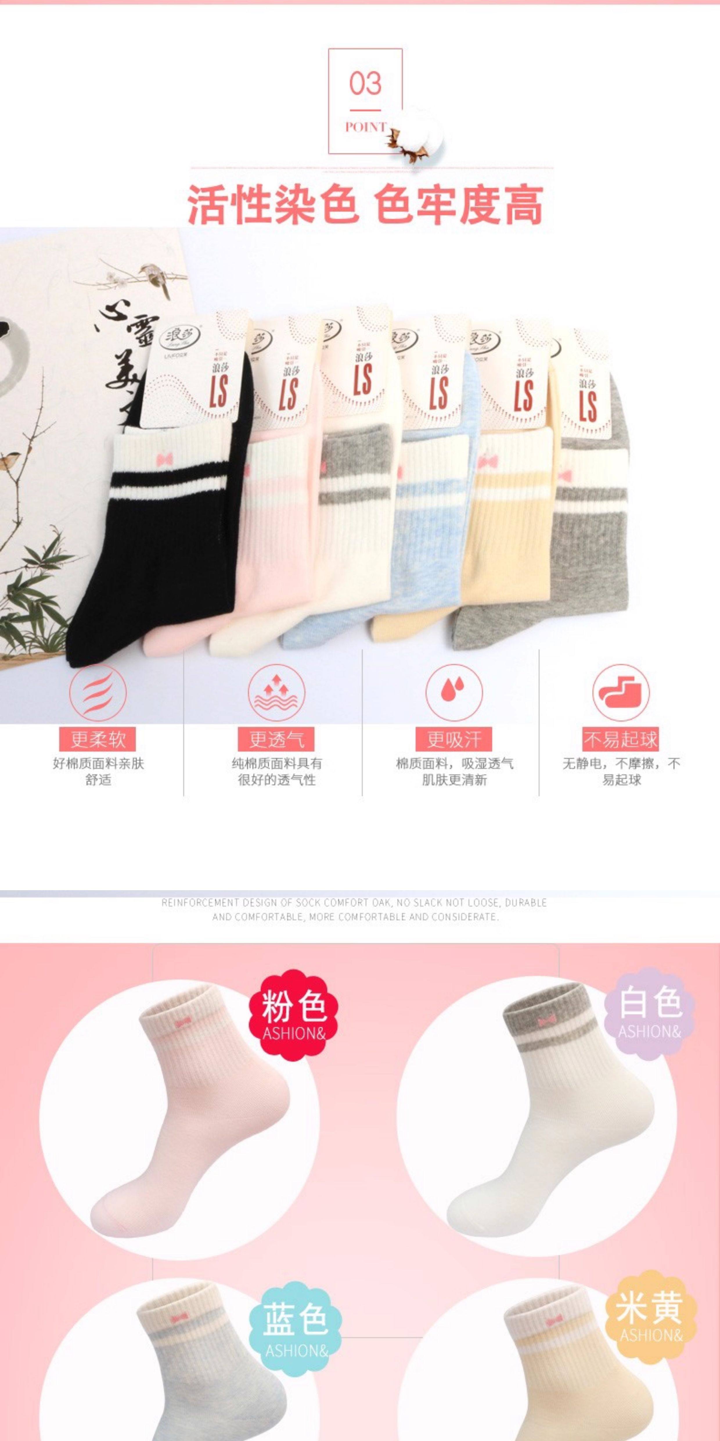 Langsha Socks Women's Pure Cotton Spring and Autumn Short Socks Deodorant Sweat-Absorbent Mid-Tube Cotton Socks 100% Cotton Women's Socks ins Trendy Socks