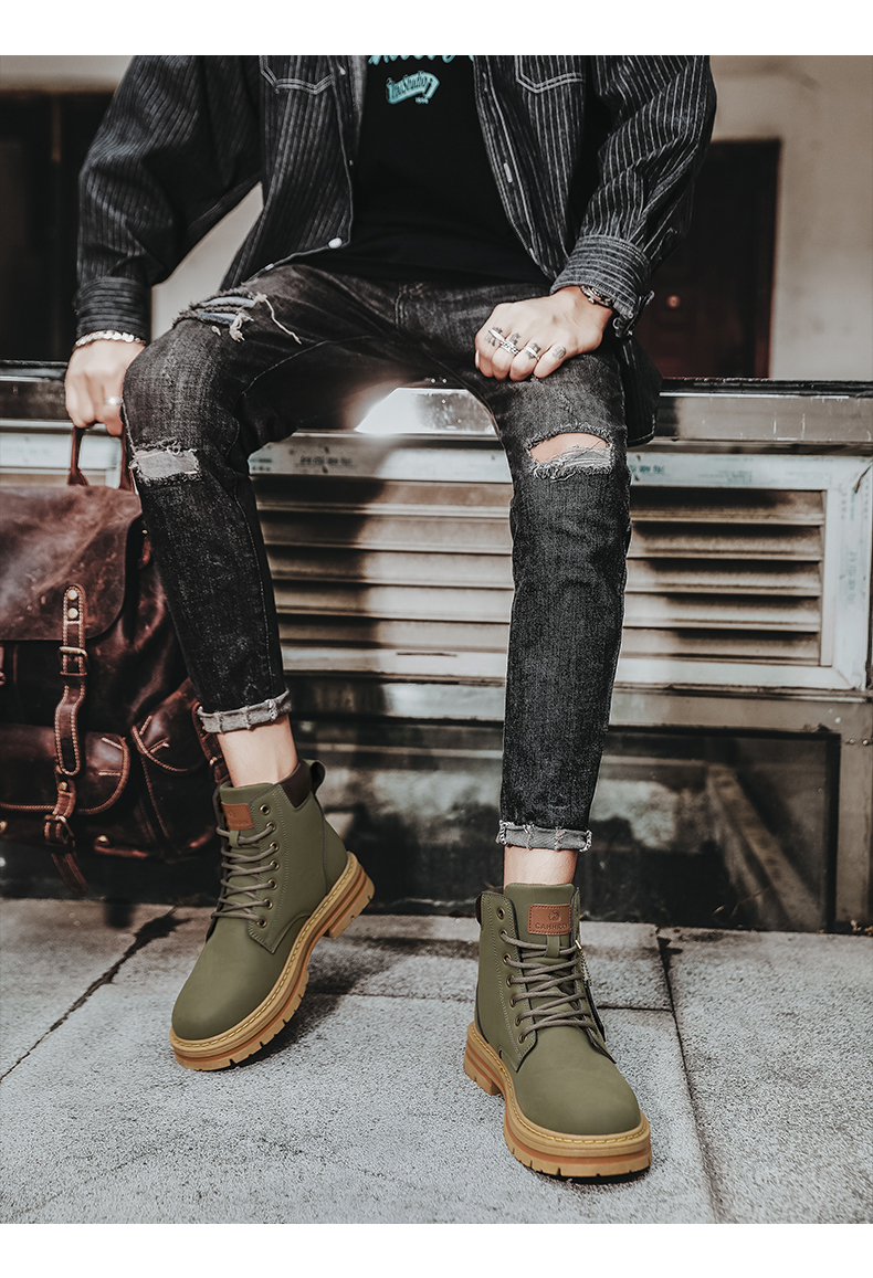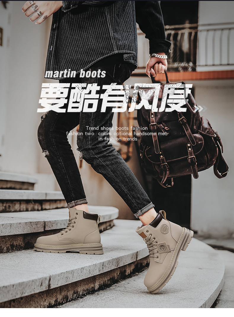 Bumblebee Martin Boots Men's 2025 New Autumn and Winter High-Top Work Boots British Style Men's Thick-Soled Waterproof Leather Shoes