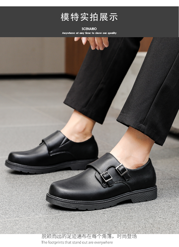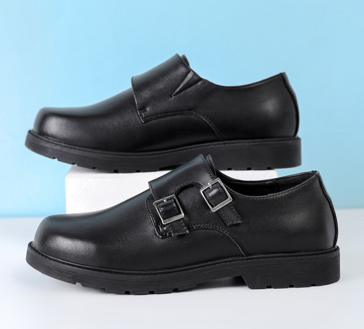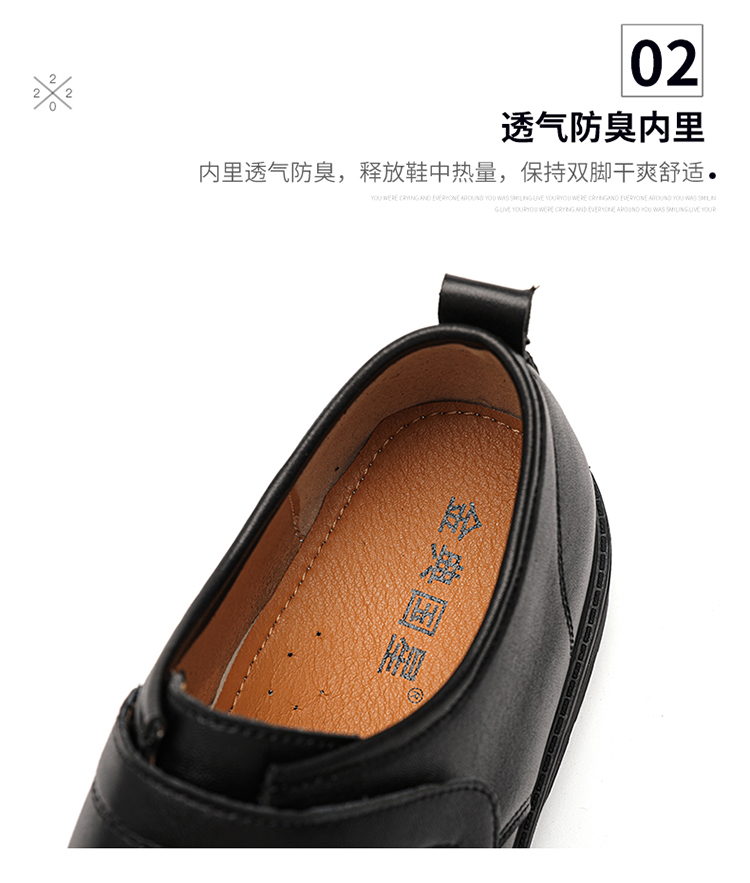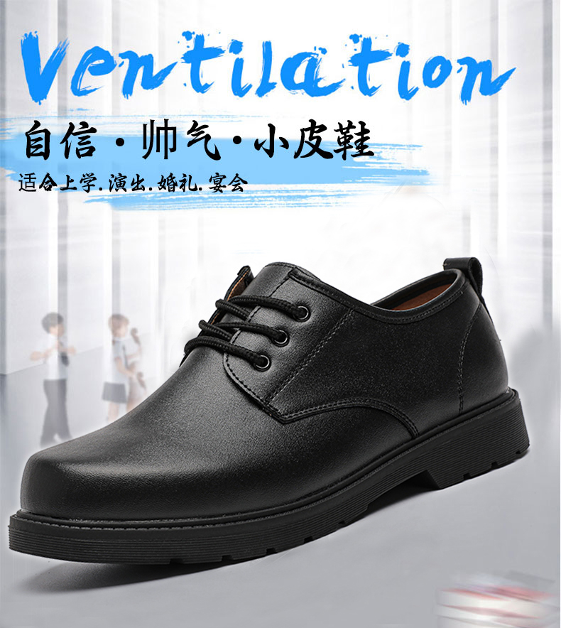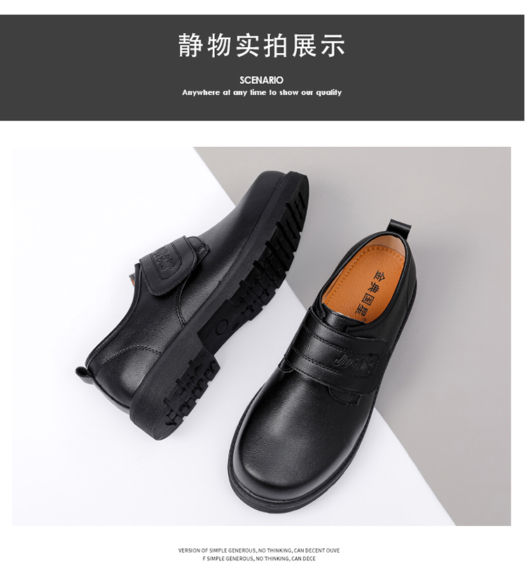 Male Teenagers' Black Casual Round-Toe Shoes, Boys' Genuine Leather Soft-Soled Shoes, Boys' Junior High School Students' Performance Formal Leather Shoes