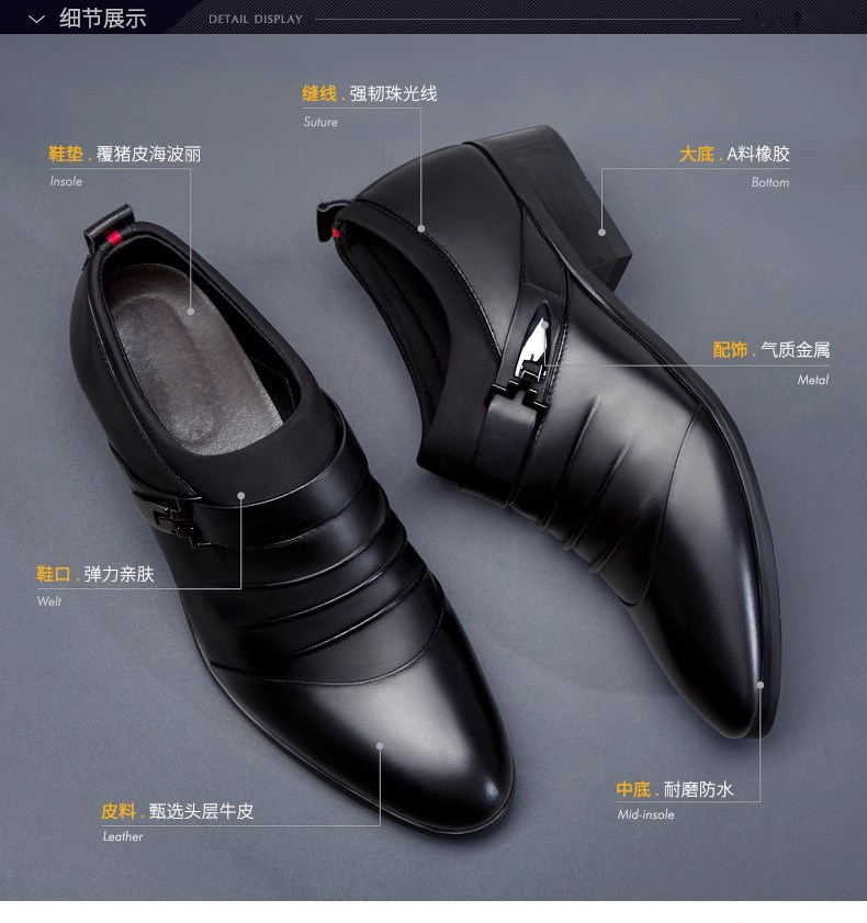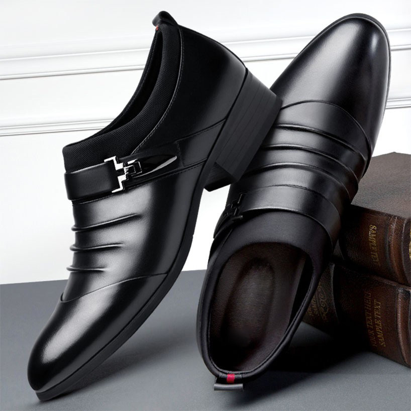 Yierkan Men's Shoes Business Formal Leather Shoes Men's 2024 Autumn New Genuine Leather Black Slip-On Wedding Shoes