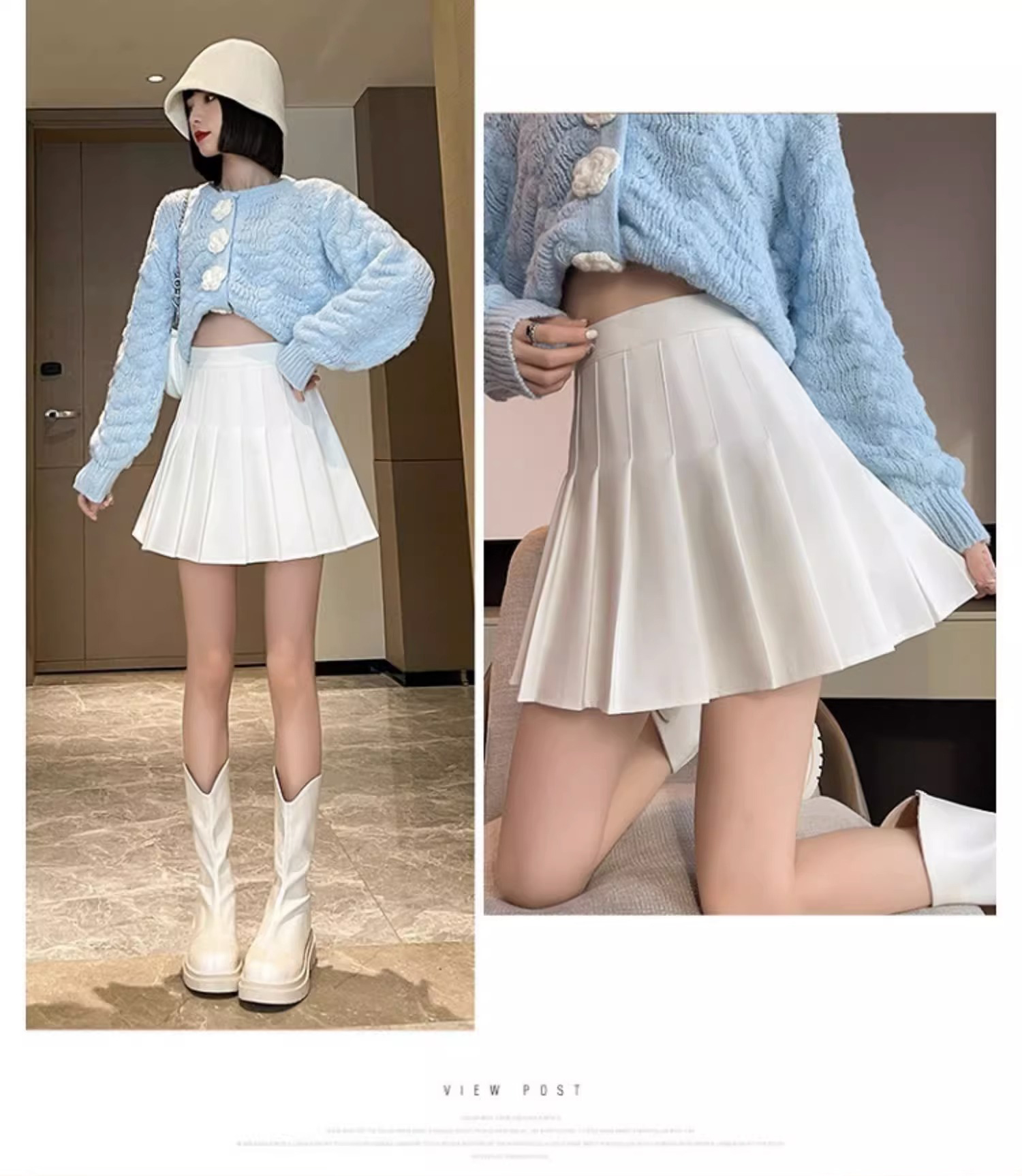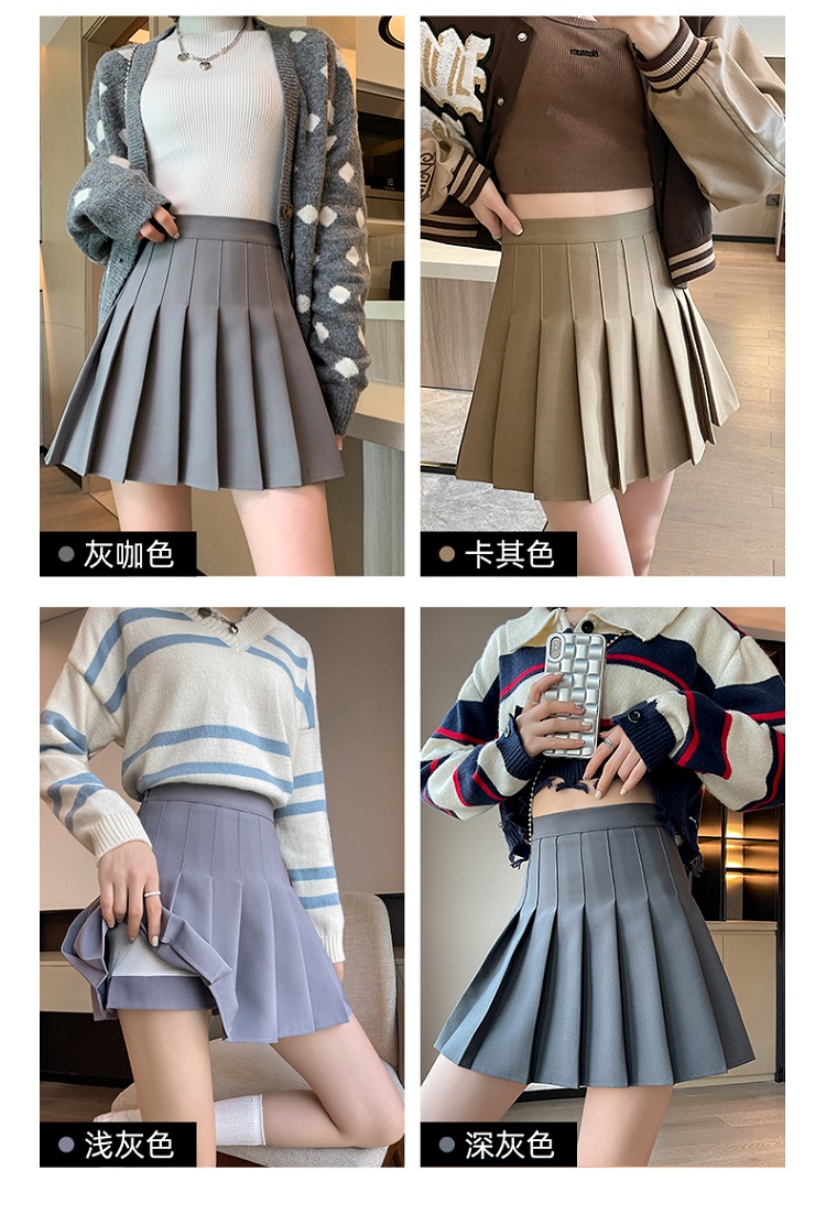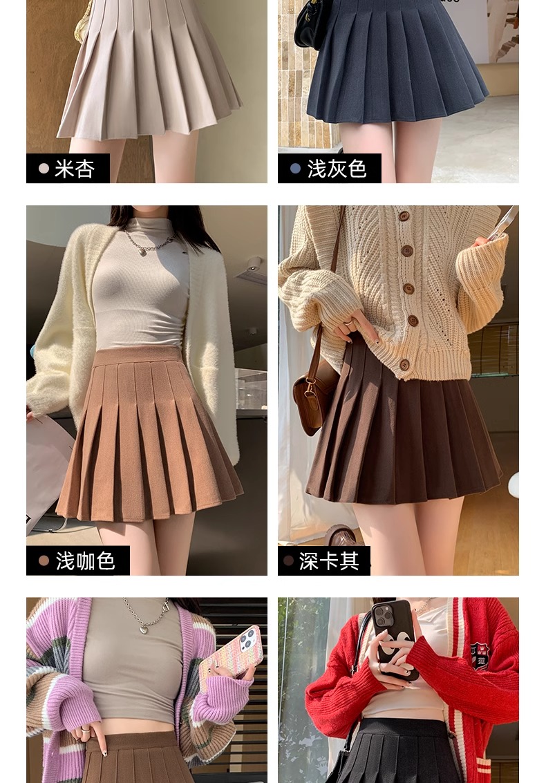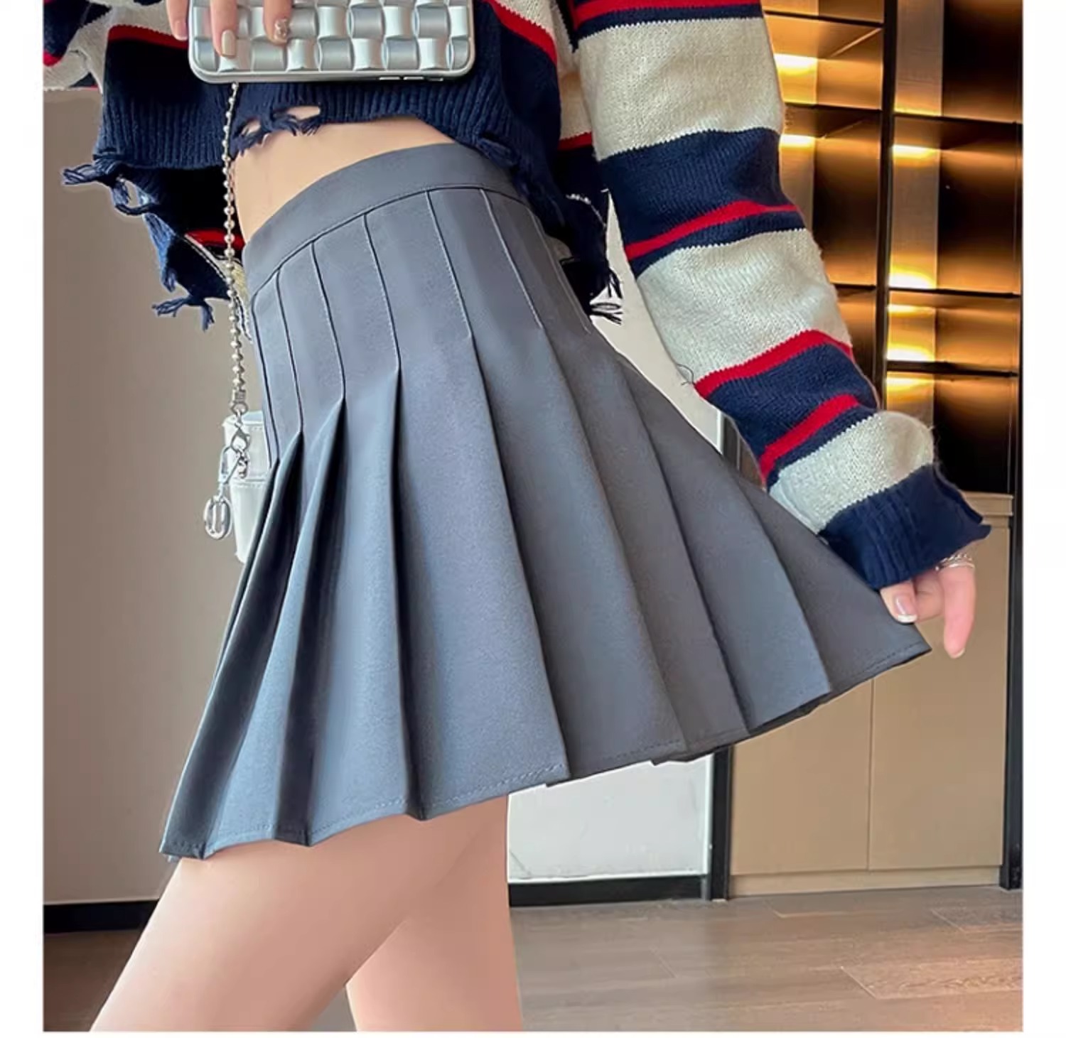 Gray Pleated Skirt Women's Half-Length Skirt Autumn and Winter 2025 New High-Waisted Petite Jk College Woolen A-Line Short Skirt