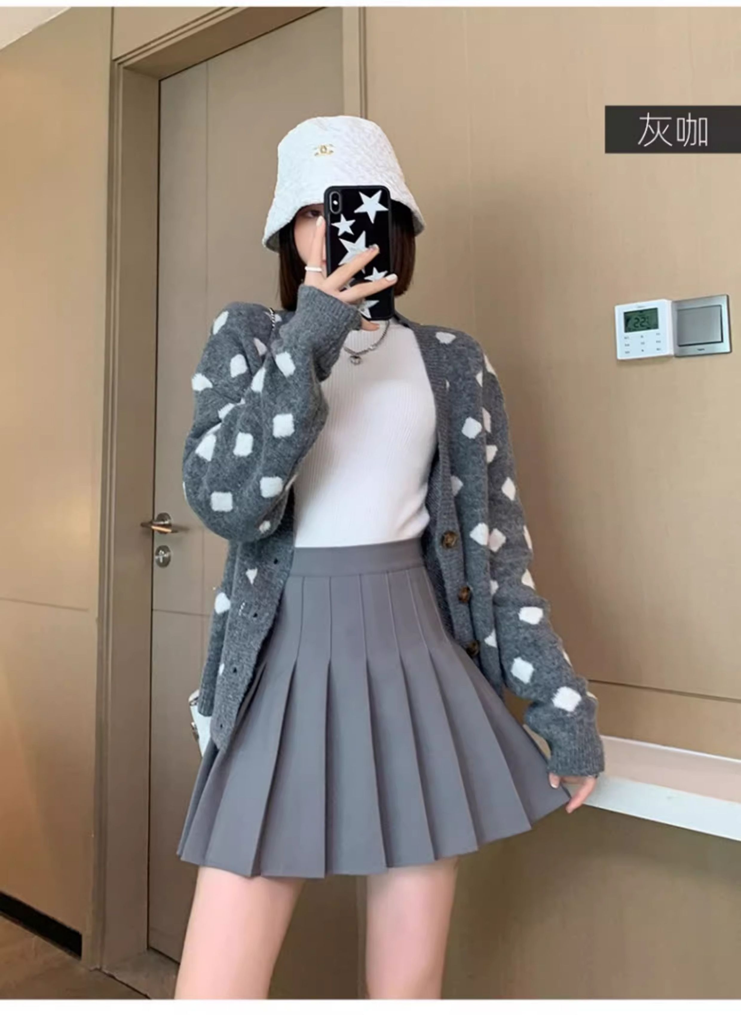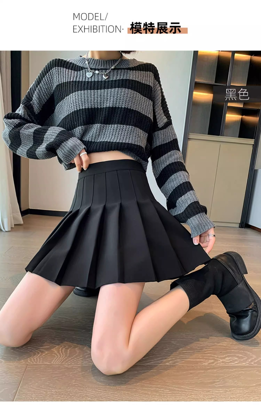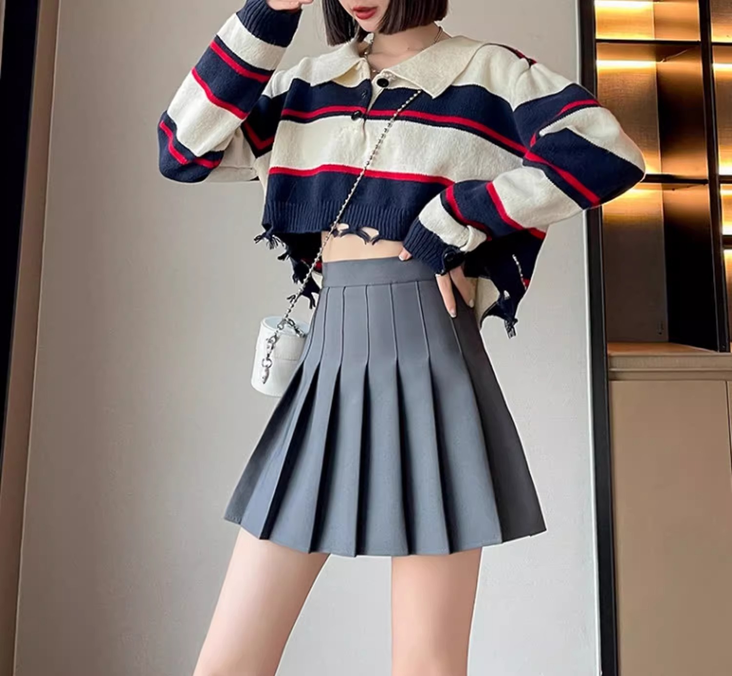 Gray Pleated Skirt Women's Half-Length Skirt Autumn and Winter 2025 New High-Waisted Petite Jk College Woolen A-Line Short Skirt
