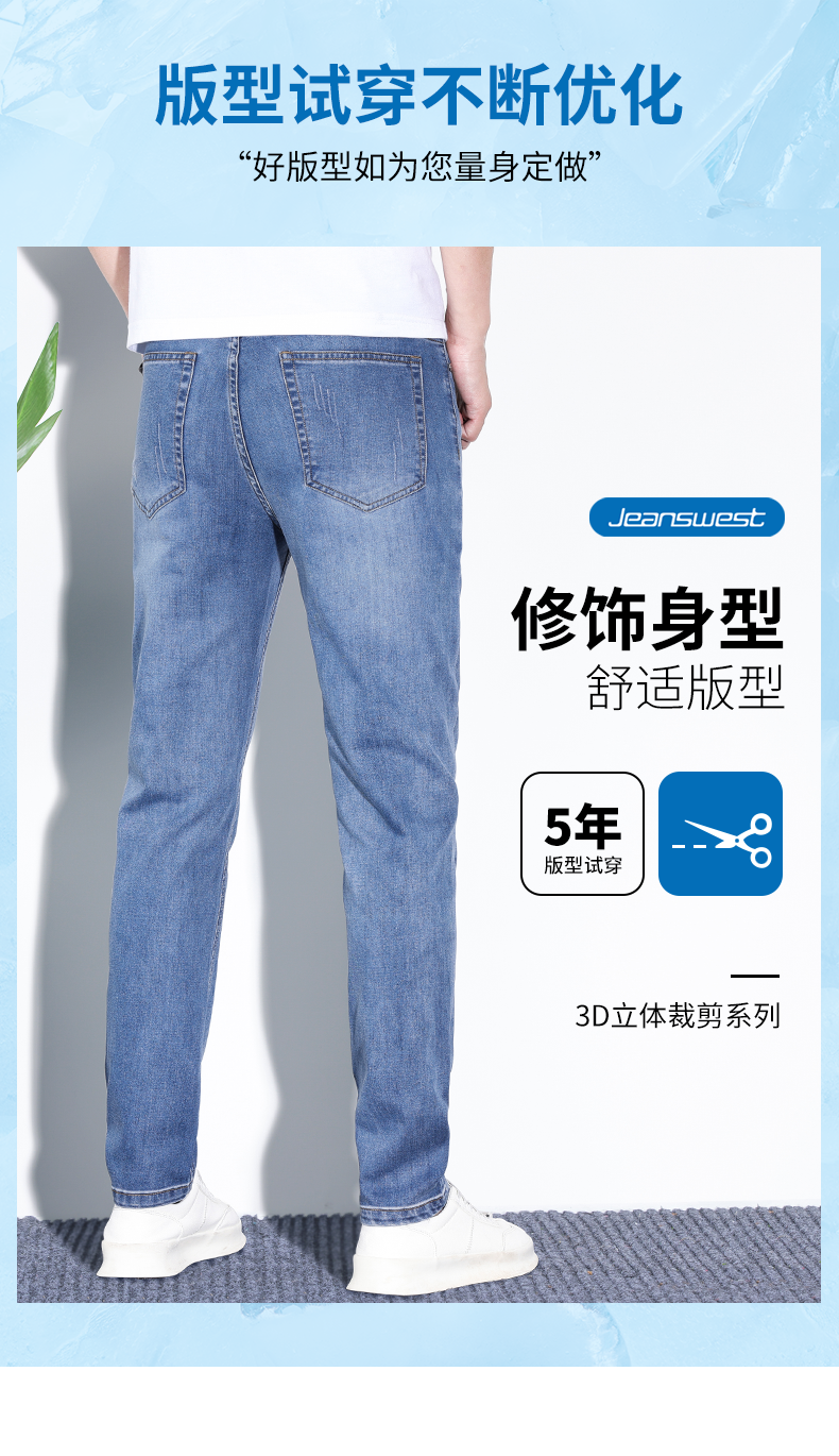 Jeanswest Men Denim Fall and winter New arrival Straight-leg Loose stretch silm men's Easiest for match Fleece-lined Casual pants